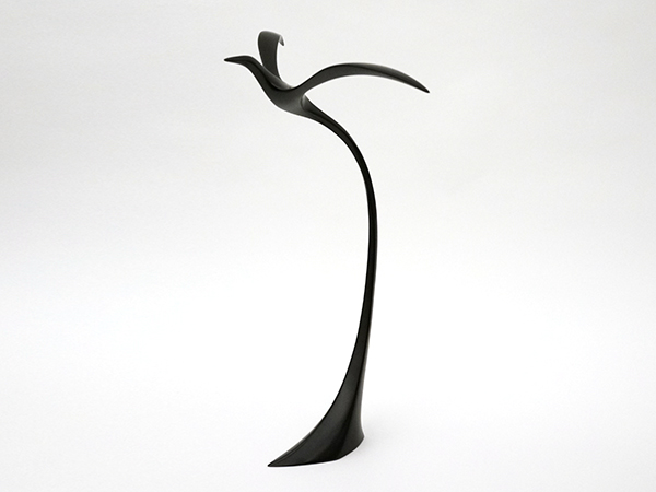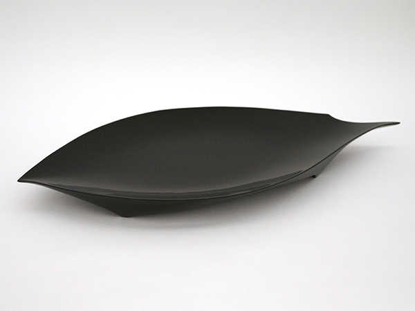 村田佳彦さんの作る漆の作品は、艶やかで暖か味があり、どこかやさしい。 それは、作家の思いが漆の樹液と溶けあって、作品をやさしく包み込んでいるからである。 村田さんの作品の多くは楓の木から作られている。 楓は重硬な材質で、刃物を用いて削るにはやや厳しい木材であるが、それでも楓を使う理由は、その粘り強さにある。 村田さんは、様々な木材を用いて制作してきたが、「自然の持つしなやかなラインを表現するには楓が最もふさわしい」と語る。 村田さんが自然をモチーフに制作するのは、自然への敬意からだが、「漆の持つ美しさや独特な雰囲気を壊さないよう、常に謙虚な姿勢を心がけ、表現しすぎないことを肝に銘じている」という。 今展には、鳥の舞う姿からヒントを得た結界や植物や水の流れをイメージした香合や皿など、約40点のオブジェや茶道具が出品される。