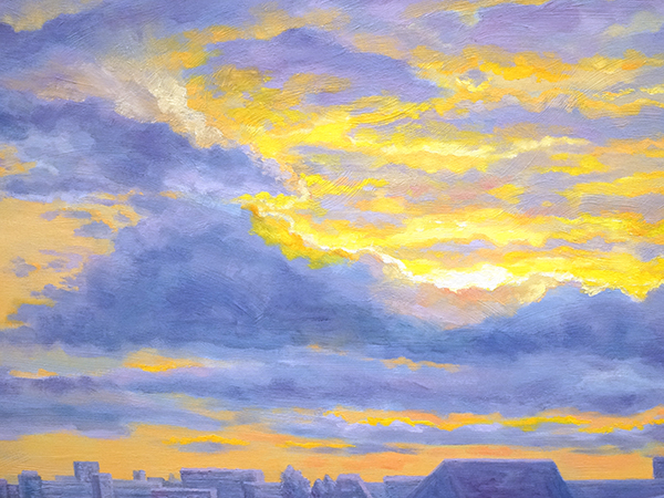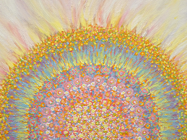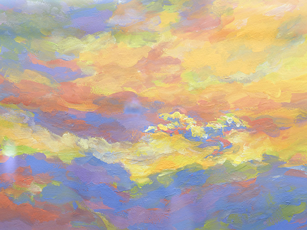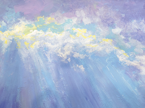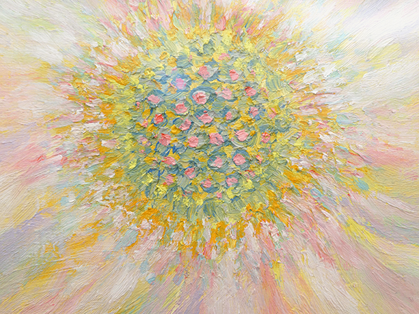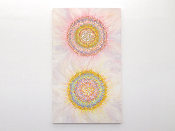志水さんは、空、太陽や天女をモチーフにされ、 昨今、東急電鉄の連作広告にも取り上げられた新進気鋭の抽象画家です。