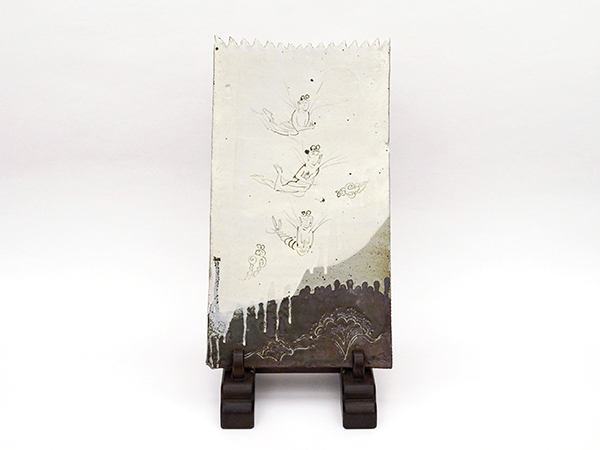 | 出品作品 Exhibited Works | 藤ノ木土平:茶碗、茶入、花入、水指、香合、壺、向付、皿、大皿、板皿、小鉢、片口、徳利、ぐい呑、陶板、オブジェ 志水 朝:抽象画 |