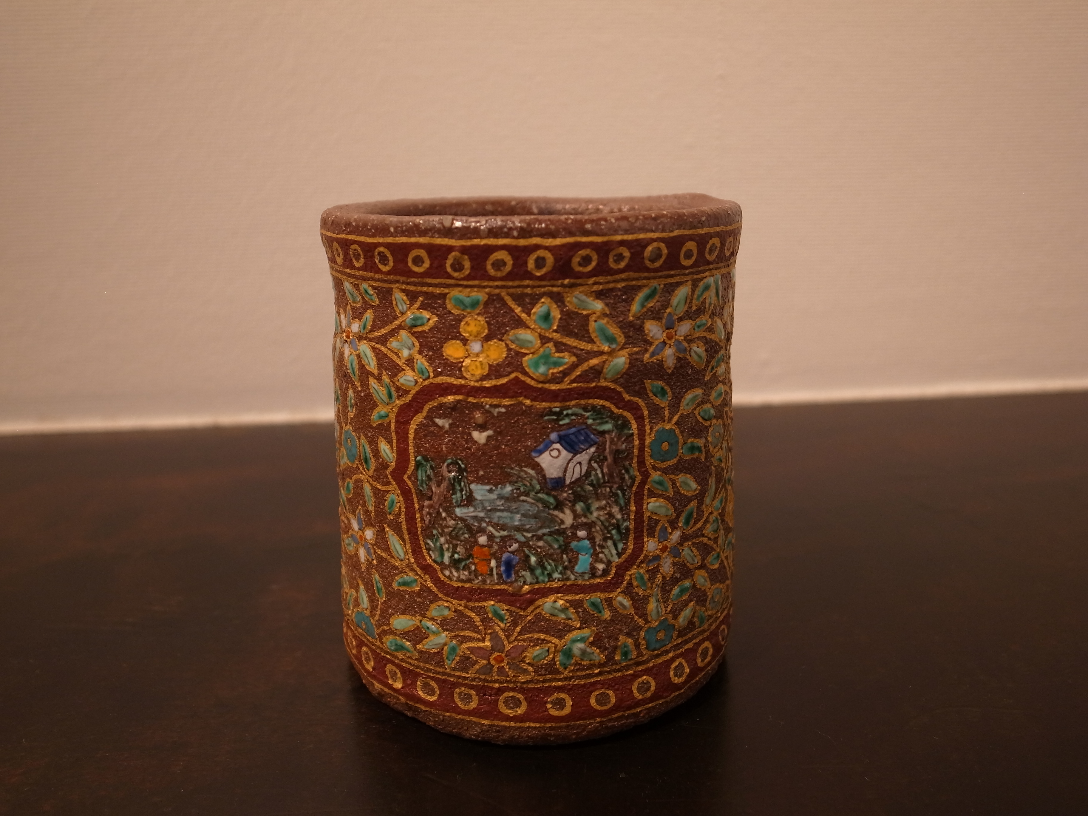 盛絵山水金更紗文筆筒