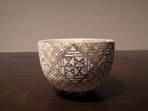 剪紙文の装飾をいつまでも眺めてたくなるようなお茶碗が出来ました。