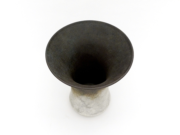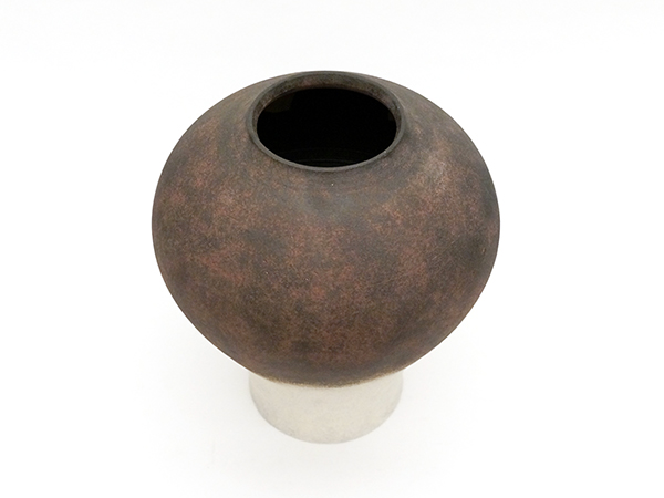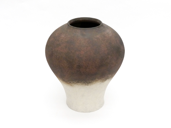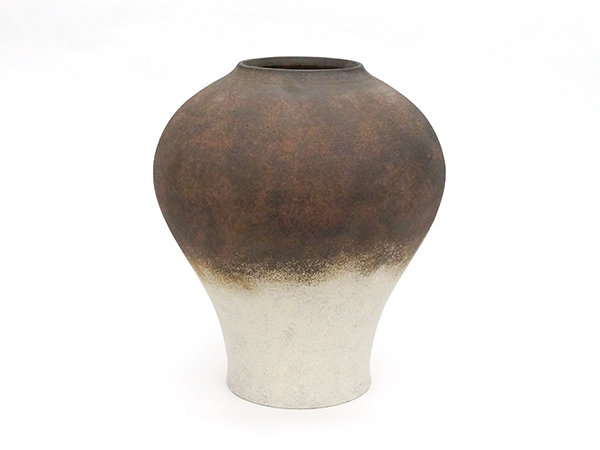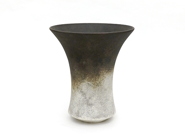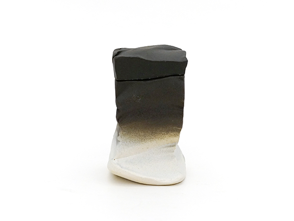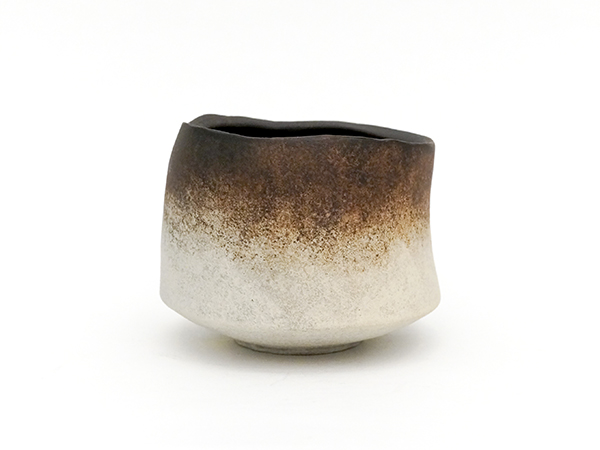 その押さえがたい創作衝動が充満する工房で、かれは日々、萩焼づくりには稀な粘土紐輪積み成形で陶土と格闘している。 この始原的な成形術に同時代的感性を自己のかたちに探りはじめてからすでに約十年の歳月が過ぎ、近年はこの技法によって立ち上がるうねりを打った動勢が、自己の内奥にあるポテンシャリティと密接な関係にあることを確信したという。