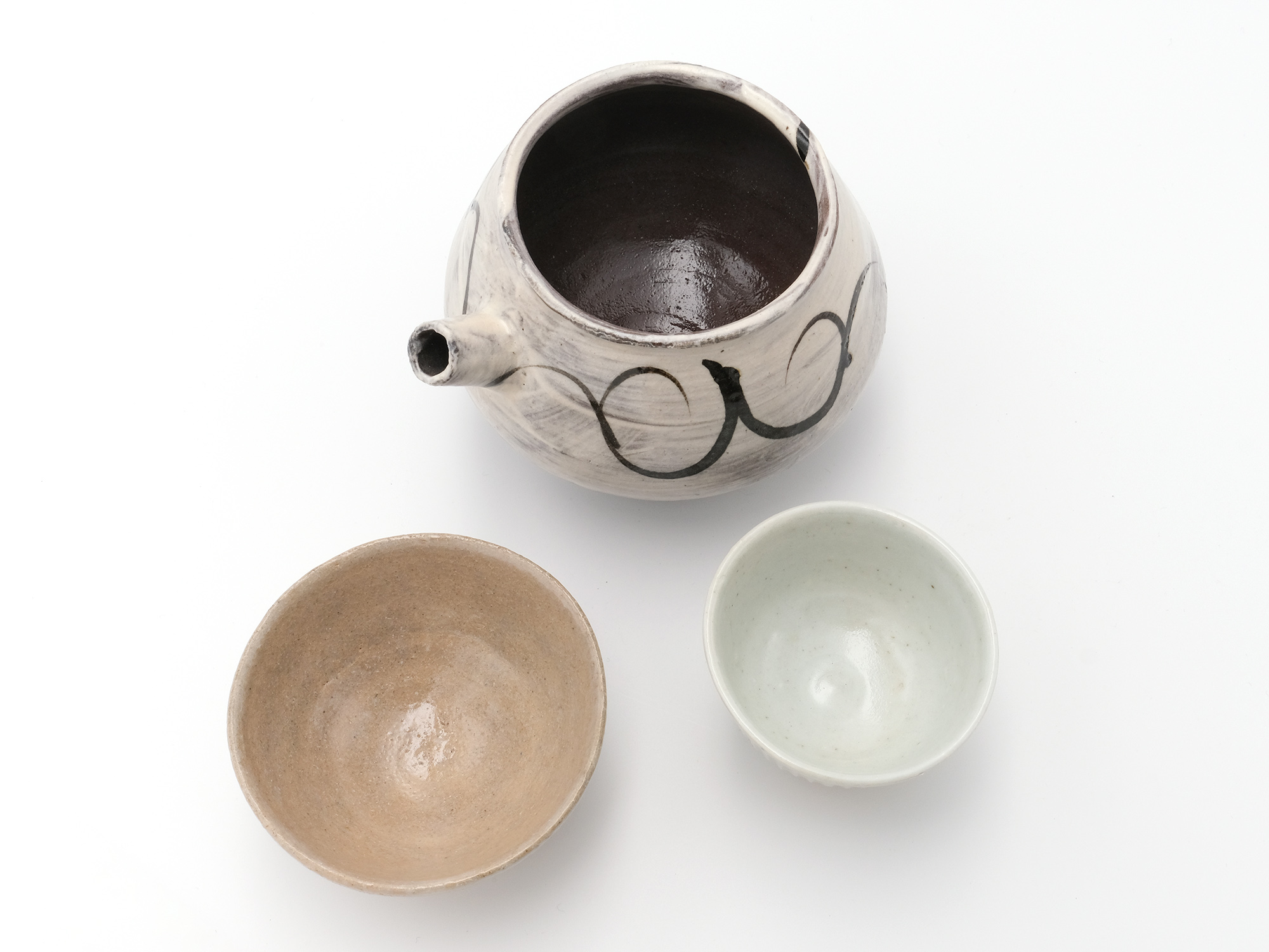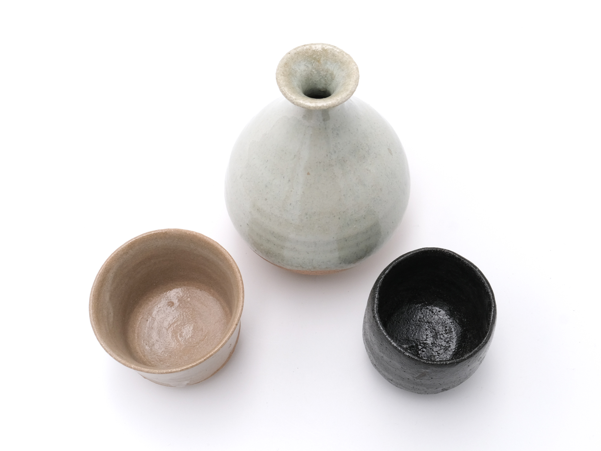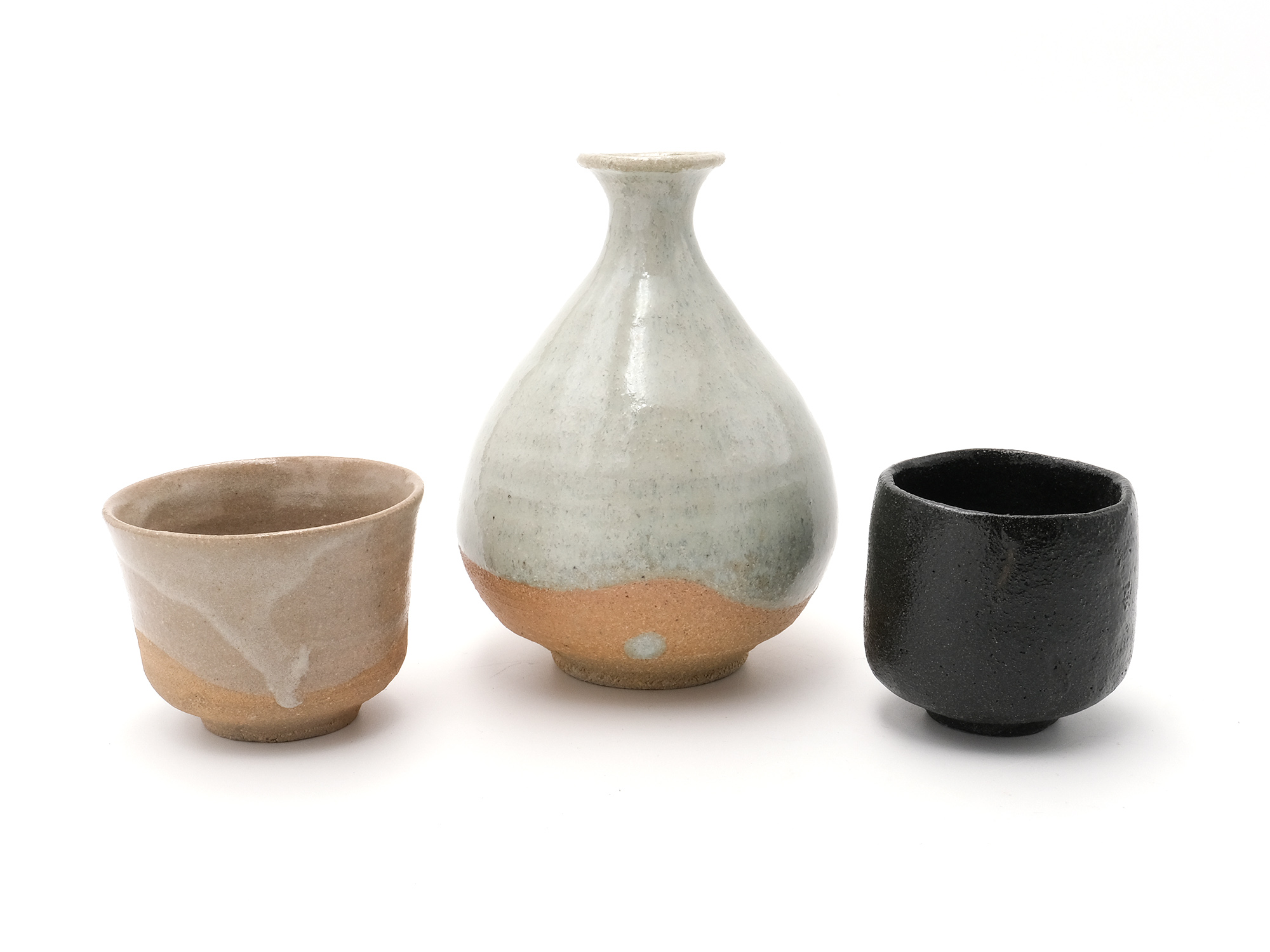 | 作品名 | [左]唐津ぐい吞 [中]斑唐津徳利 [右]黒釉ぐい吞 |