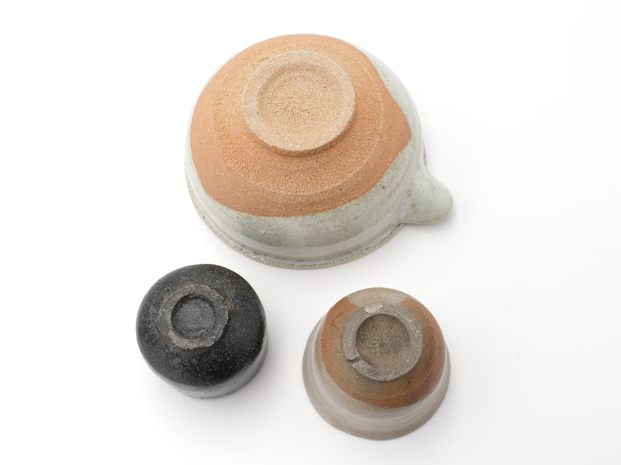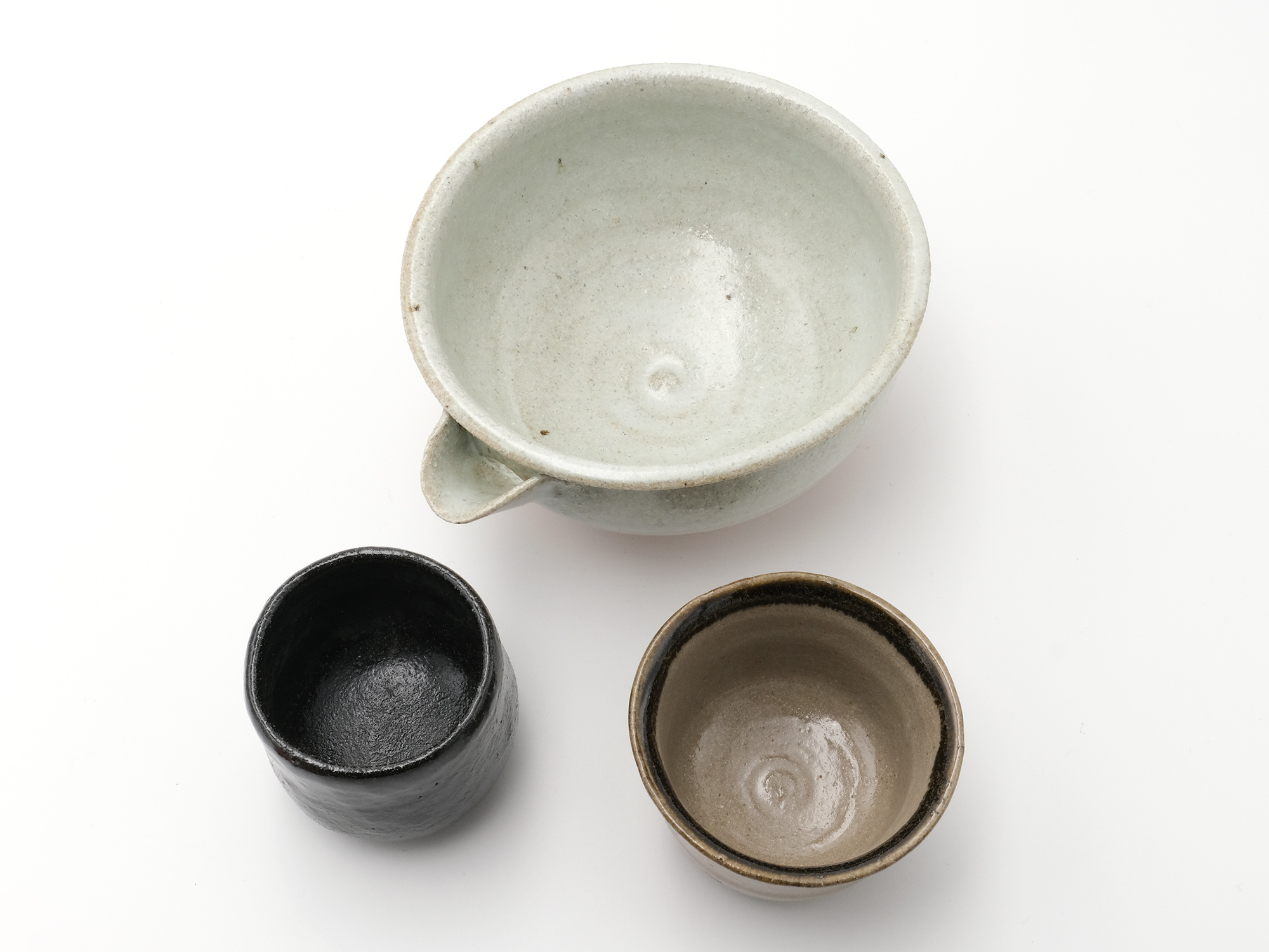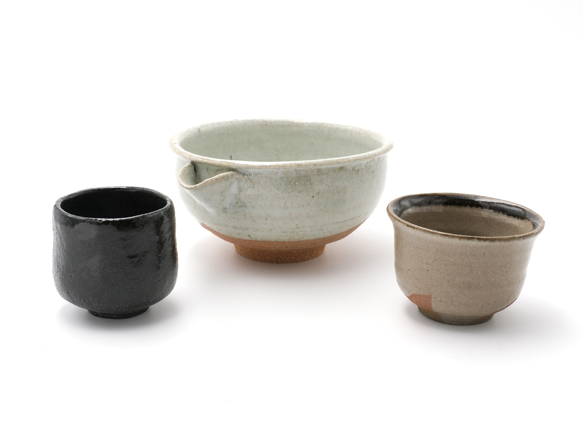 | 作品名 | [左]黒釉ぐい呑【ご売約済】 [中]斑唐津片口 [右]皮鯨ぐい呑【ご売約済】 |