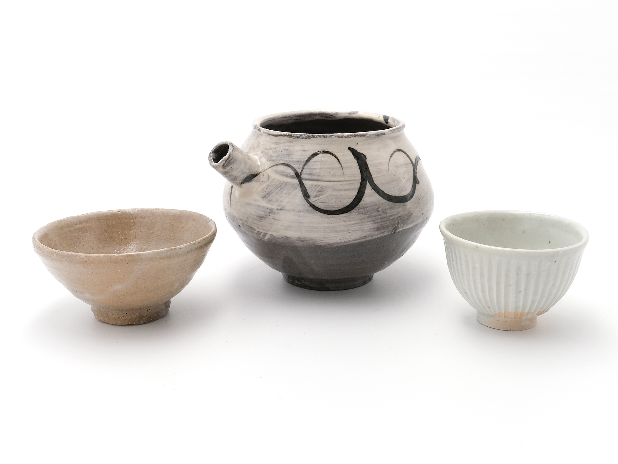 | 作品名 | [左]井戸ぐい吞 [中]絵刷毛目片口 [右]鎬ぐい呑【ご売約済】 |