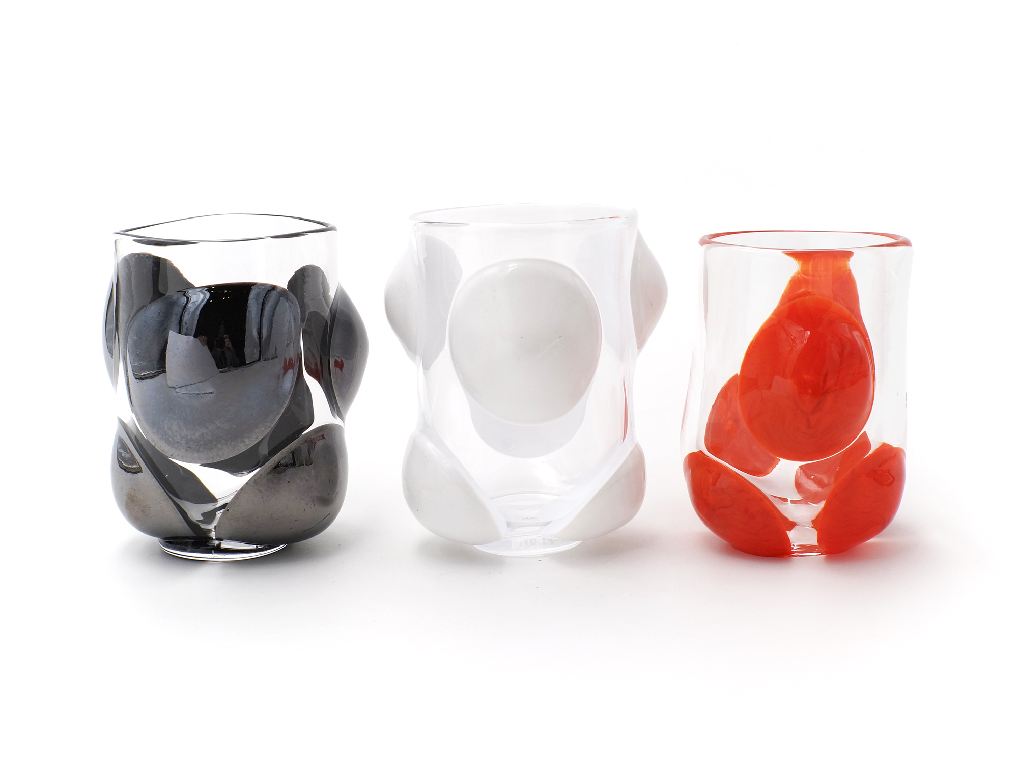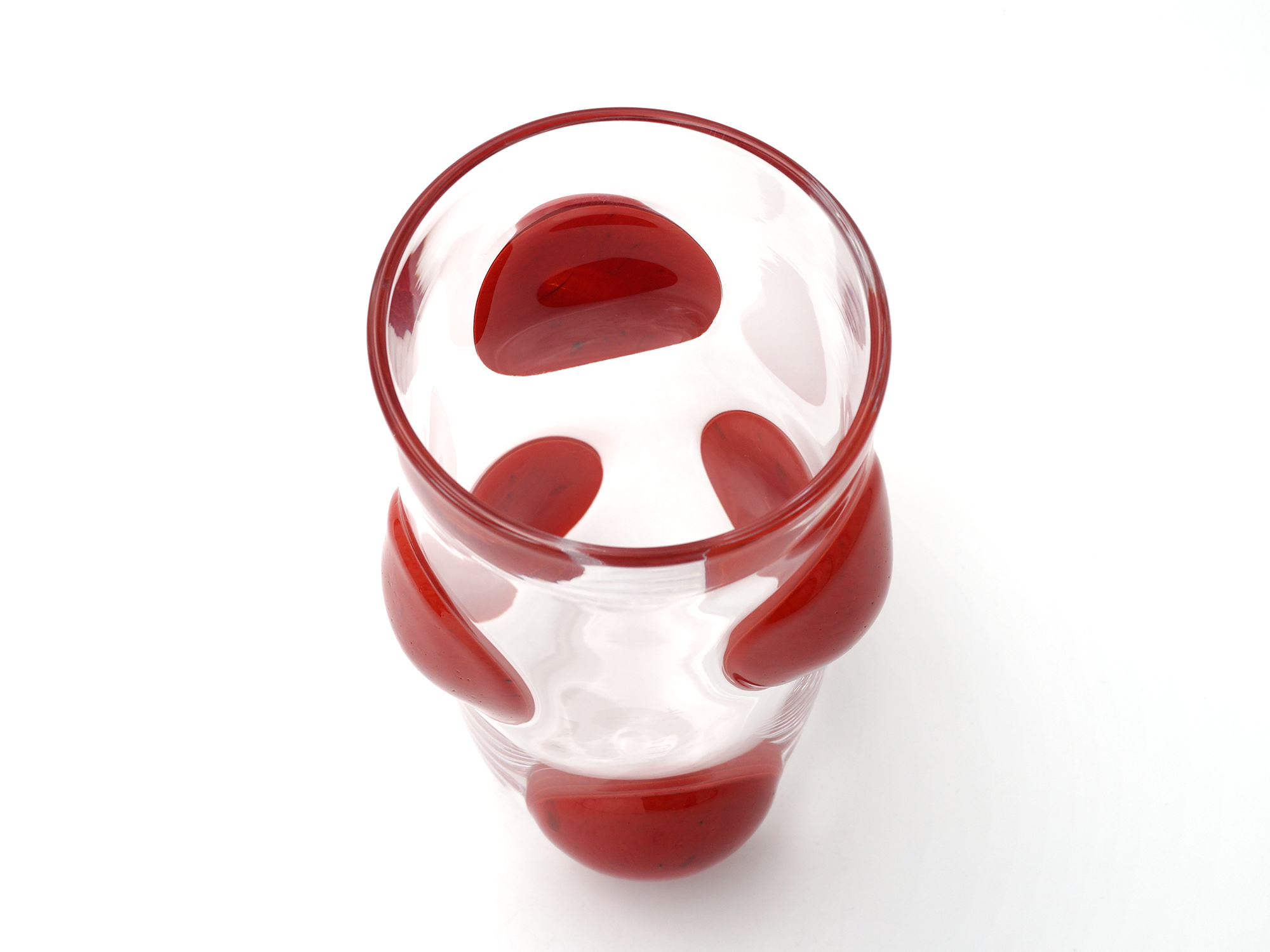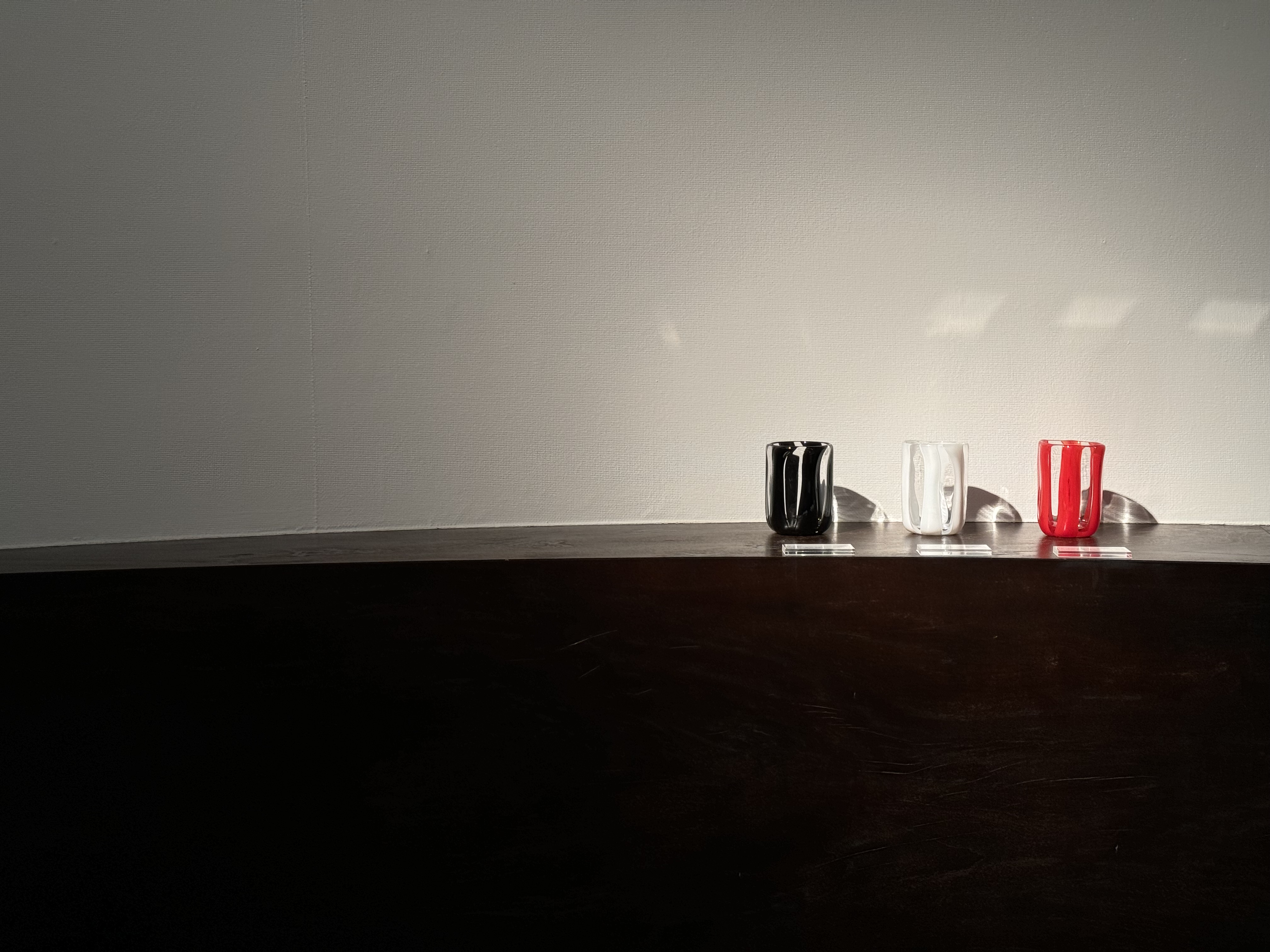 イワタの工芸的作品の魅力は、赤、白、黒といった単色の使い方であり、その表現方法として、赤玉、白玉を載せるという造形感覚はじつに楽しい。