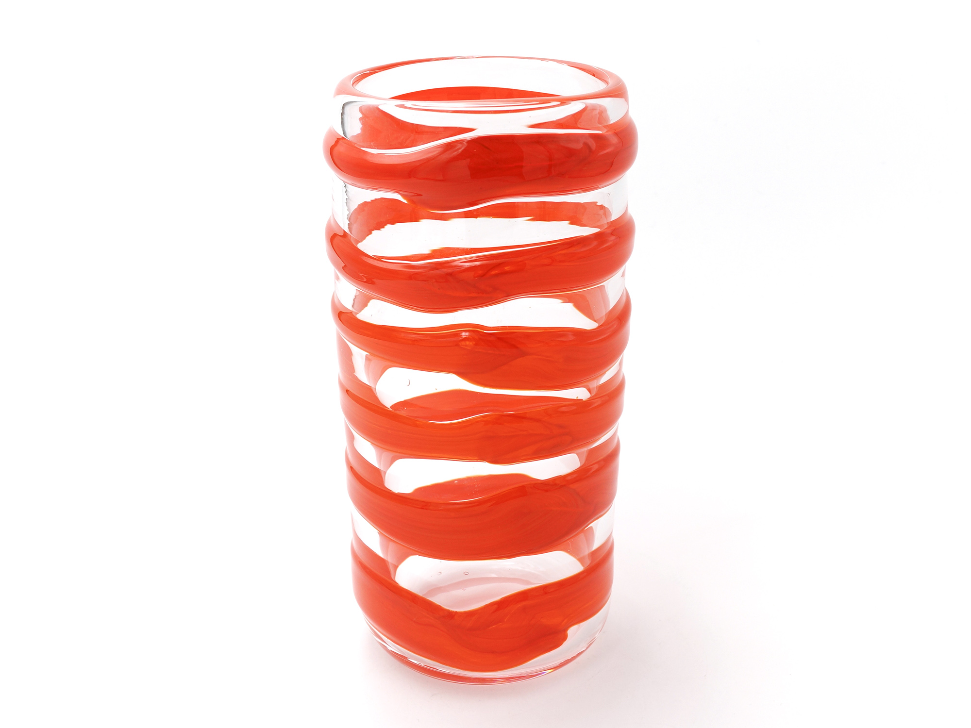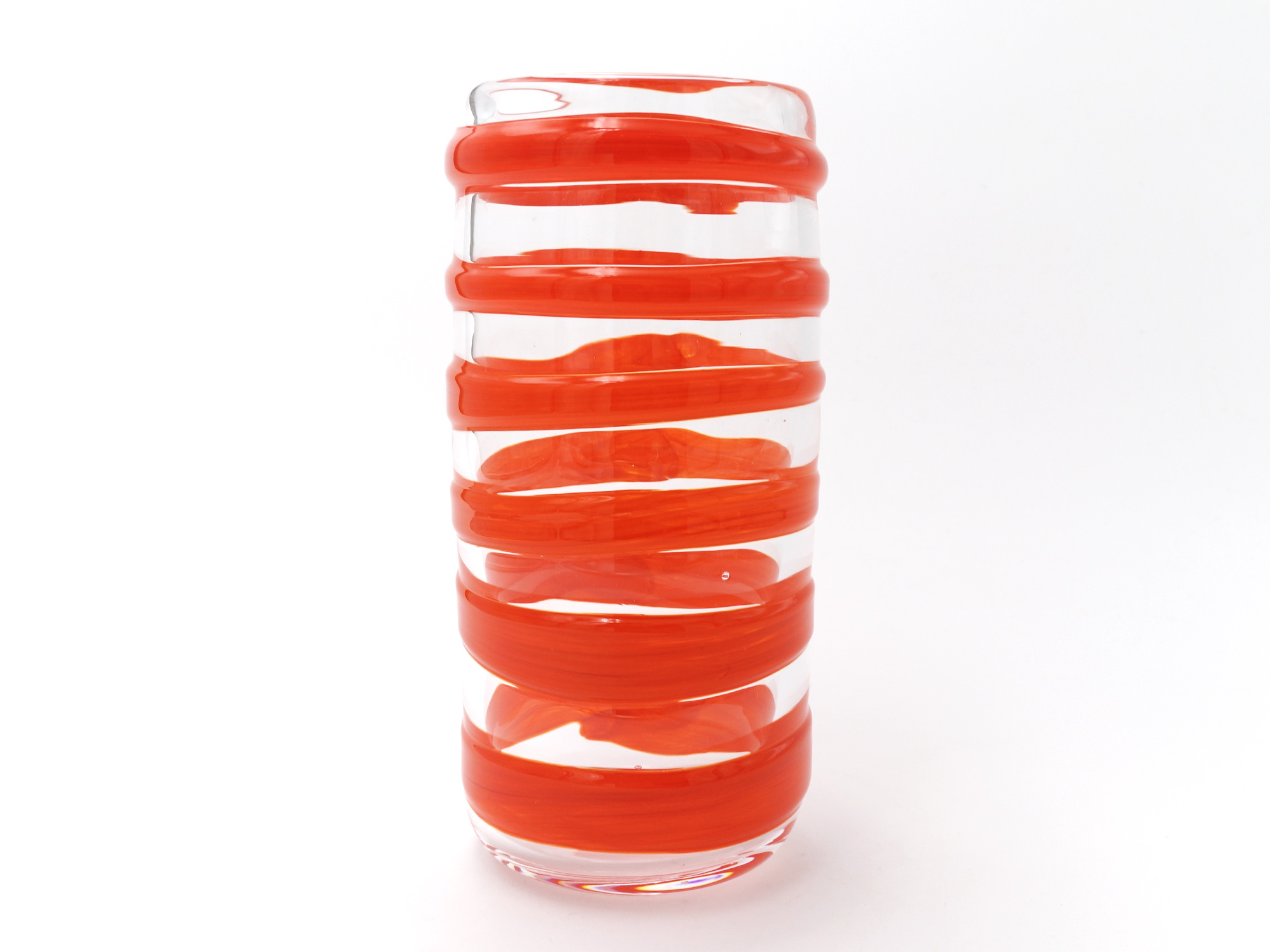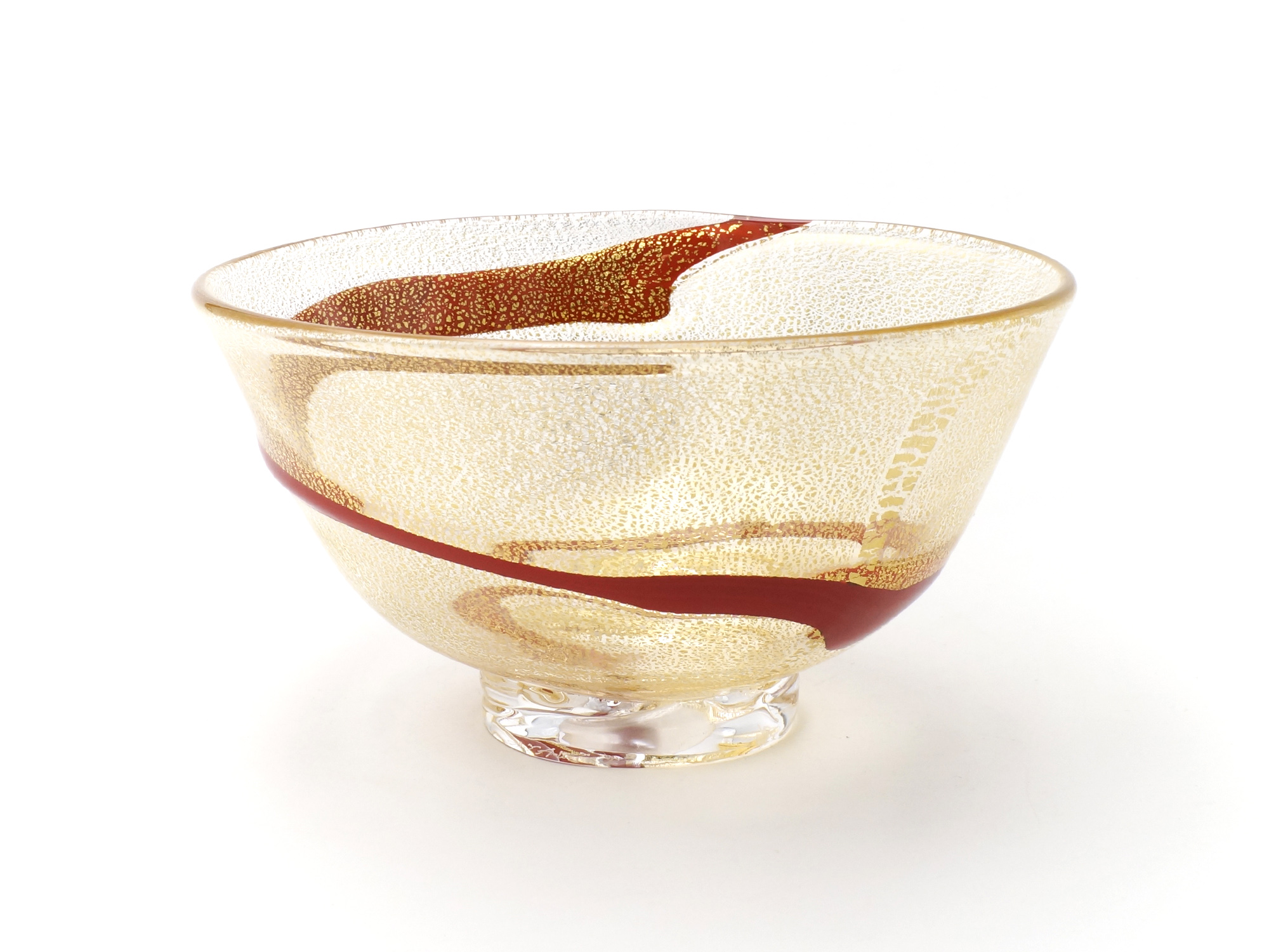 本展には、吹きガラス技法による透明ガラスに赤玉や白玉、白線や黒縞の色ガラスを載せた茶碗や花瓶、中鉢、ぐい呑、コップなどが出品されるが、透明ガラスと黒色ガラスを組み合わせた花器は、イワタ独自の縄積み技法による作品である。 また、鋳込み技法による彫刻的作品も1点出品される。