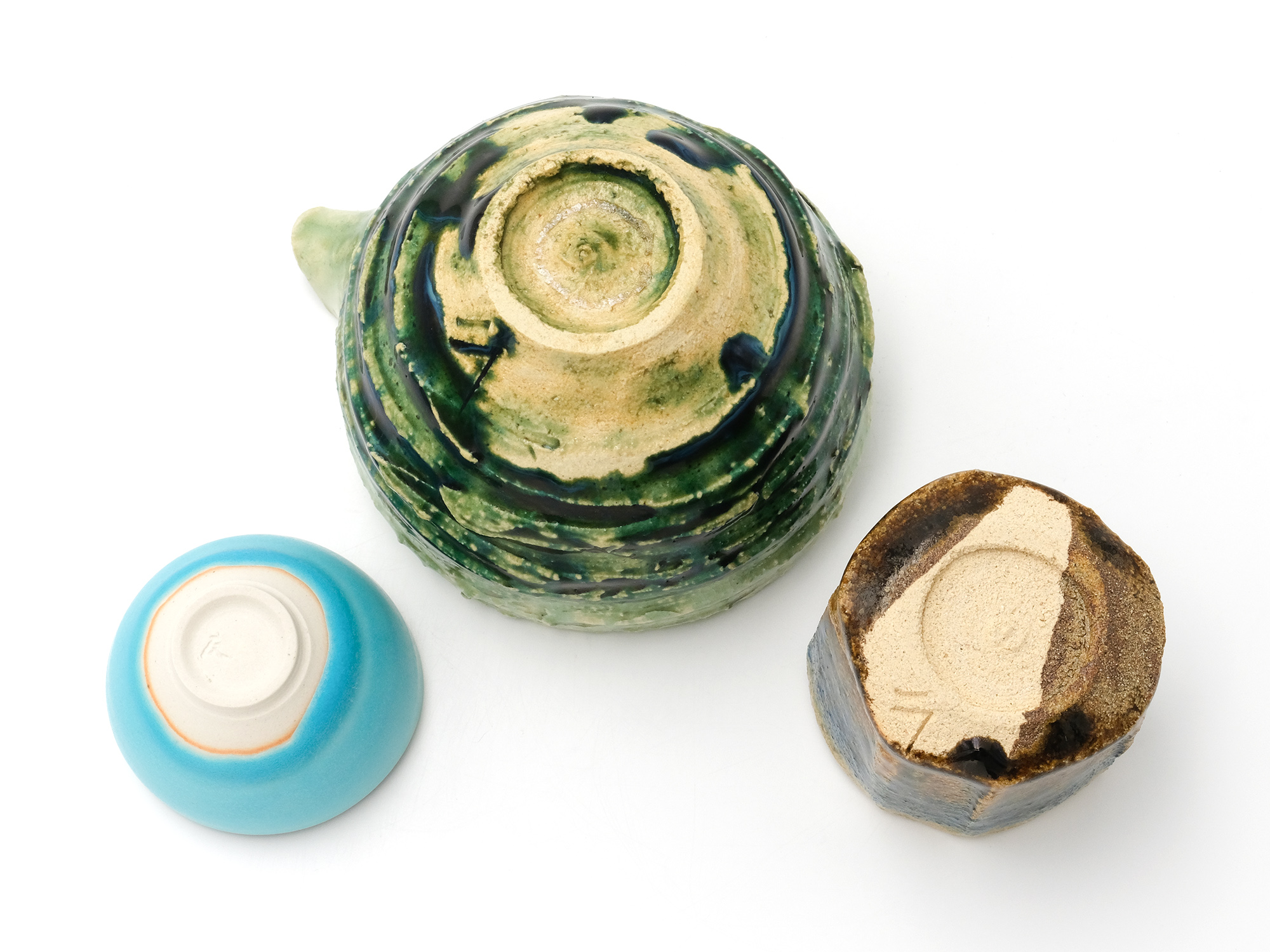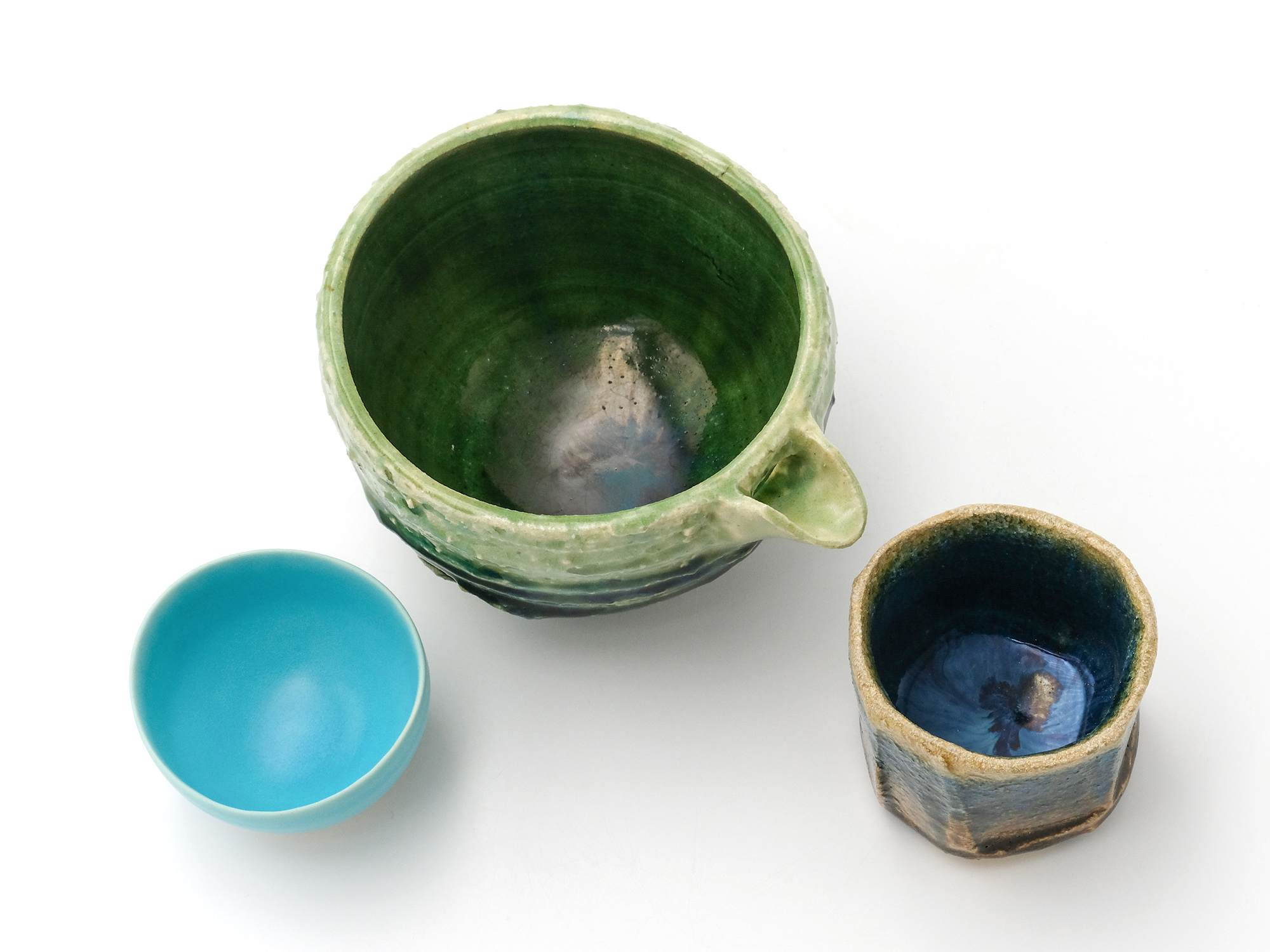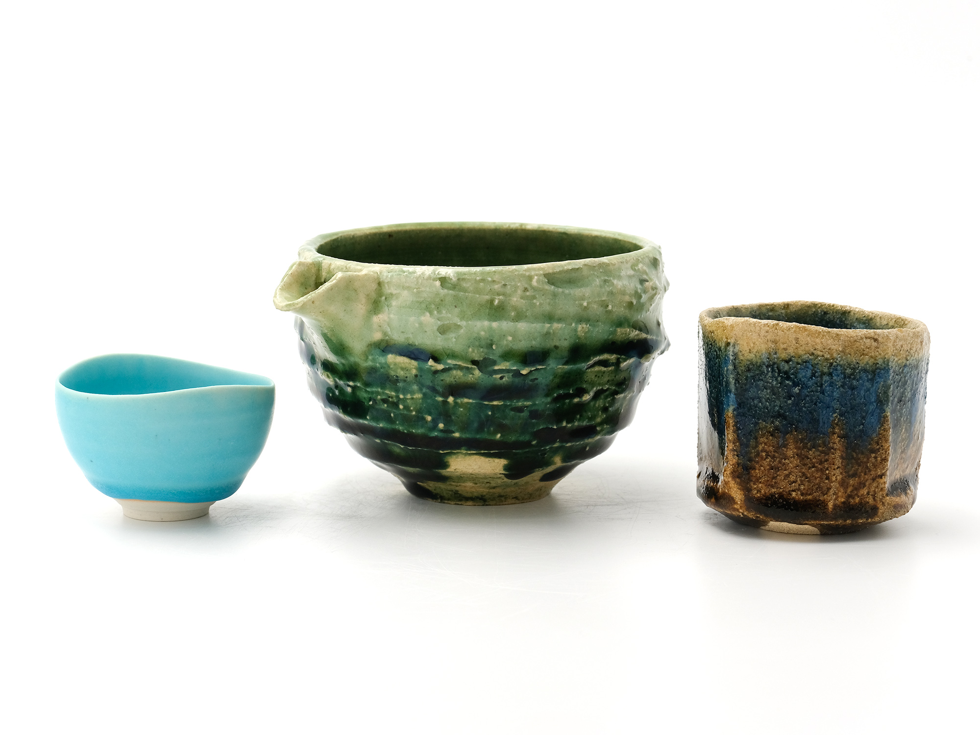 | 作品名 | [左] 蒼碧釉酒呑 [中] 緑釉片口 [右] 三彩酒呑【ご売約済】 |