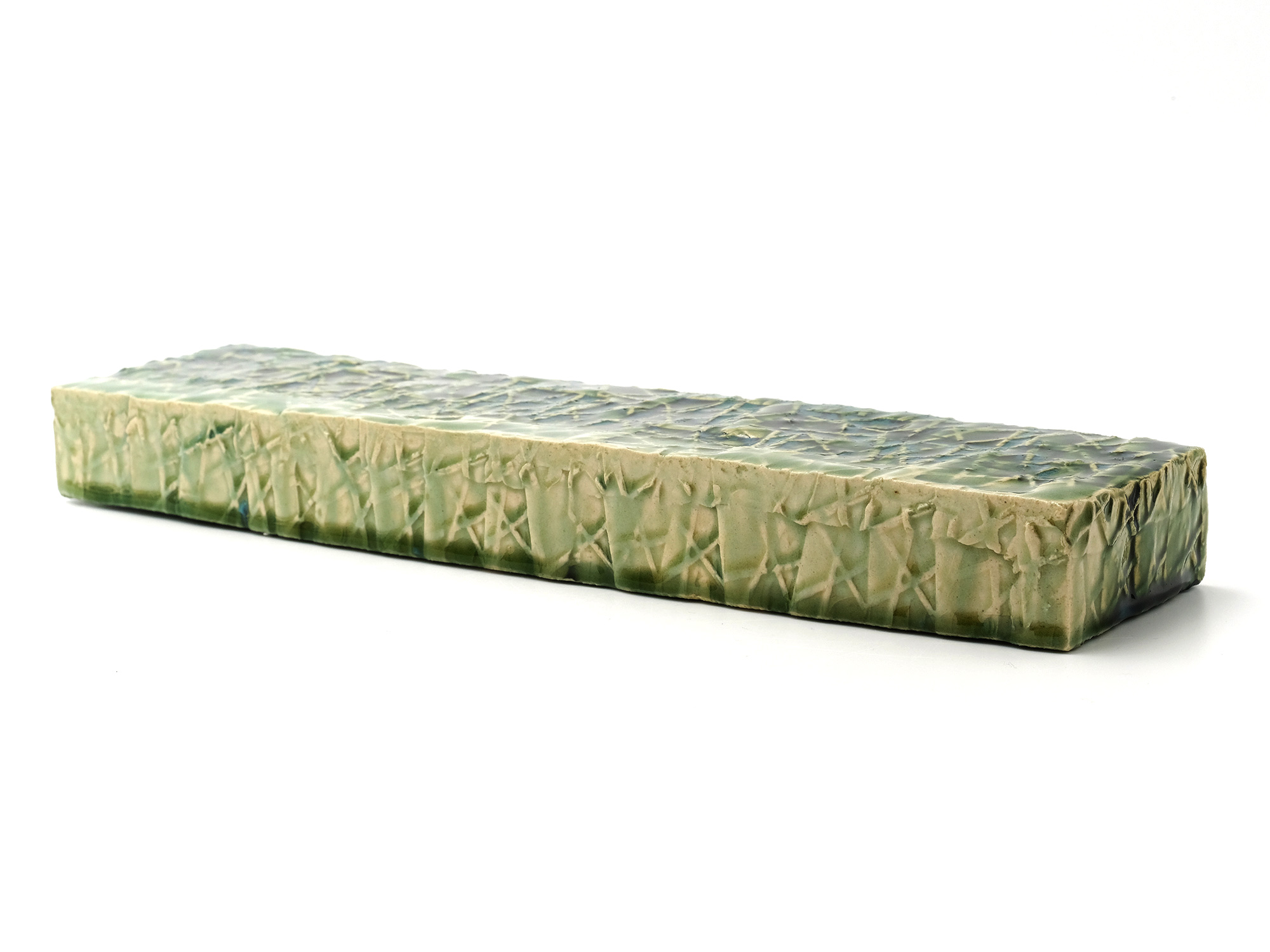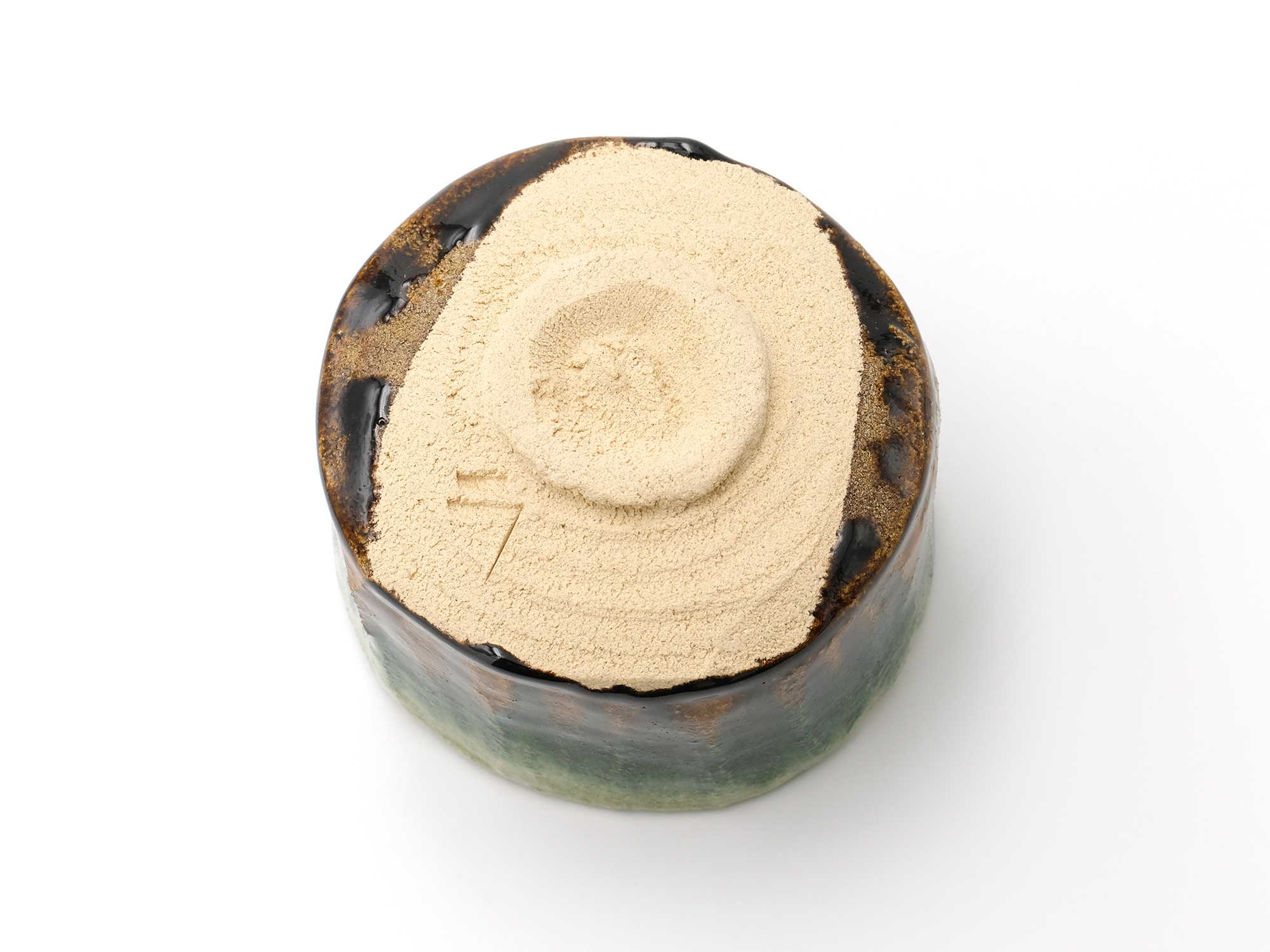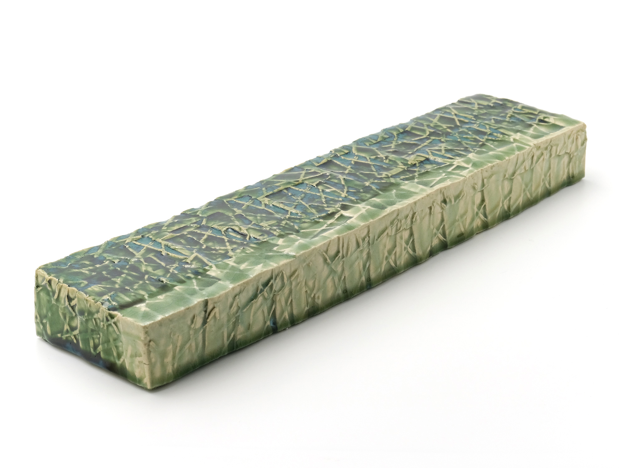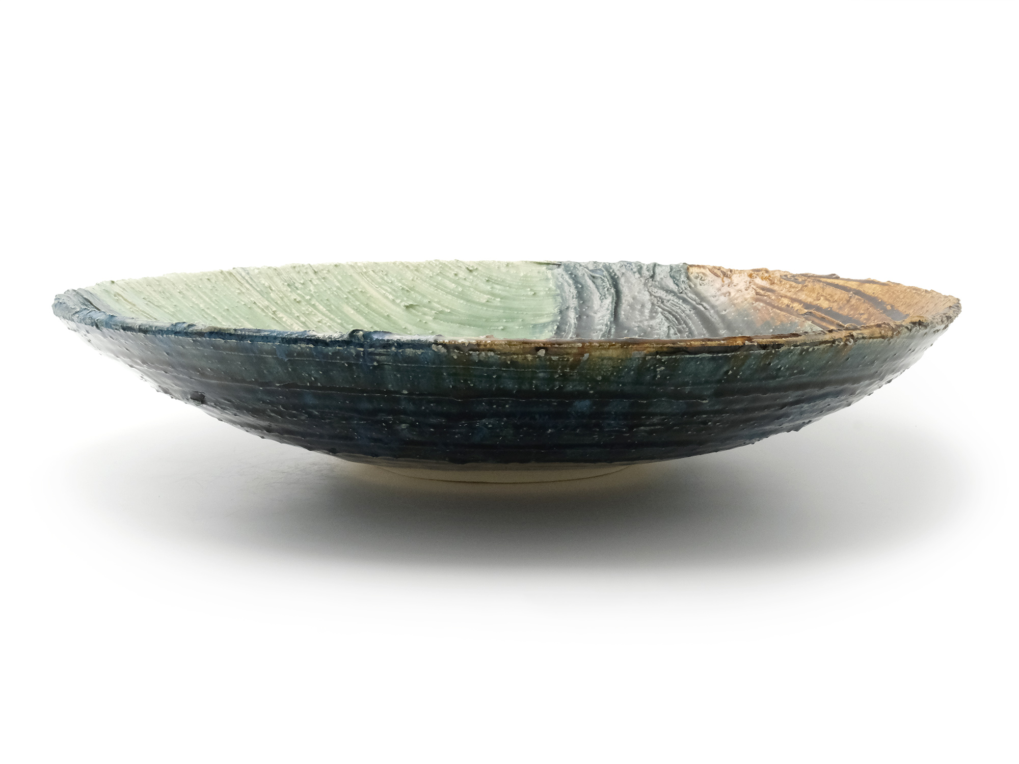 徹さんは、緑釉の作品に一貫して挑まれています。 私は20年近く、彼の緑釉作品を拝見して来ましたが、その緑の色調は微妙に進化し、そのボディは茶陶を主軸に造形作品にも挑まれてきました。 私は彼の緑色の佇まいが大好きで、茶碗、水指、食器と愛用しております。 大寄せの茶会などで、たくさんの茶碗を使う時に、緑釉茶碗があると、茶室が華やぎ、そして和みます。 新宿柿傳でも長く愛用している定番の緑釉丸皿は、どんな料理を盛り付けても、料理が一層美味しく映えます。 今年から、日本工芸会 東海支部の幹事長に就任され、公私共に一層忙しくなった徹さん。激務の傍らの作陶で、本当に頭が下がります。