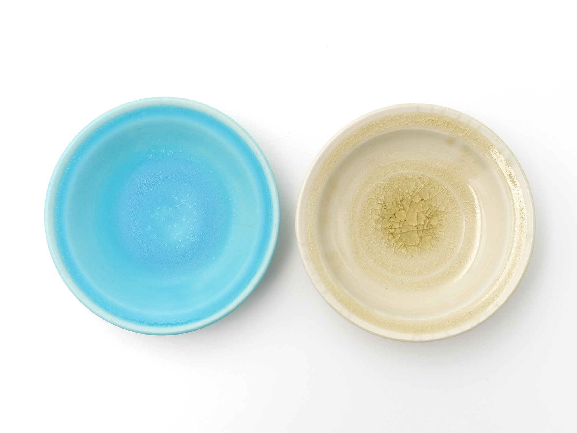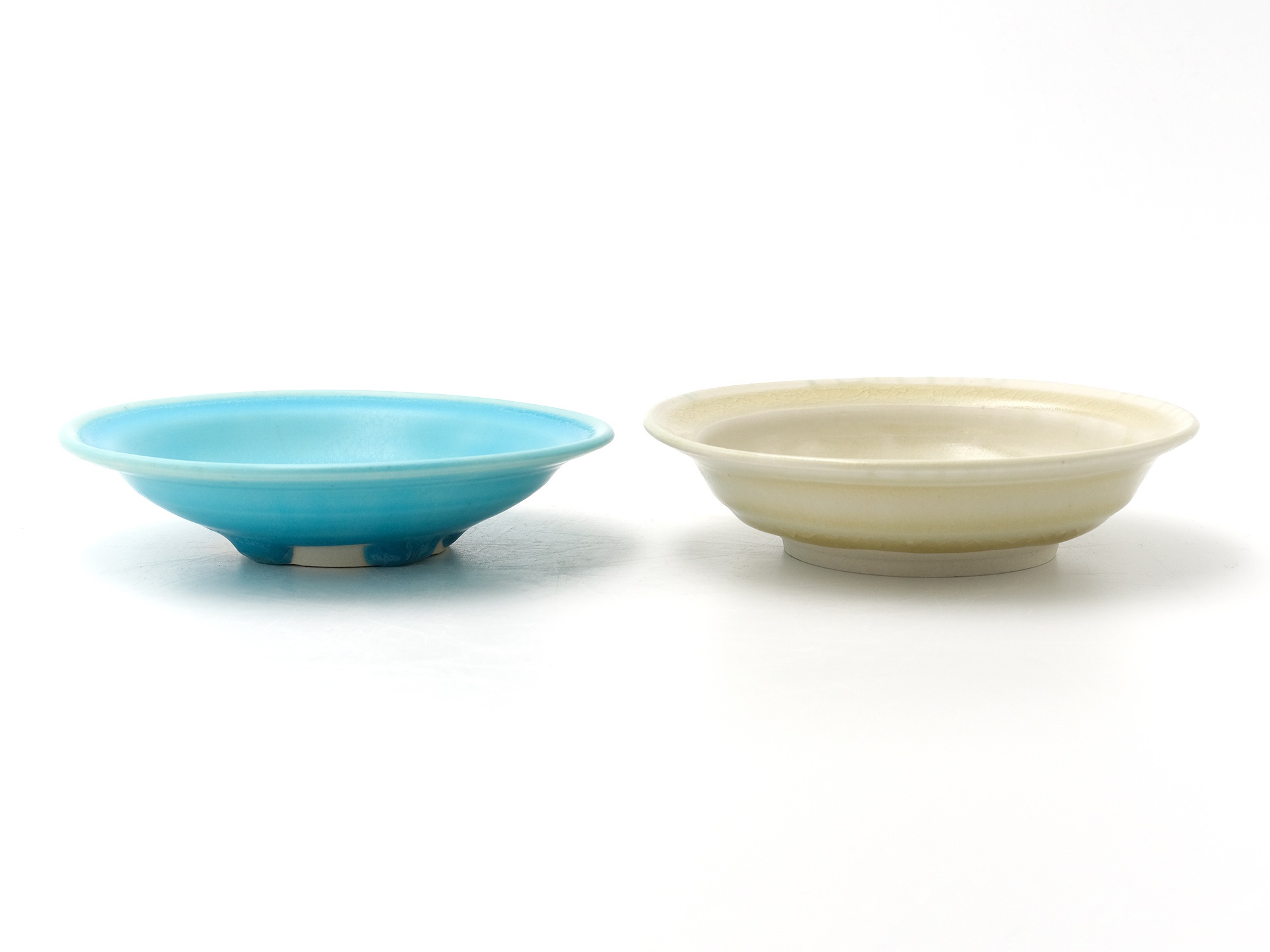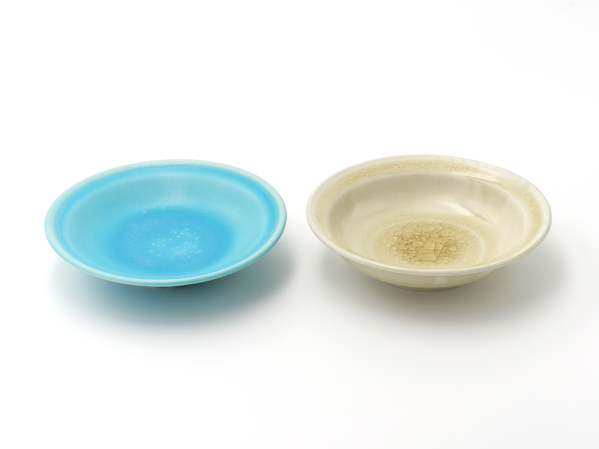 | 作品名 | [左] 蒼碧釉丸皿 [右] 黄白釉丸皿 |