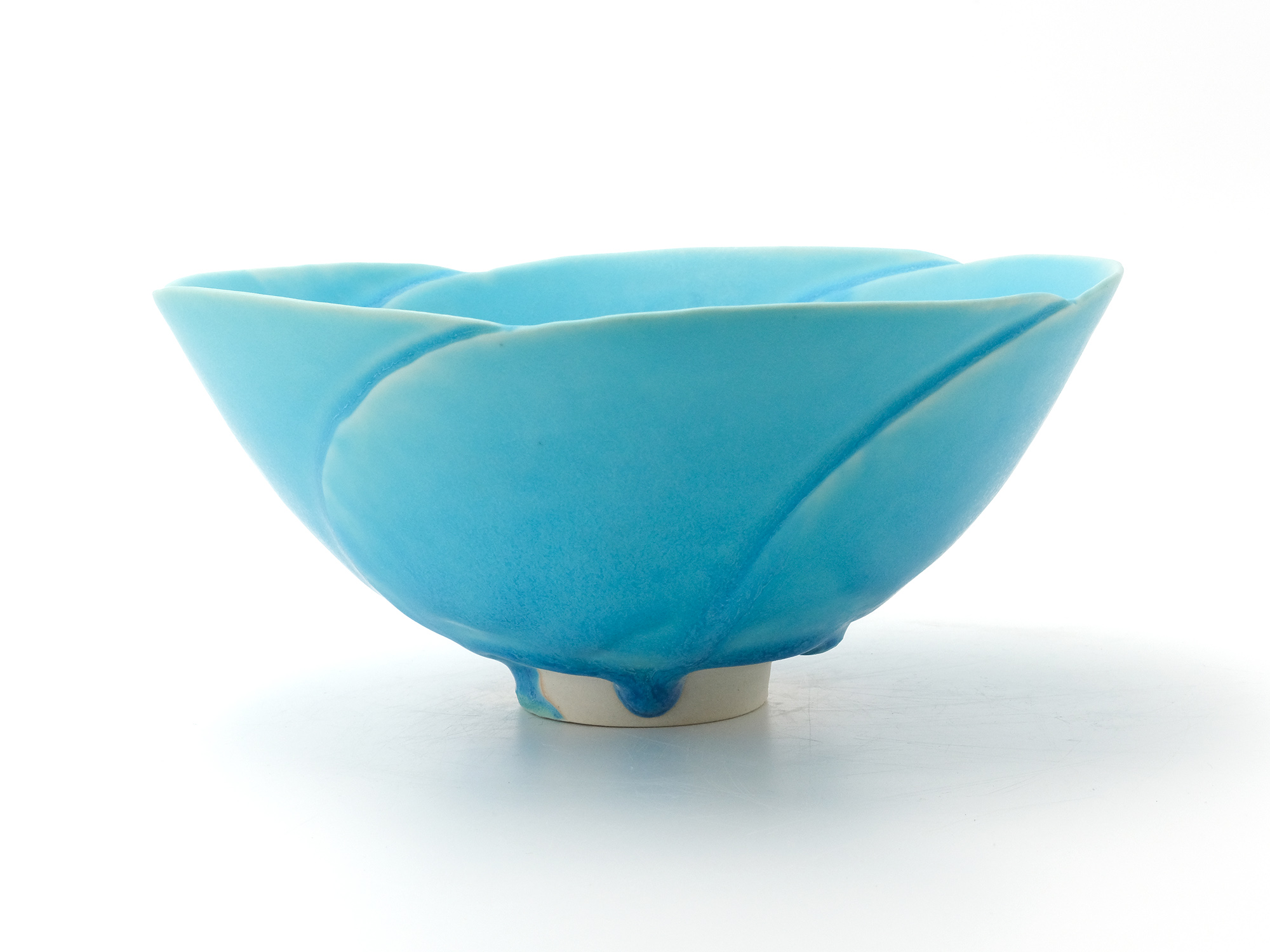 一方、友美さんは、長良川の青色をイメージしたという青色の作品を懸命に作っておられます。 彼女のうつわは、ご主人の影響もある造形も見受けられ、ご夫婦仲の良さが手に取るようにわかります(笑)。