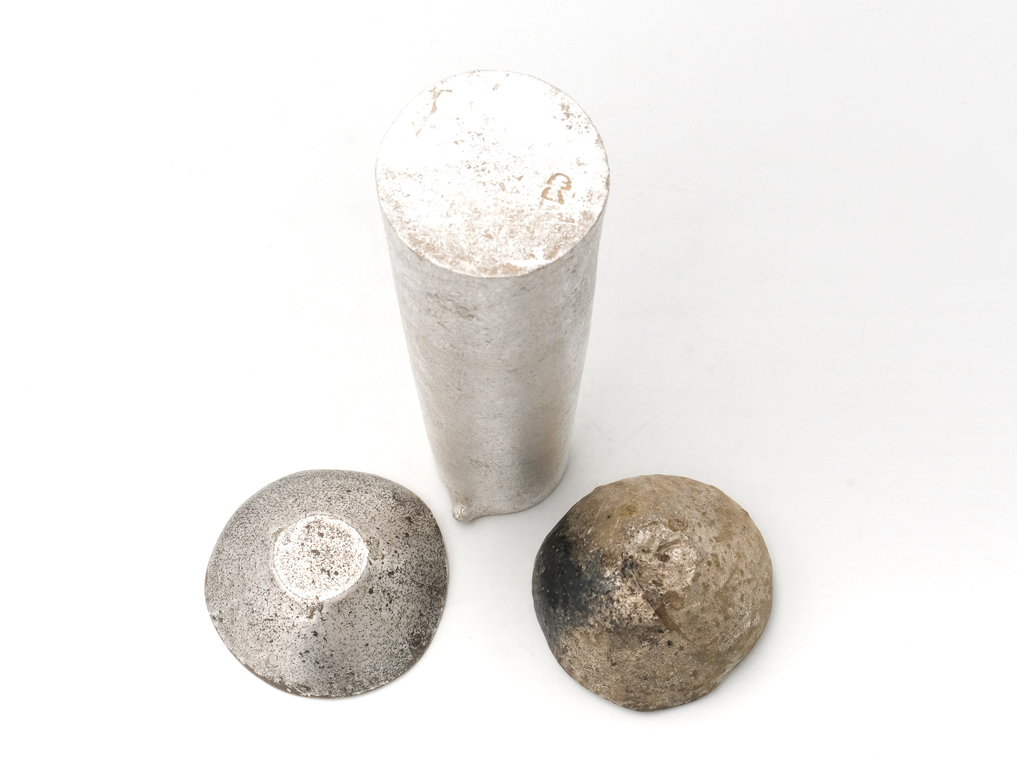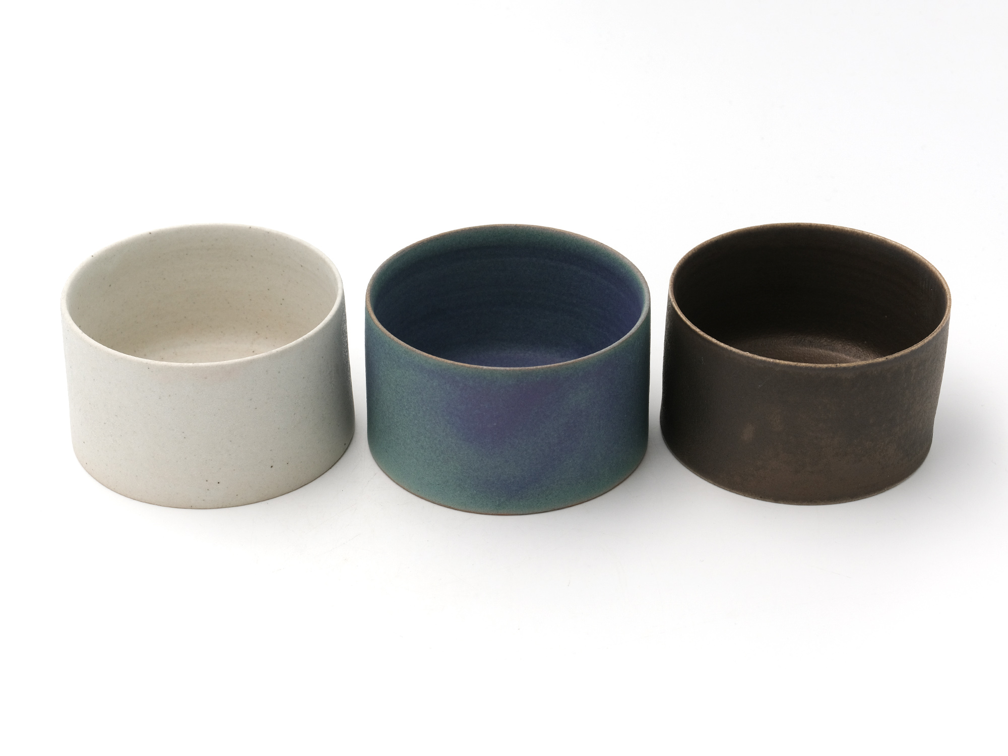 | 作品名 | [左] 銀彩墨流し酒盃 [中] 銀彩酒器【ご売約済】 [右] 灰釉酒盃【ご売約済】 |