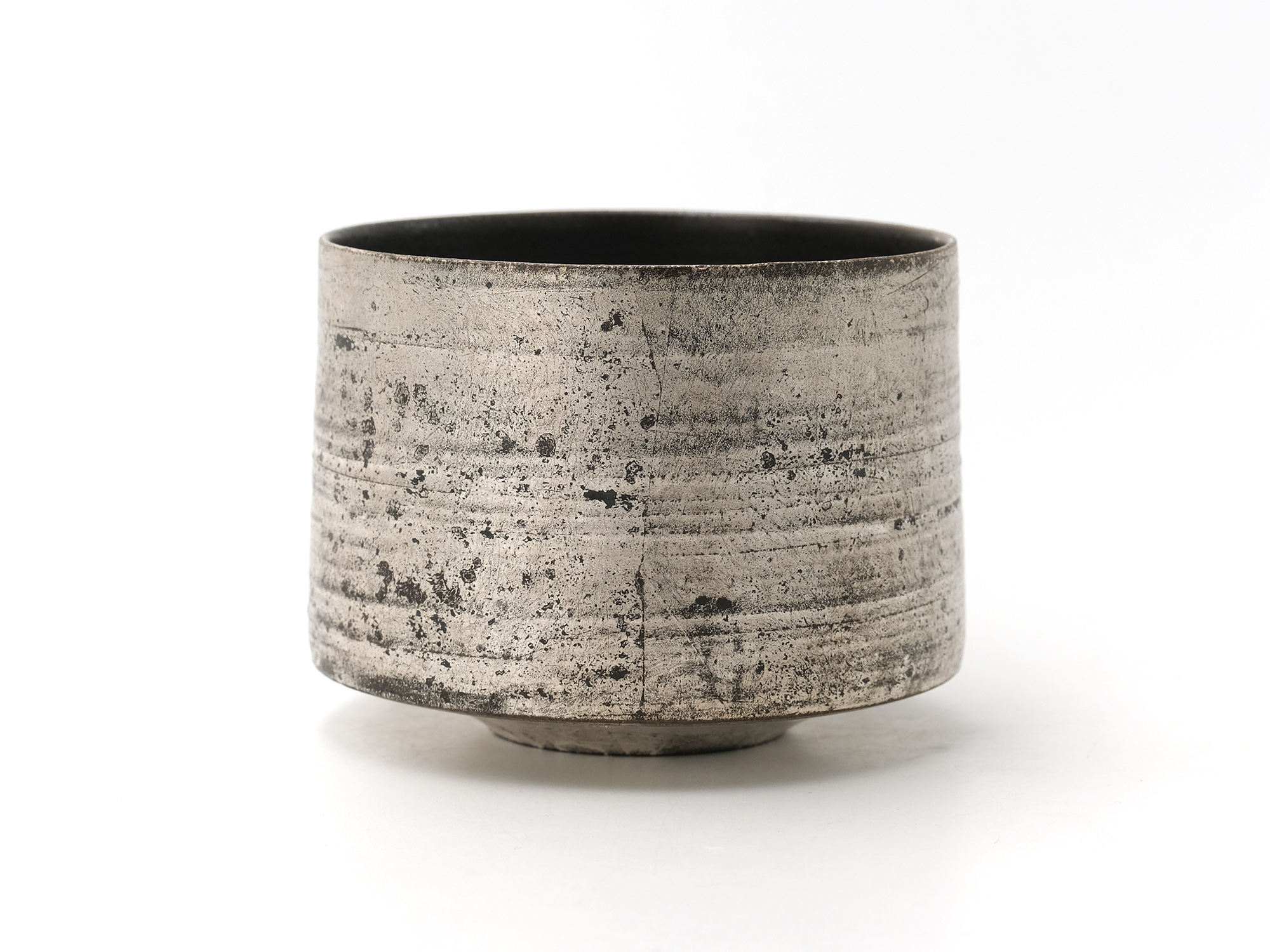 さて、弊廊で初となる本展では、最新作の茶陶と、使い勝手の良いうつわなど100点余を発表致します。 本展のメインビジュアルとなる裏面の「銀彩墨流茶碗」は、しっとりとした漆の風合いに、控えめにきらっと輝く銀箔が独特の佇まいを見せています。 掌へのおさまりも良く、抹茶の緑も映える事でしょう。 黄金週間前の気ぜわしい時期で恐縮ですが、弊廊も静かにJAZZを流しつつ、皆様のご清覧をお待ち申し上げております。