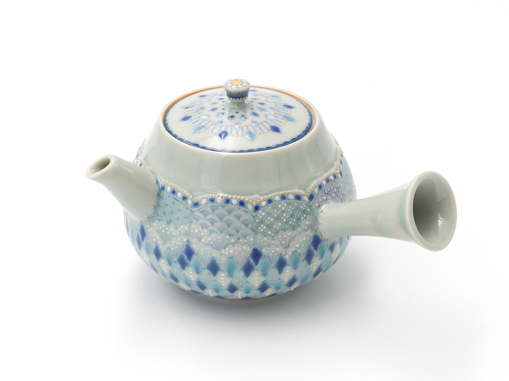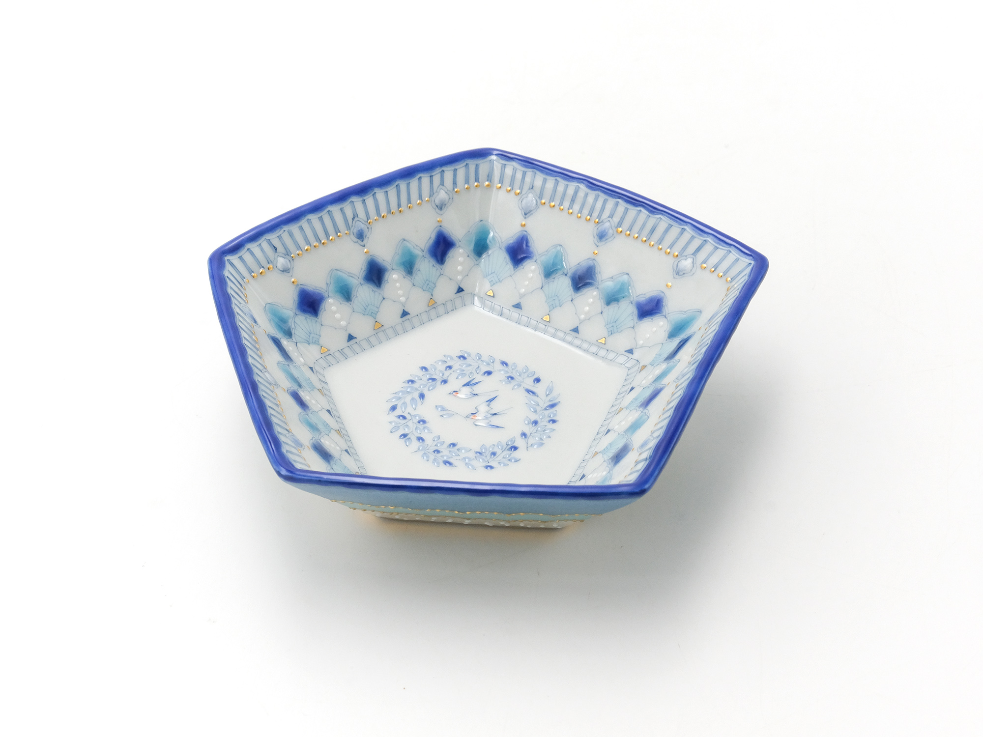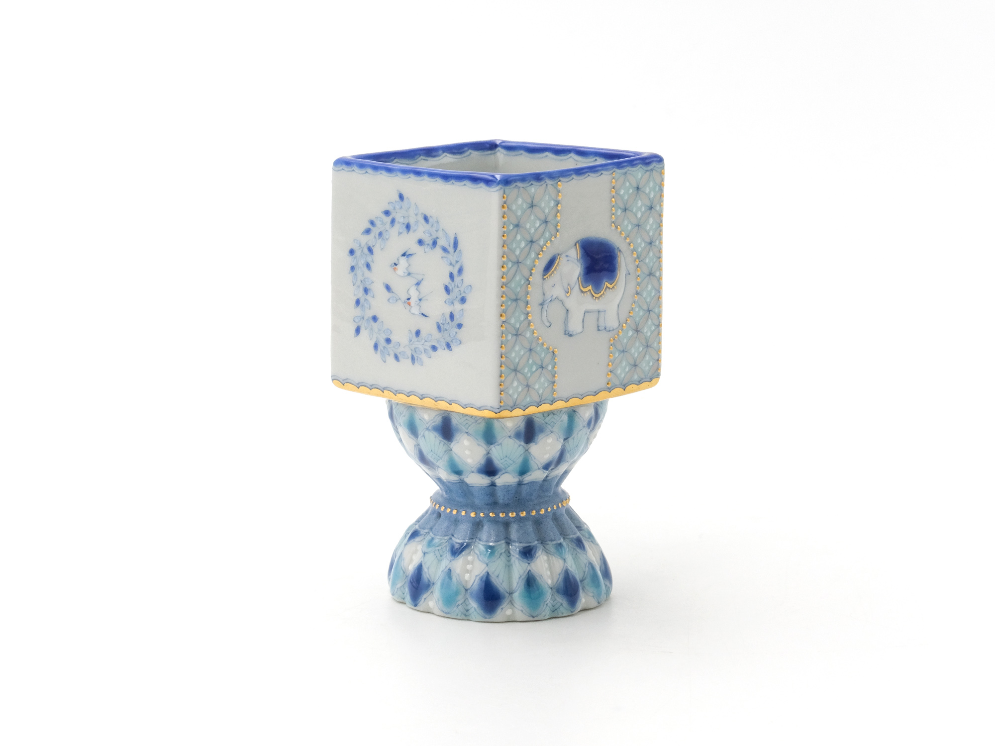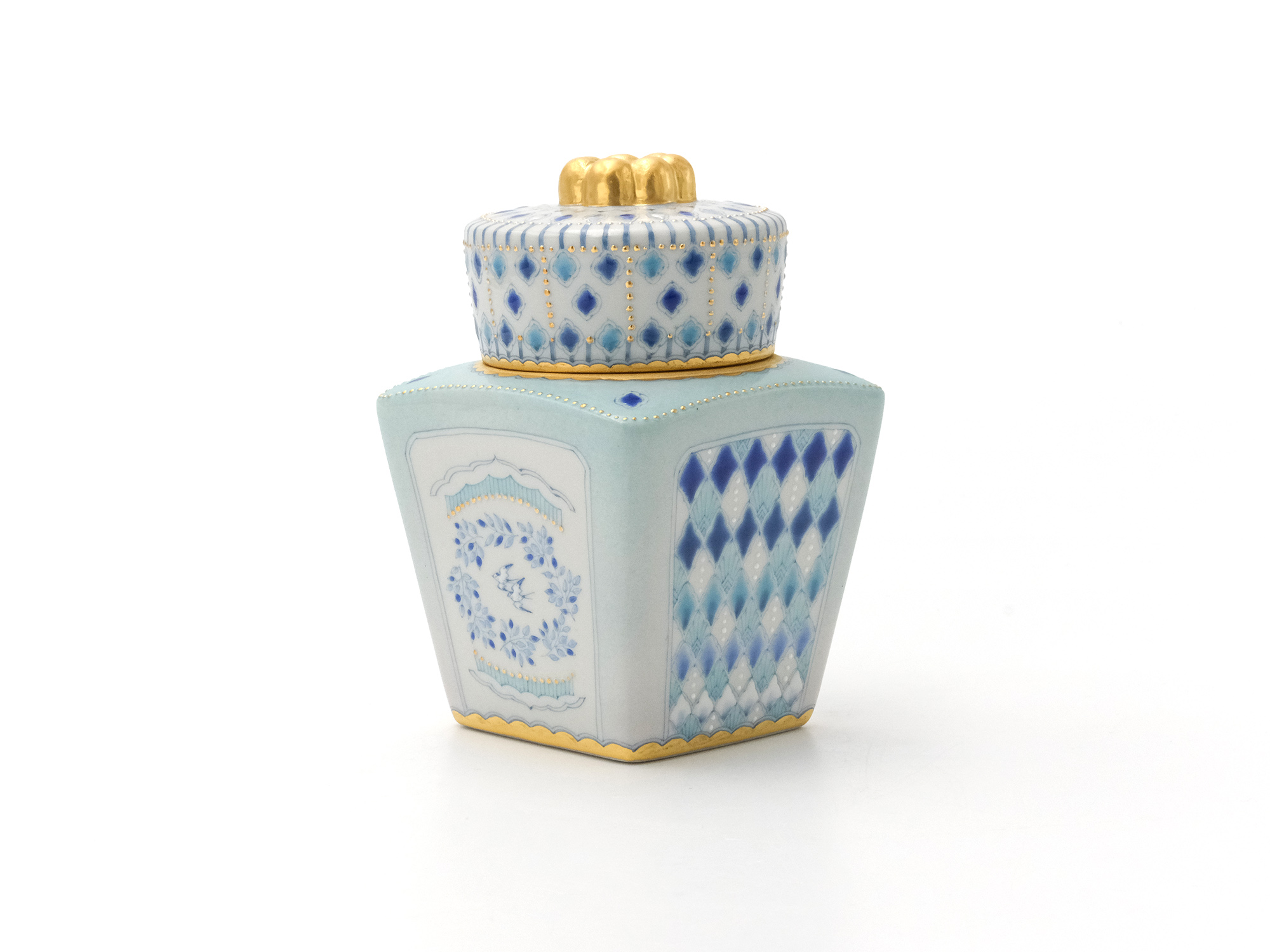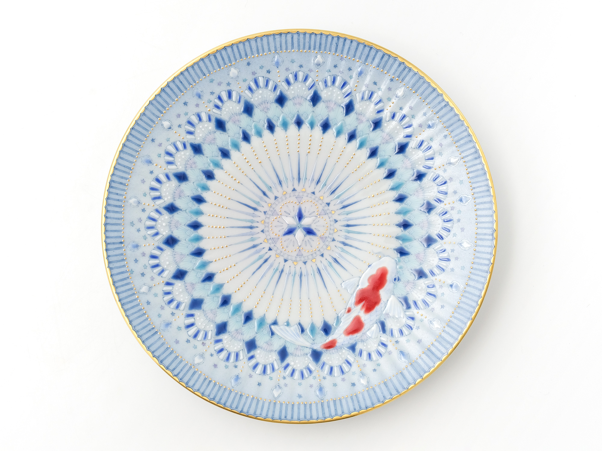 早助千晴さんは、石川県の金沢市で、磁器に美しい絵付けをなさる九谷焼の女流作家です。 その作品は青色を基本に、エキゾチックで細かな幾何学文様が描かれています。 その文様のモチーフは月の満ち欠けや星といったもので、彼女が描く世界観は、他の誰とも似ておらず、唯一無二のものです。 旅へといざなう様な異国情緒漂う作品と、心豊かで誠実なお人柄も相まって、愛陶家の皆様の心を掴んで離しません。もちろん、かくいう私も早助ファンの一人です。
