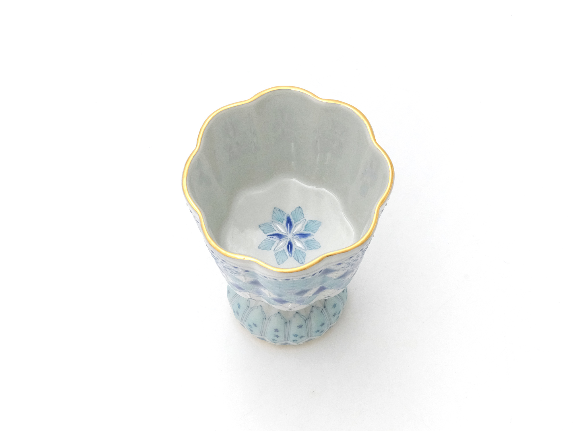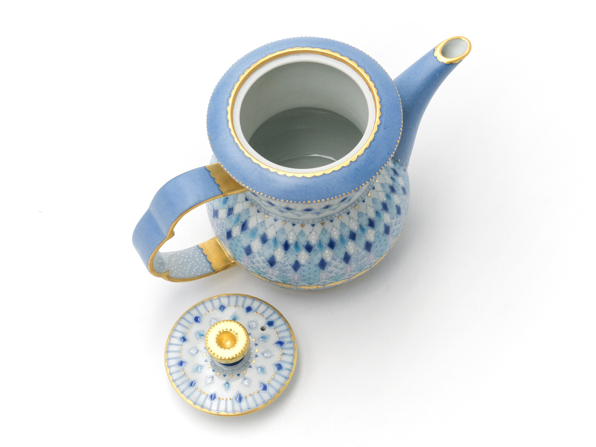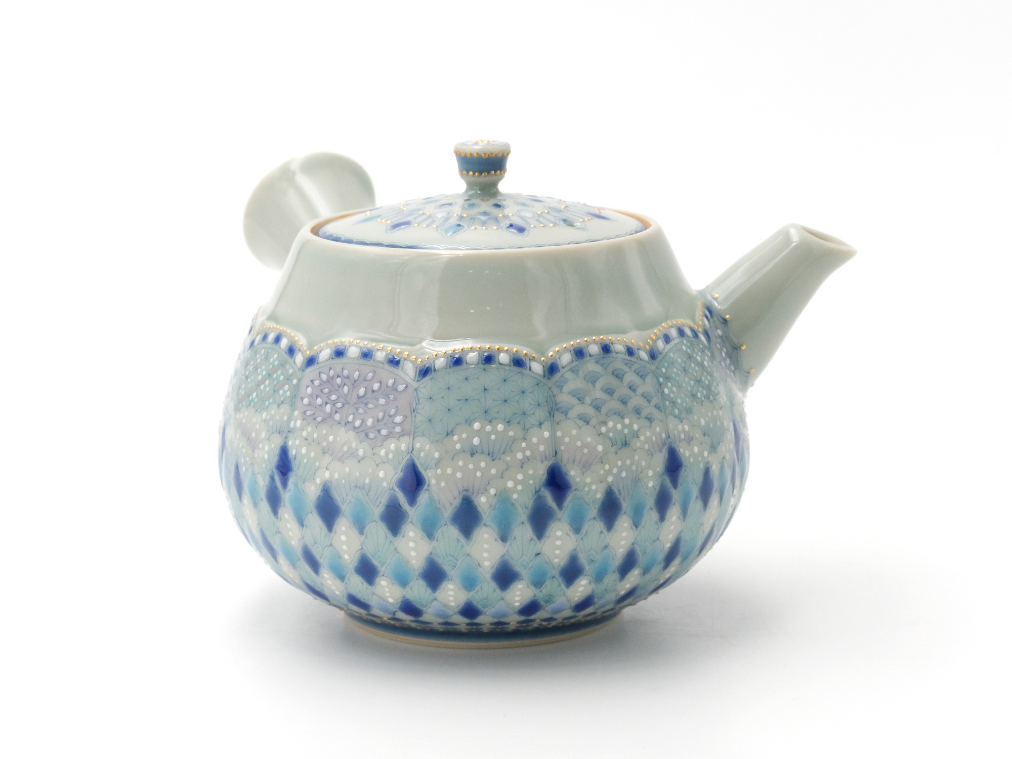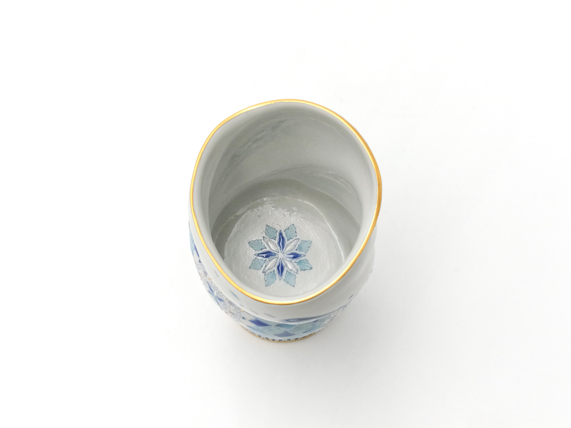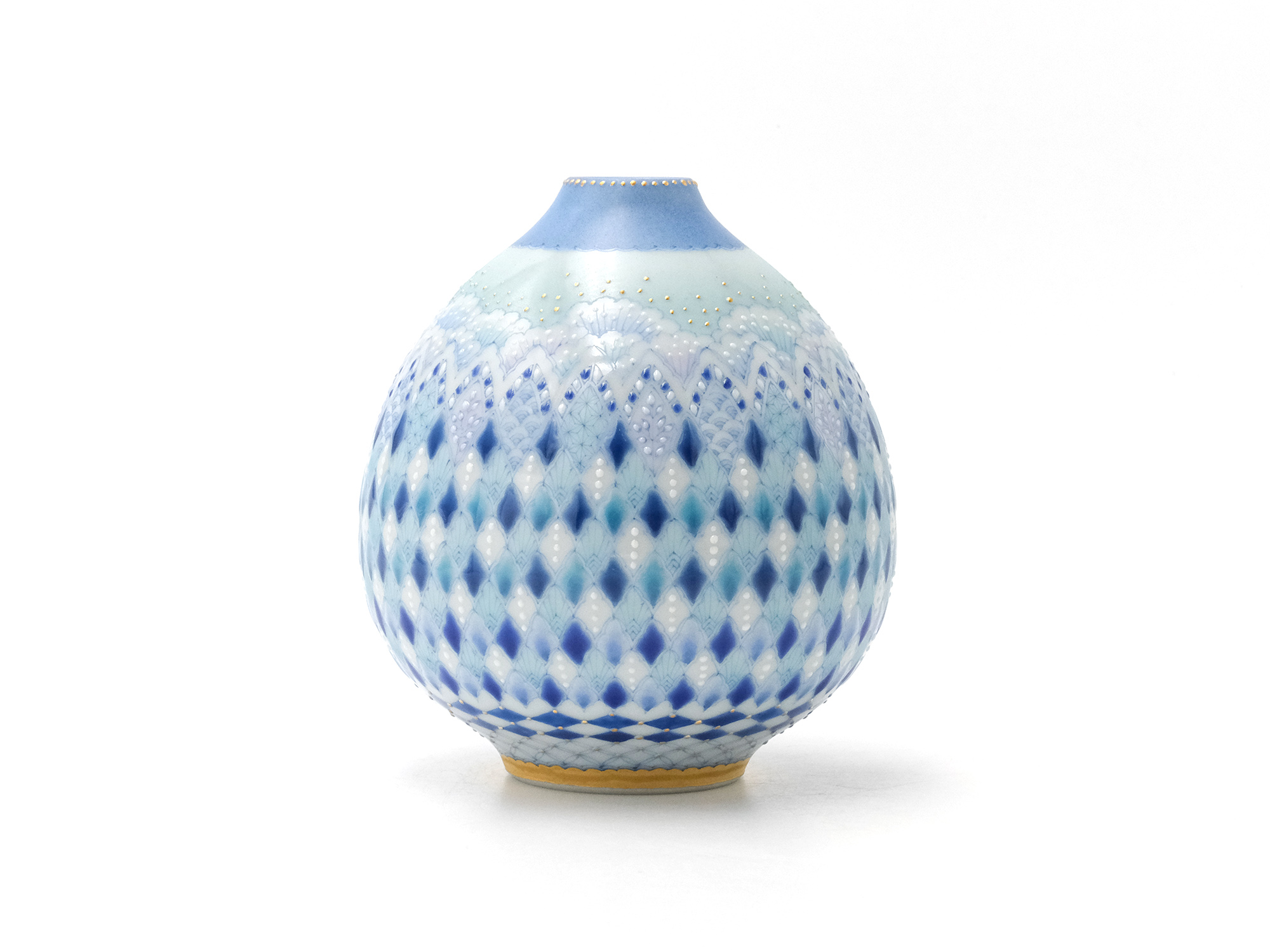早助千晴さんは、石川県の金沢市で、磁器に美しい絵付けをなさる九谷焼の女流作家です。 その作品は青色を基本に、エキゾチックで細かな幾何学文様が描かれています。 その文様のモチーフは月の満ち欠けや星といったもので、彼女が描く世界観は、他の誰とも似ておらず、唯一無二のものです。 旅へといざなう様な異国情緒漂う作品と、心豊かで誠実なお人柄も相まって、愛陶家の皆様の心を掴んで離しません。もちろん、かくいう私も早助ファンの一人です。