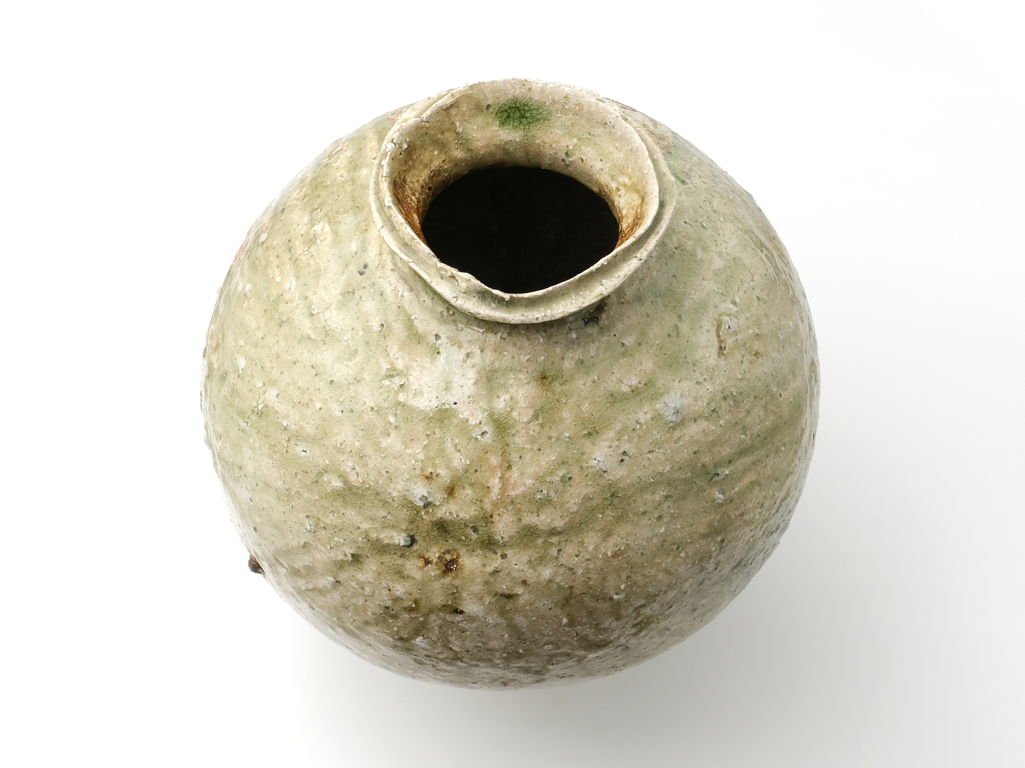 谷 穹は勉強熱心である。 古信楽は当時の高い技術によって醸成されたものだが、そうした技術や造形だけでなく、当時の陶工の高い精神性をも読み取ろうとしている。 この《信楽 蹲》は、谷の美意識が結実したものだが、それだけに「火の色とはこういう出来事でありたい」という作家の思いが滲み出ている。
