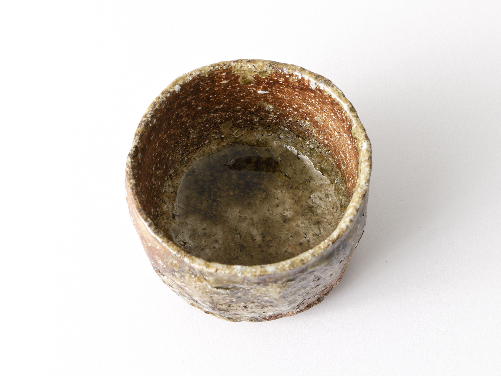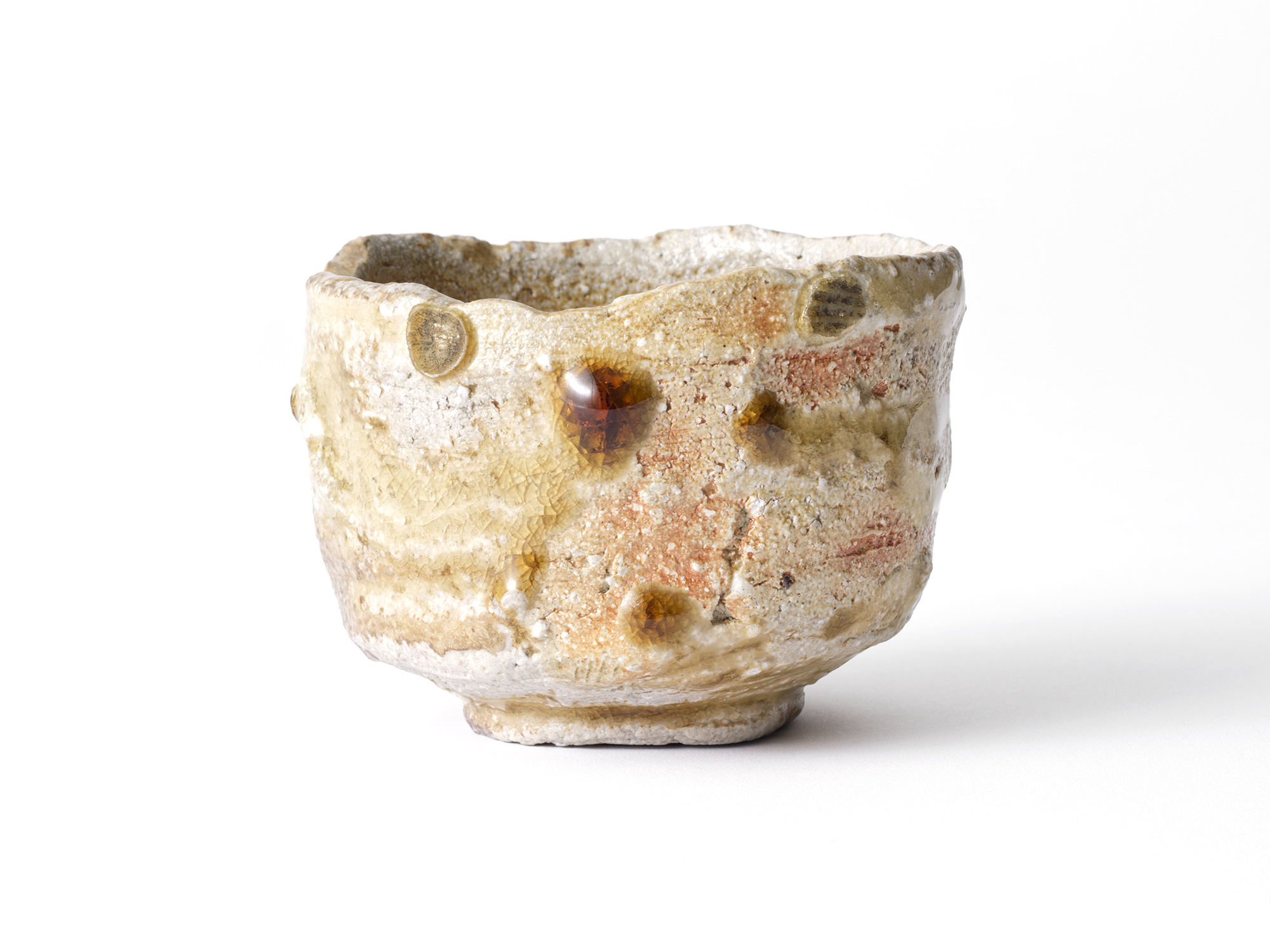 迫 能弘は、窯も生活の場も信楽の自然の中にあり、植物や動物の住処を少し分けて貰って、私の生活があるという。 《信楽茶碗》は左右からビードロが流れて、雪解けと共にでる蕗の薹を見るようで、早春を感じる茶碗である。 作陶と向き合う時に、自然から受ける感銘が、心の奥の芯の部分になっていると迫は語る。