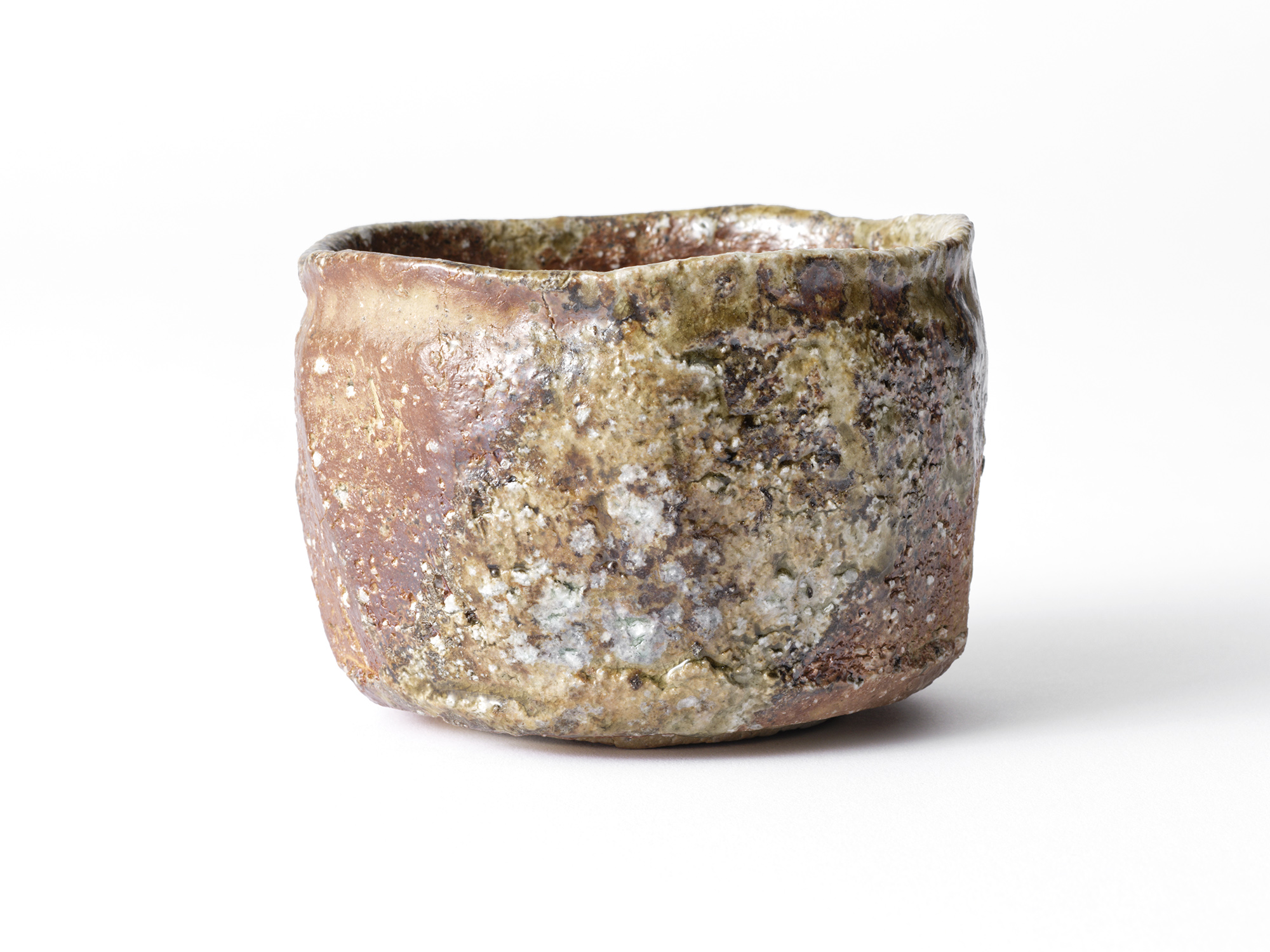 髙橋楽斎は古希を過ぎても、常に自分らしく在りたいと学ぶことを怠らない。 だから、彼の作品には過剰な表現が一切ない。 この《信楽茶碗》は、そんな楽斎の人生を物語っている。 茶碗の景色は、焼成中に窯の上にあった蹲(うずくまる)が転げ落ちて、茶碗と重なり偶然生まれたもので、側面の箆(へら)削りも程よく、なんとも気持ちの良い茶碗である。