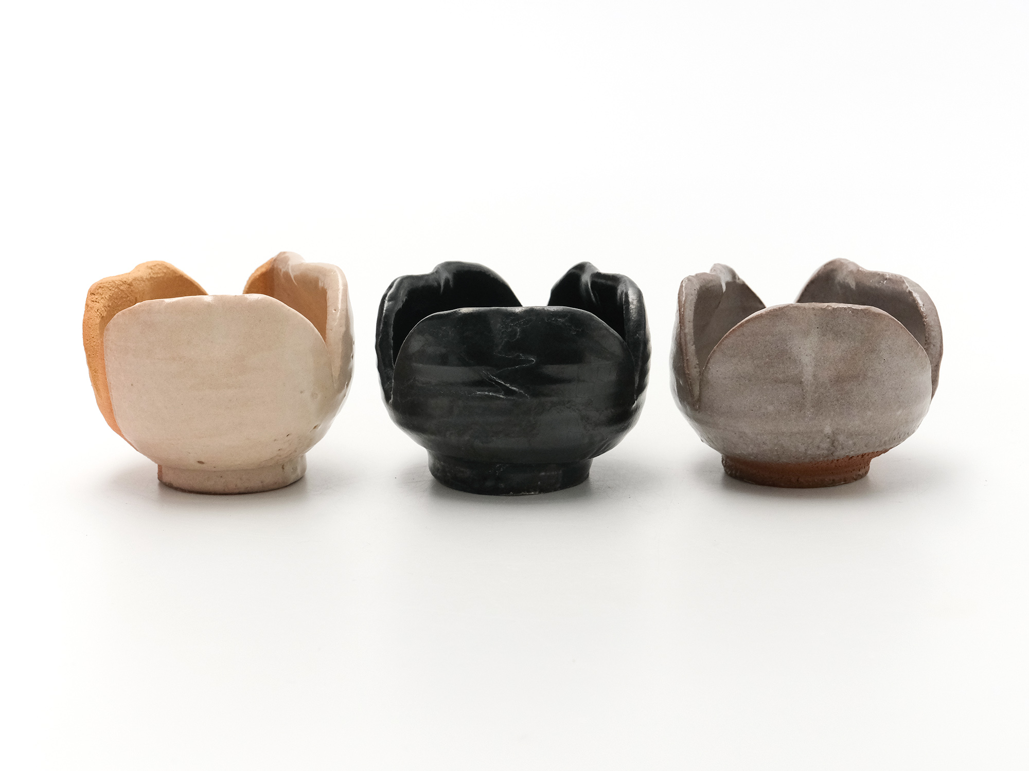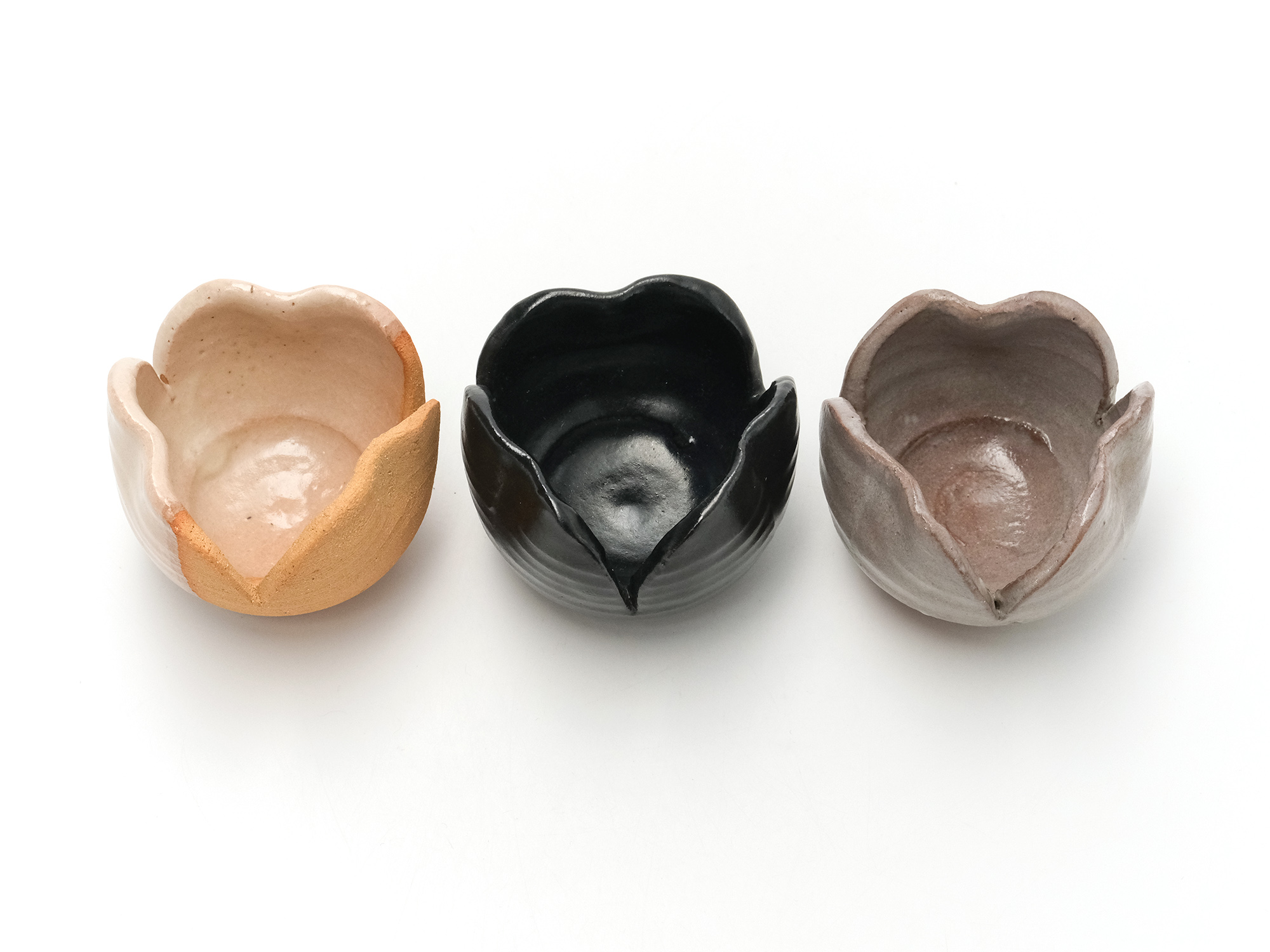| 作品名 | [左] かけ分け 割山椒 [中] 黒釉 割山椒 [右] 割山椒 小 |