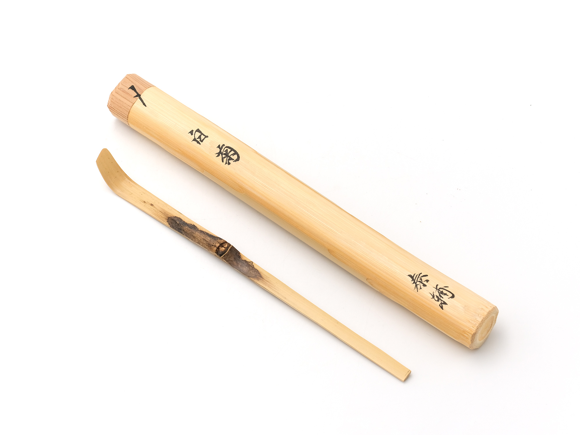 | 寸法 | 茶杓:W 1.1 × D 1.9 × H 18.1 (㎝) 筒:W 2.6 × D 2.5 × H 21.0 (㎝) |