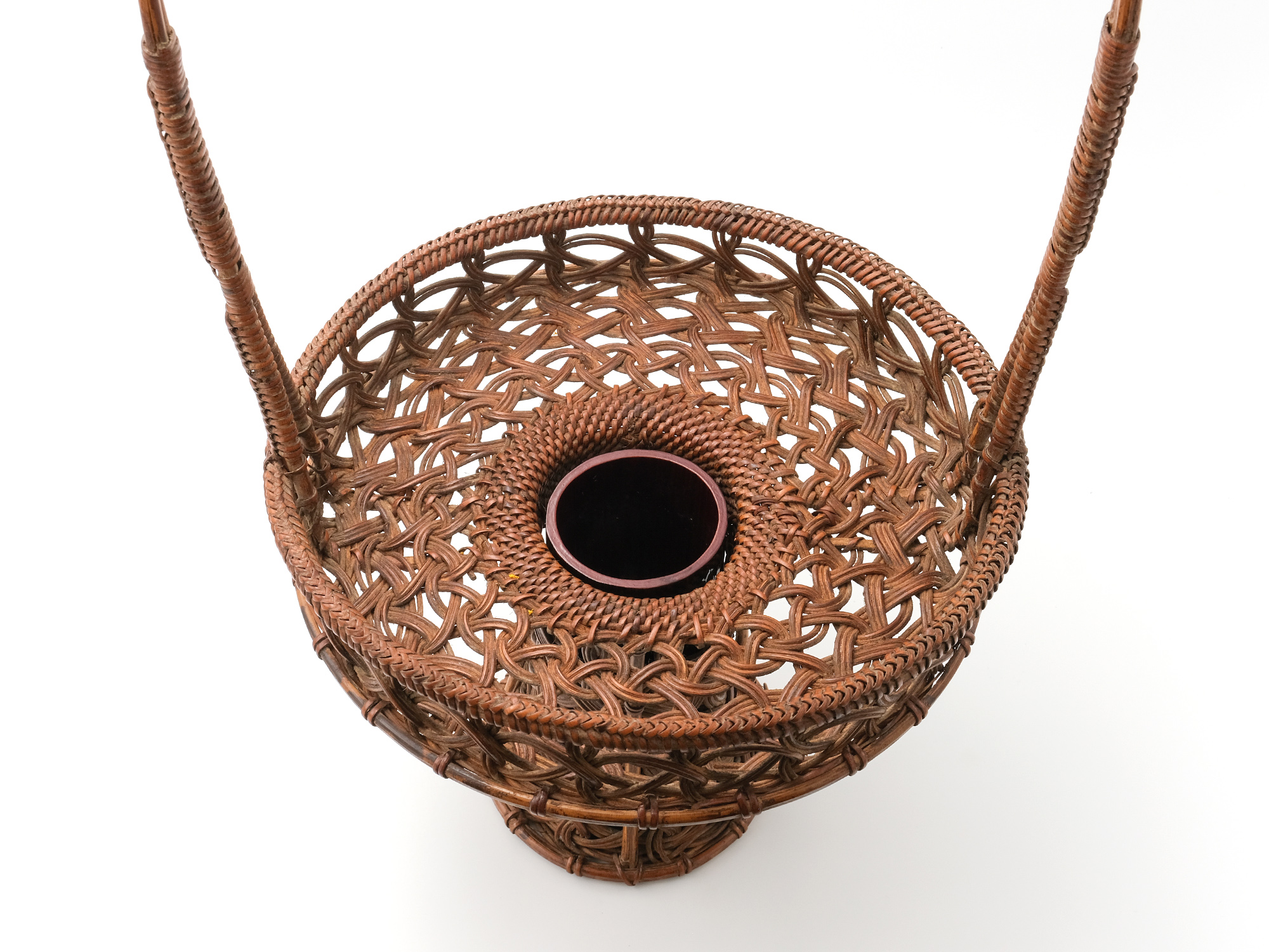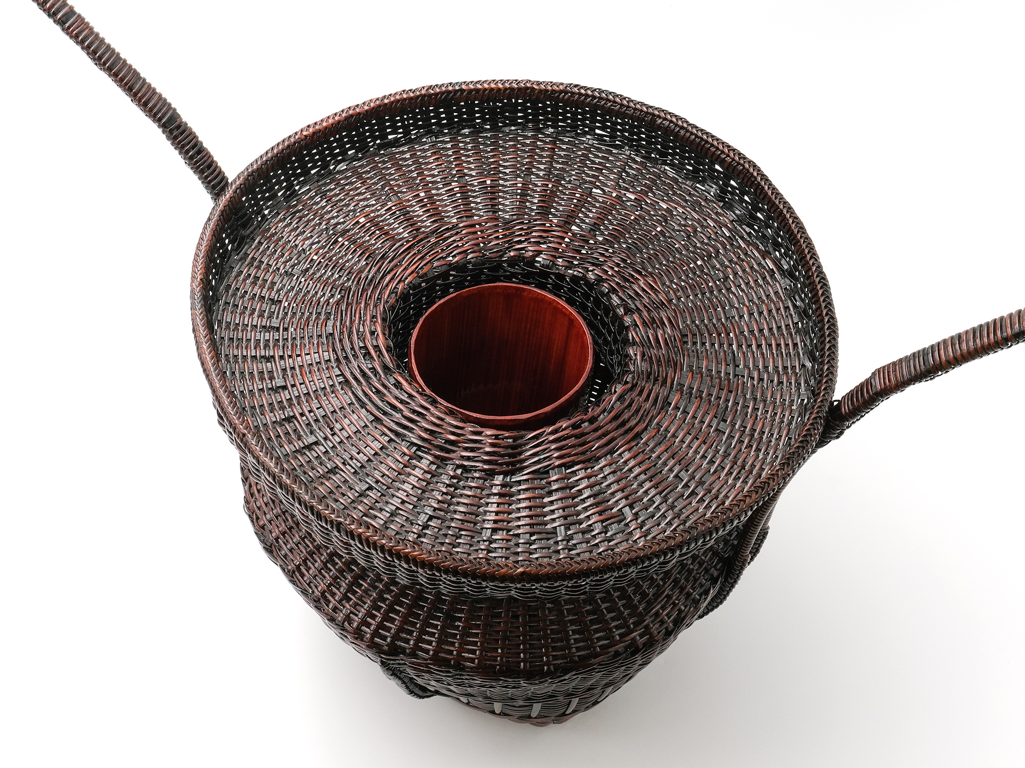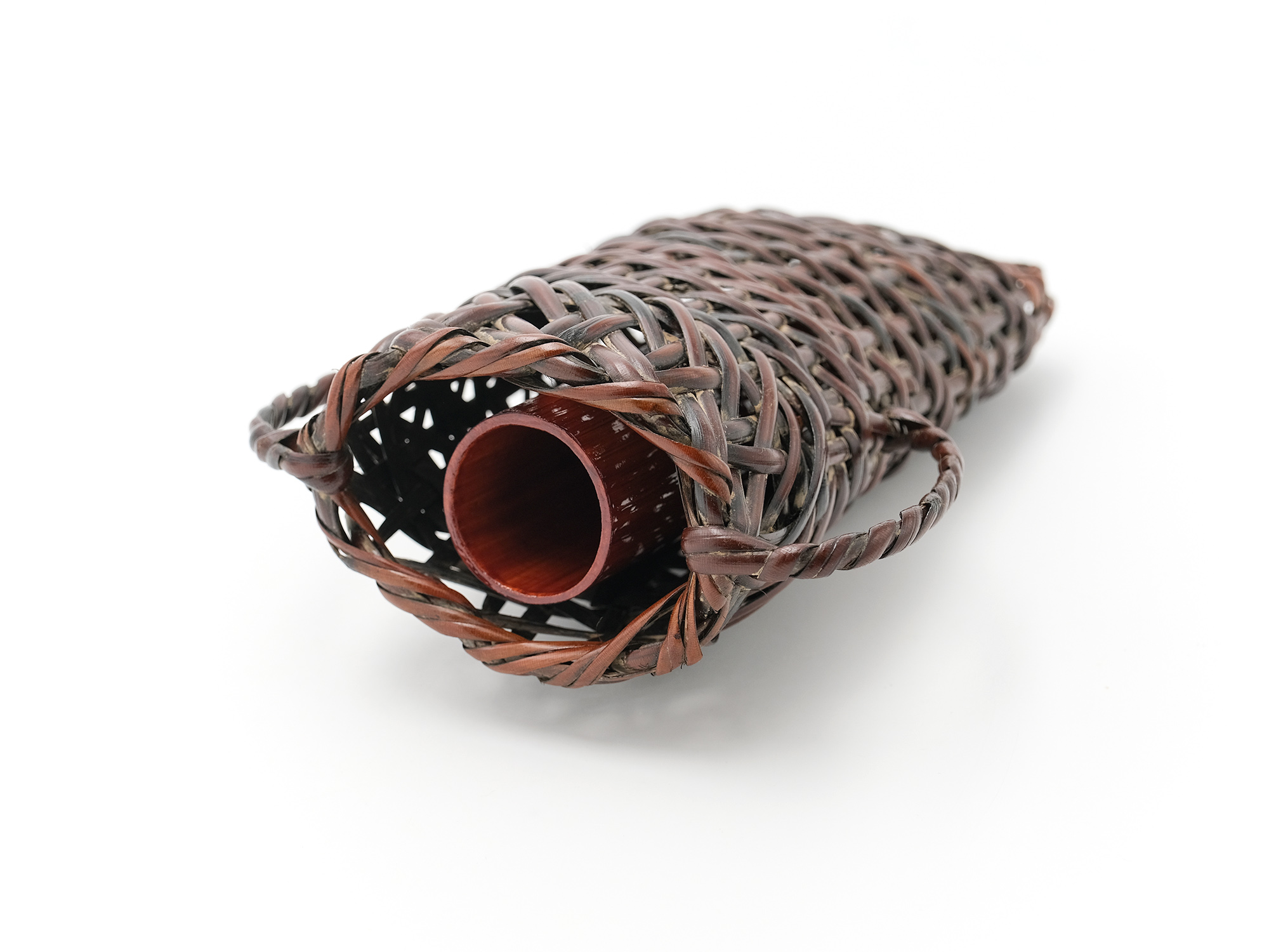 | 出品作品 Exhibited Works | 瓢阿:籠花入、竹花入、茶杓、茶籠、炭斗、菓子器、茶碗、水指、振出など 泰輔:籠花入、竹花入、茶杓、烏府(煎茶炭籠)、香合など |