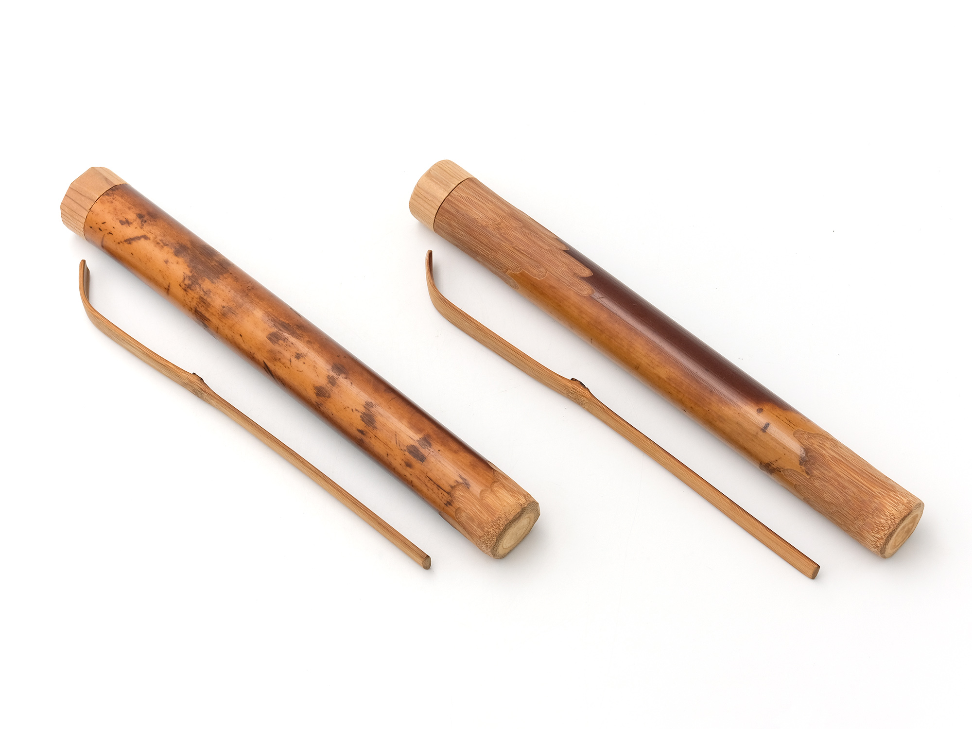 | 寸法 | [左] 茶杓:W 1.0 × D 1.8 × H 17.7 (㎝)筒:W 2.6 × D 2.5 × H 21.3 (㎝) [右] 茶杓:W 1.0 × D 2.0 × H 18.6 (㎝)筒:W 2.6 × D 2.3 × H 21.6 (㎝) |