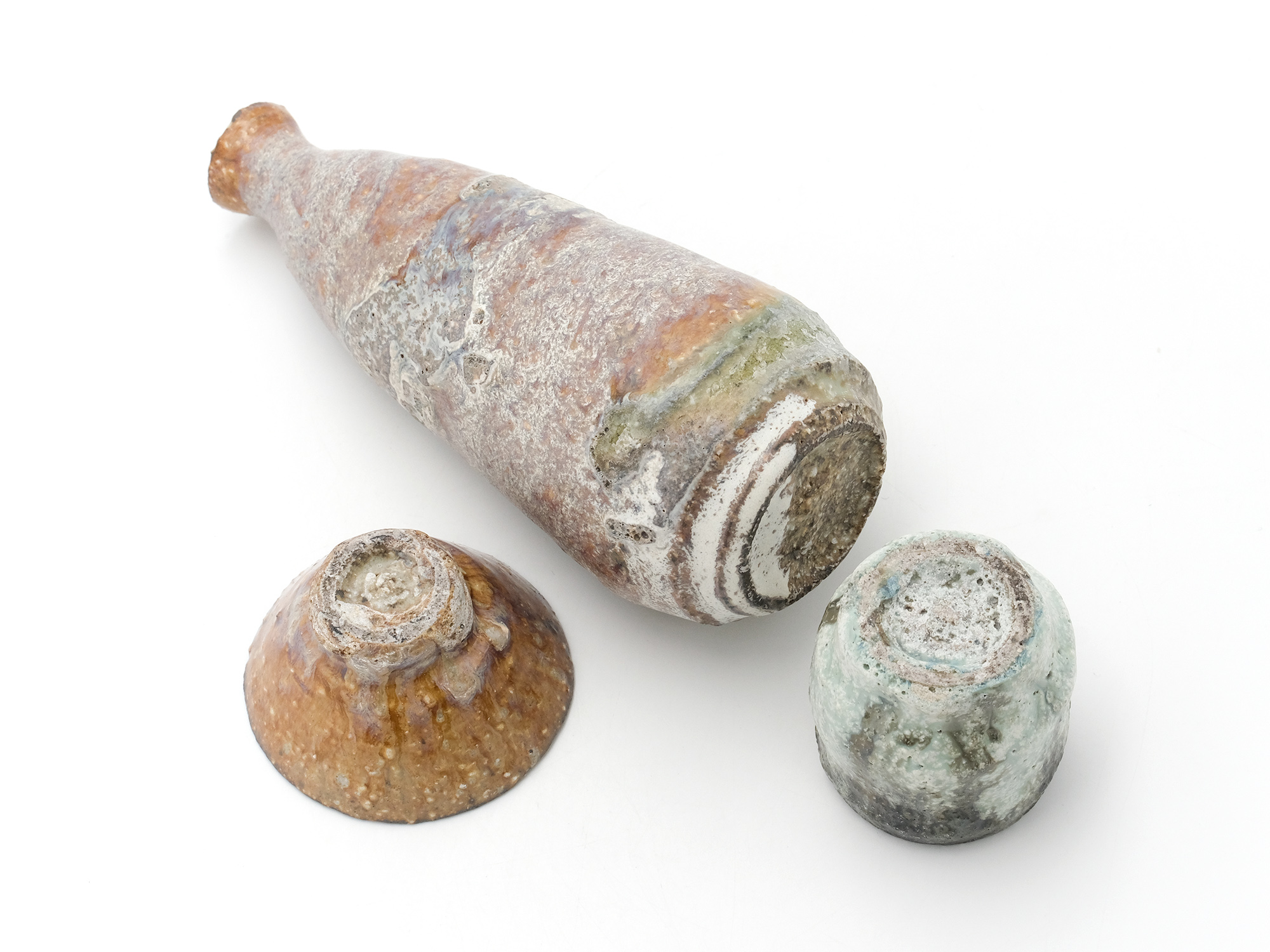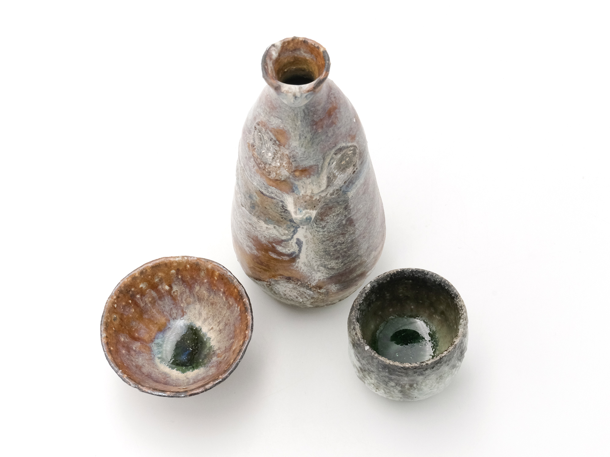 | 作品名 | [左] 白紫釉茶杯 [中] 白紫釉徳利 [右] 青白釉ぐい呑み |