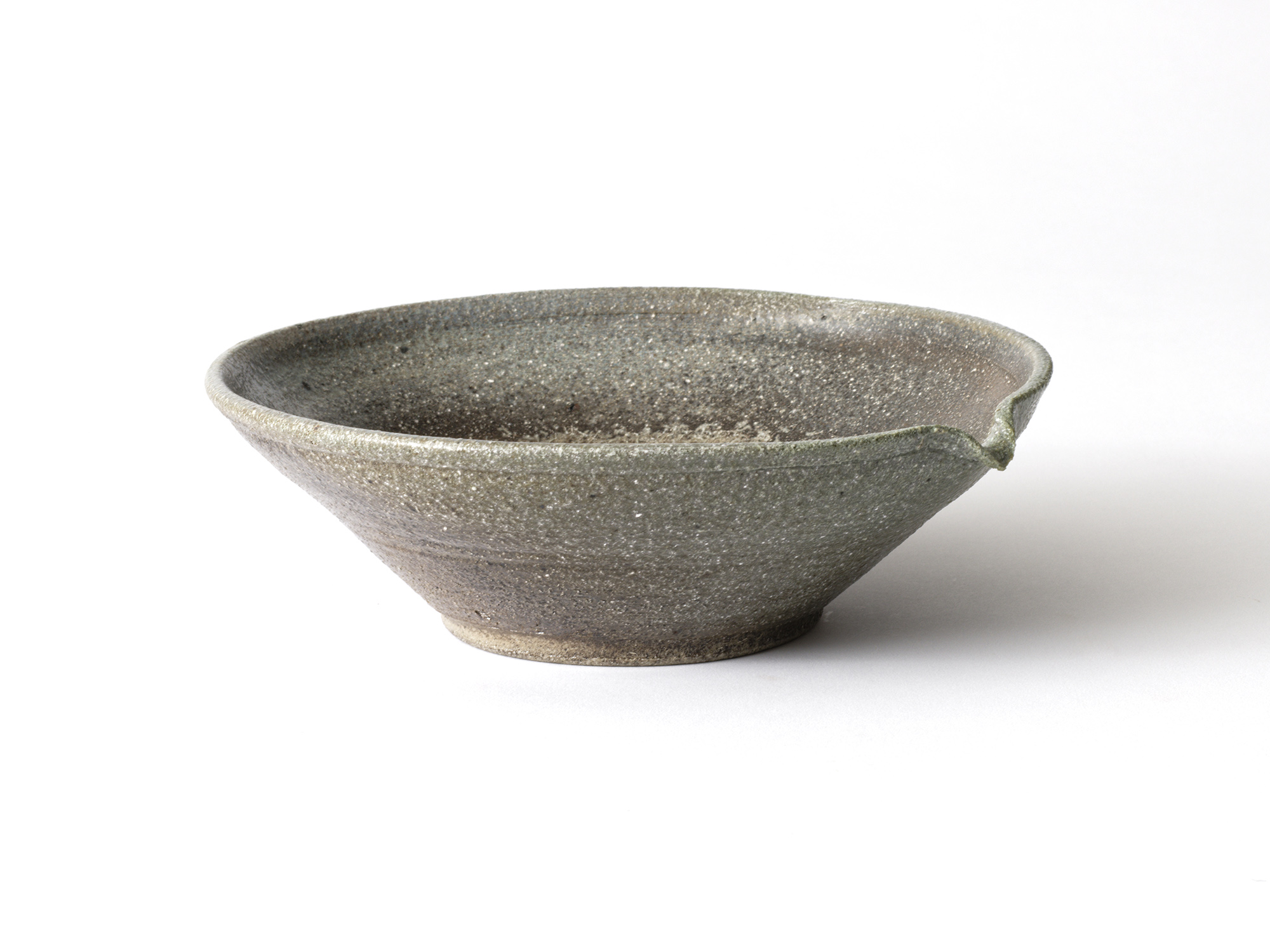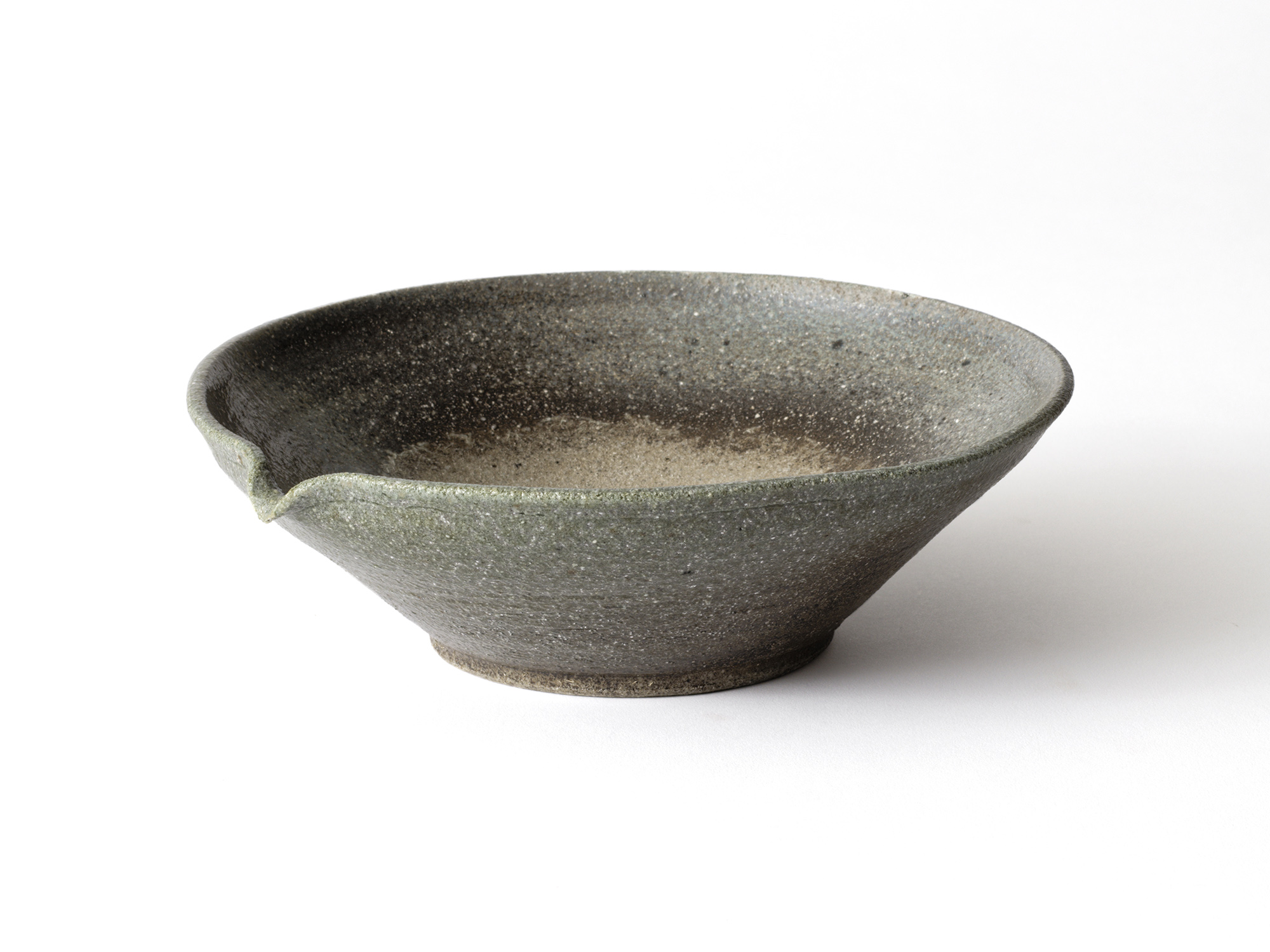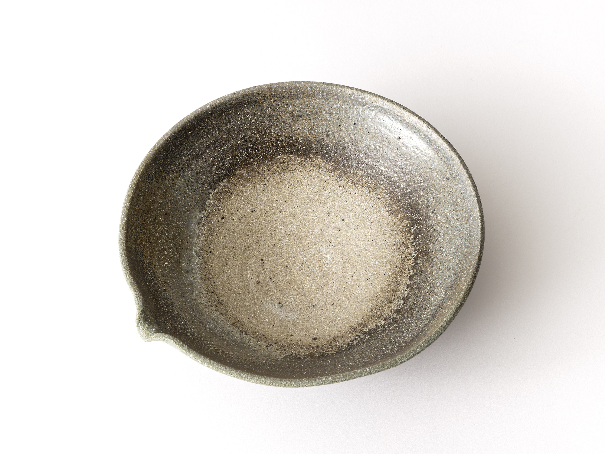 鯉江 明の《焼締片口鉢》は、作者の中世古窯への憧れをかたちに表現したもの。 我が家では氏の小鉢を毎日使っているが、よく焼締まっているせいか欠け一つない。この片口鉢は見込みに地肌を残し、その周辺が黒く焼き締まって、使えば使うほど良さが解るであろう。