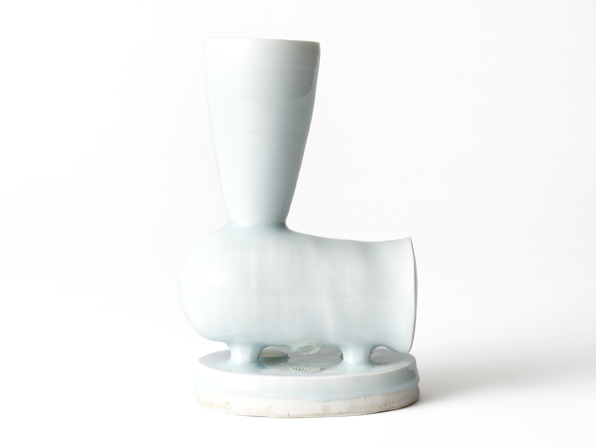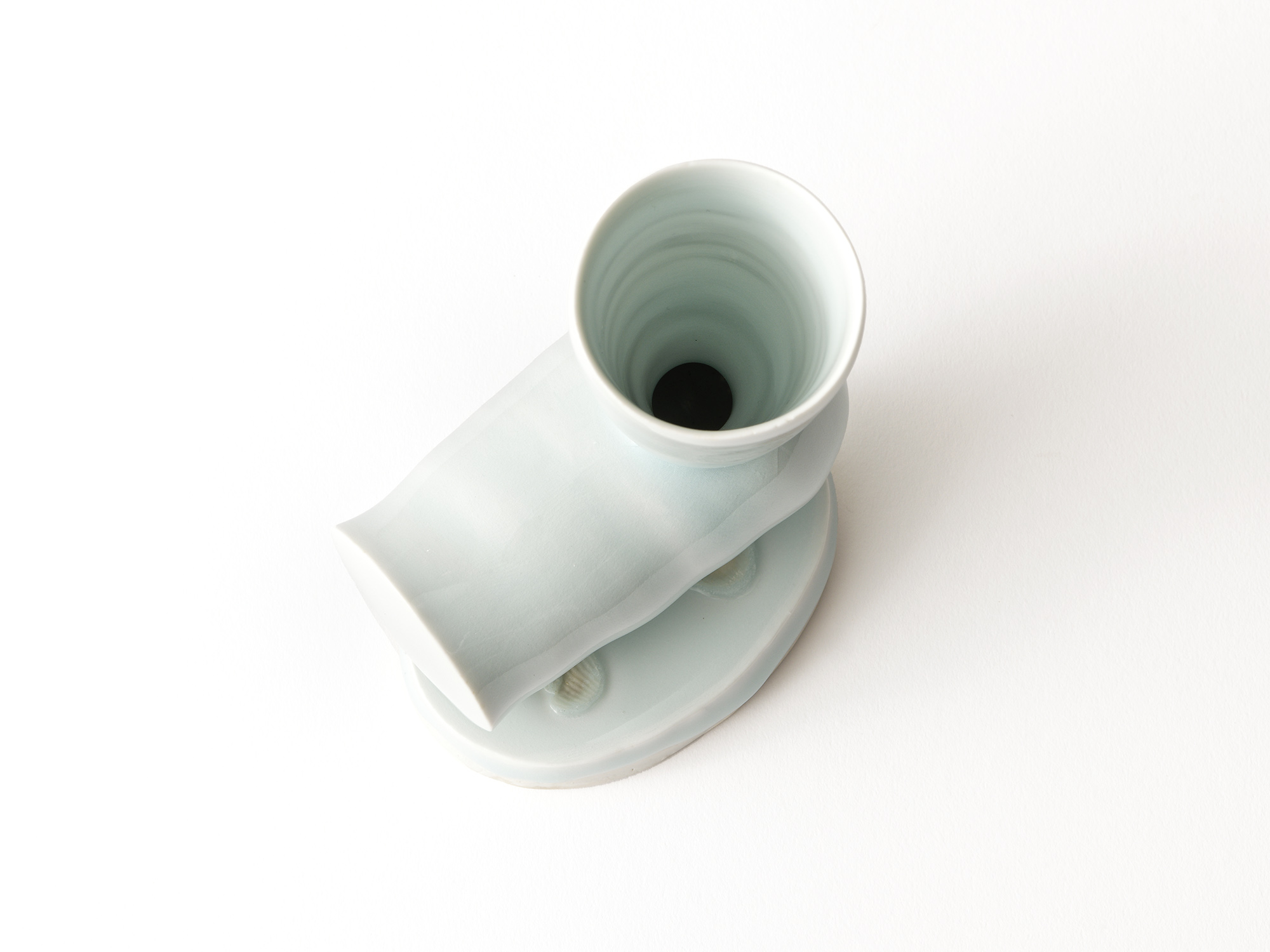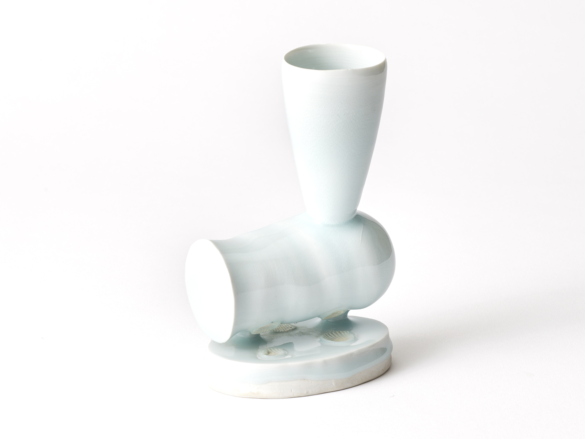 吉川正道は長年、青白磁の繊細なオブジェに取り組んできた。 地中海にマジョリカが生まれたように、「海」「水」をテーマに常滑で作品を制作している。 その原点は、生まれ故郷の茅ケ崎にあるという。《Zen−花俑》は、そんな吉川の思いから生まれた作品である。