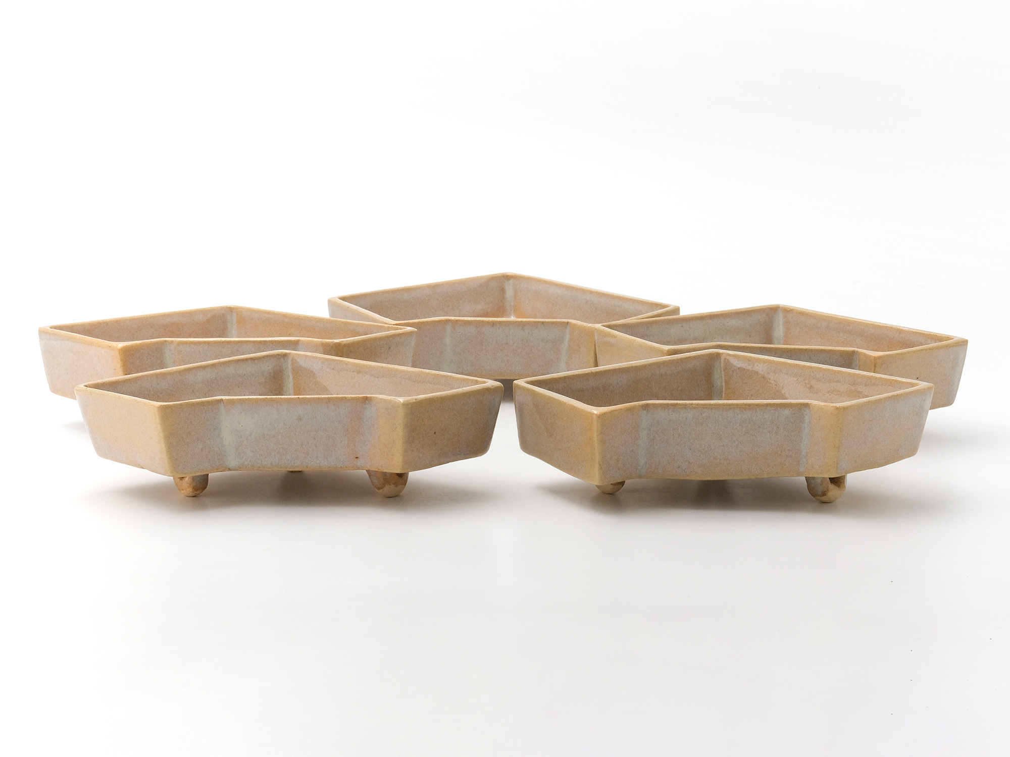 出品作品 Exhibited Works | 茶碗、水指、香合、花入、掛花入、壷、菓子器、食籠、ぐい呑、輪花盃、向付、汲出、湯呑、皿、鉢、四方鉢など |