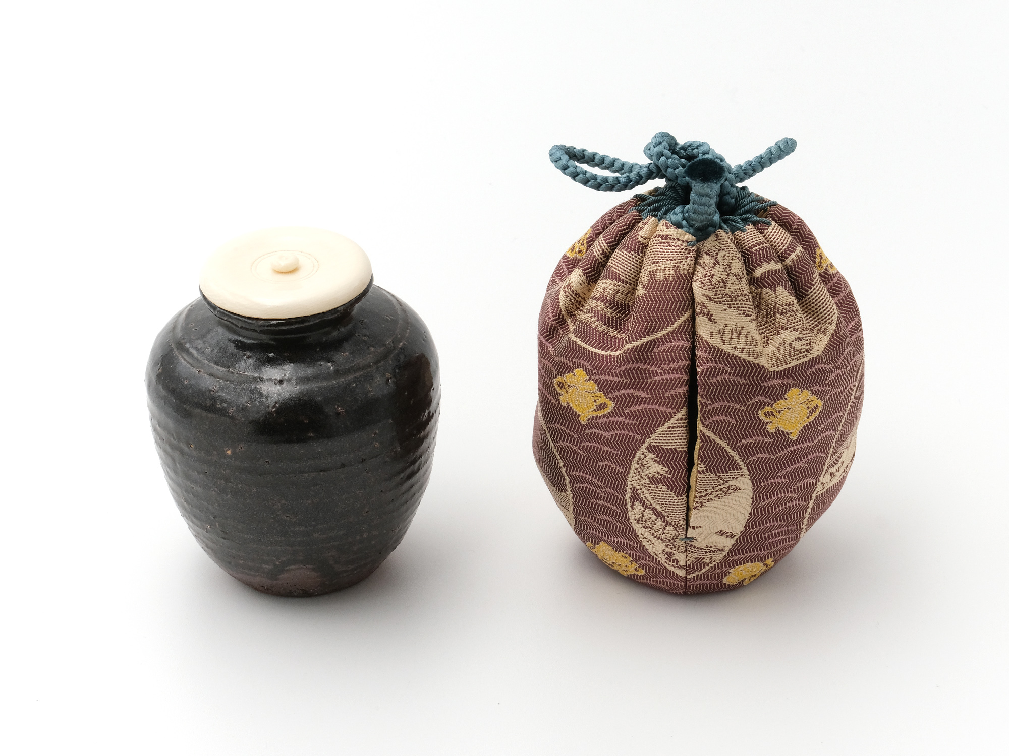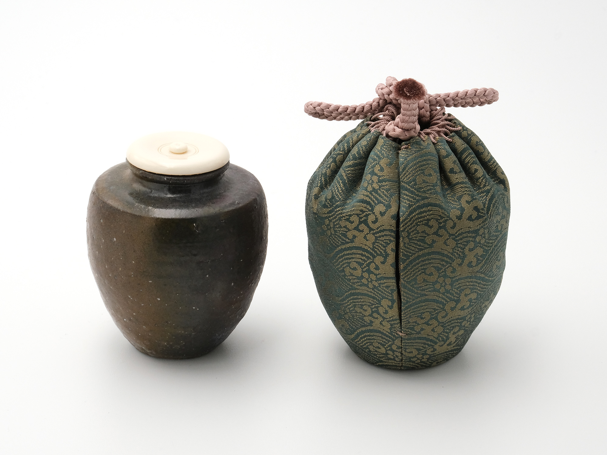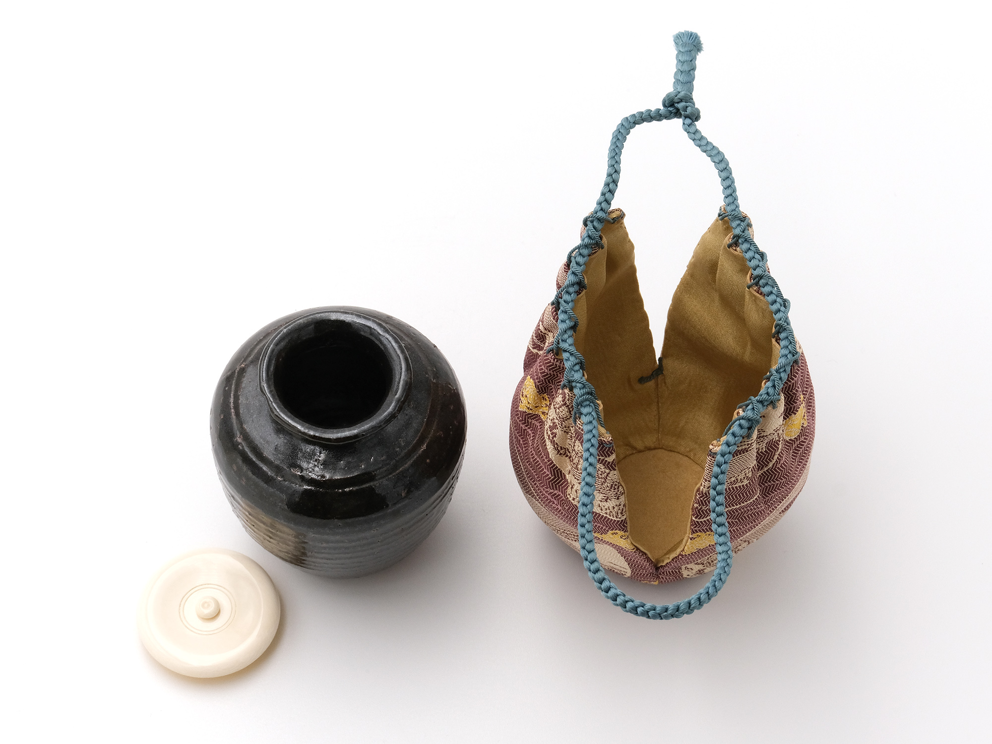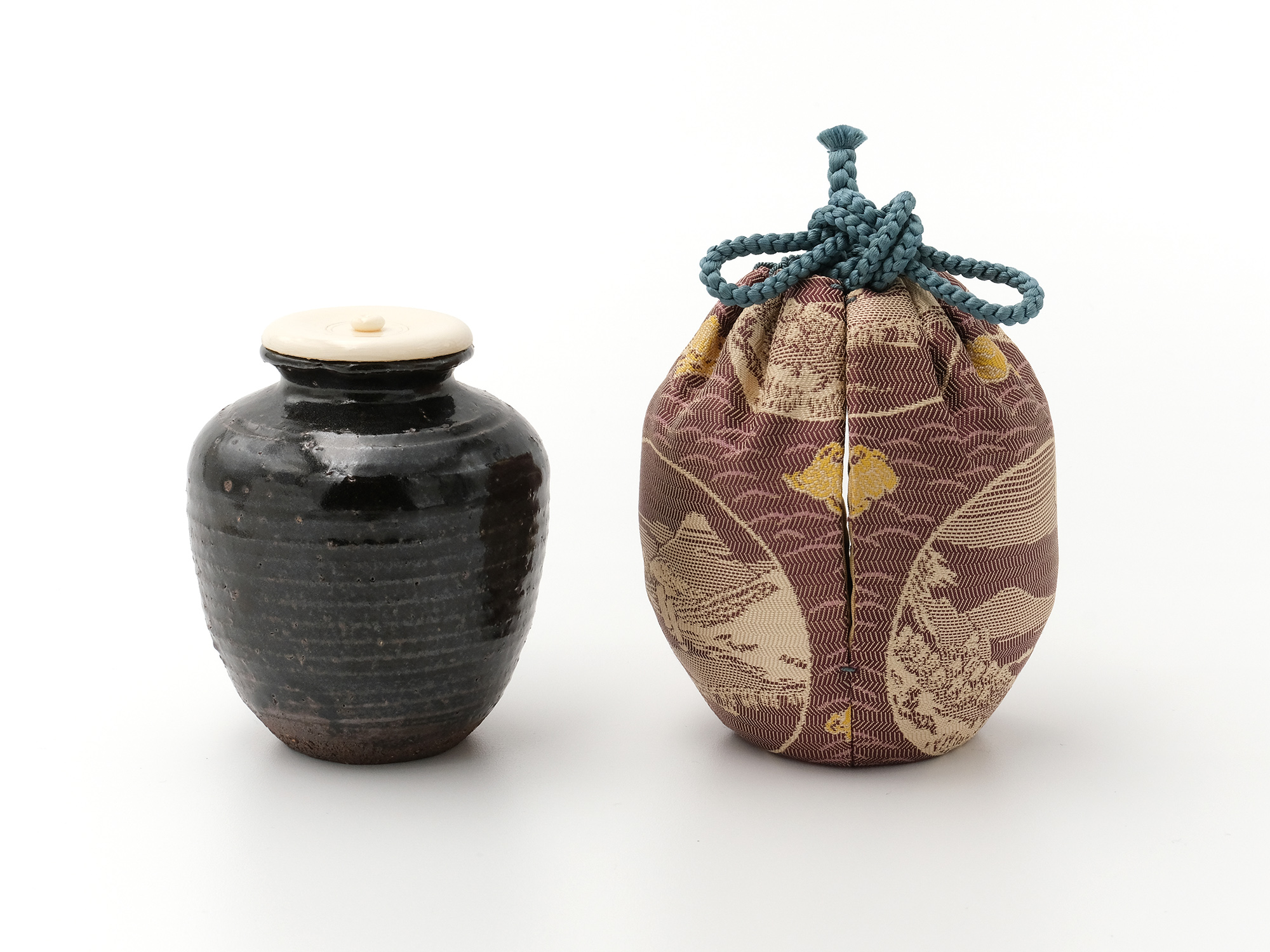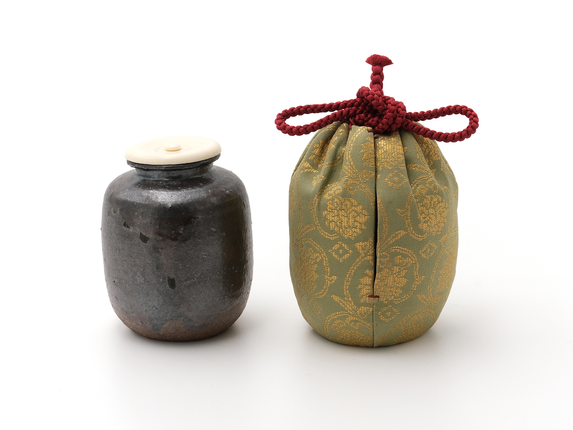 | 作品名 | 仕服仕立 青木牡丹金襴 鉄釉肩衝茶入 |