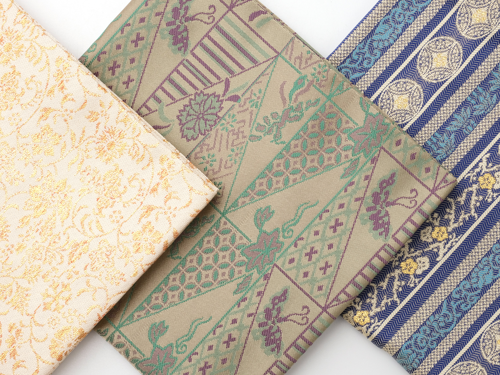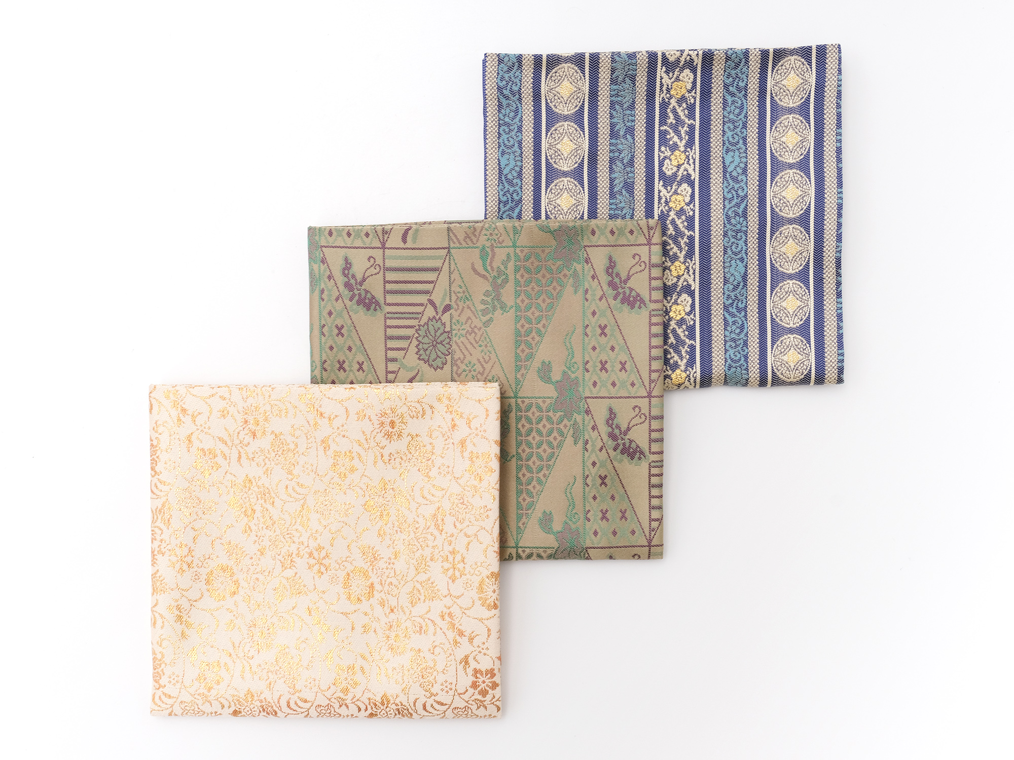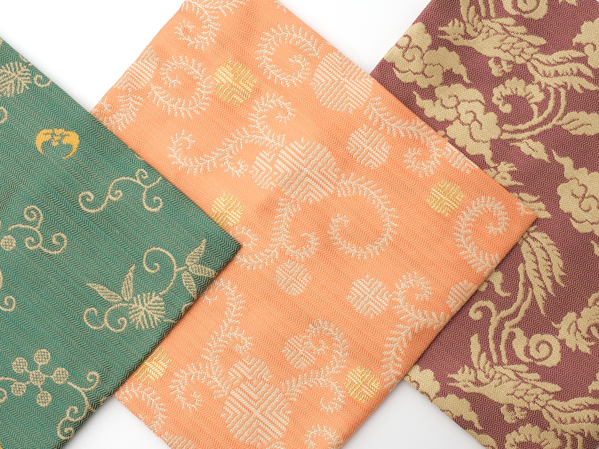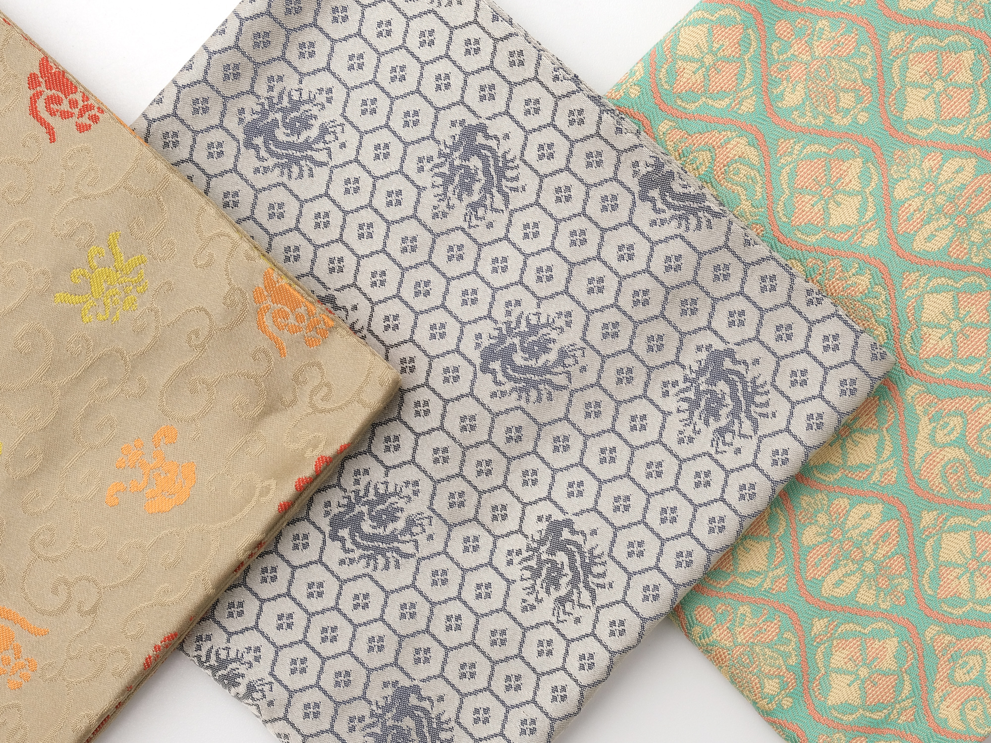 | 作品名 | [左] 出服紗 唐華唐草緞子 [中] 出服紗 亀甲龍文緞子【ご売約済】 [右] 出服紗 立涌草花文紹巴 |