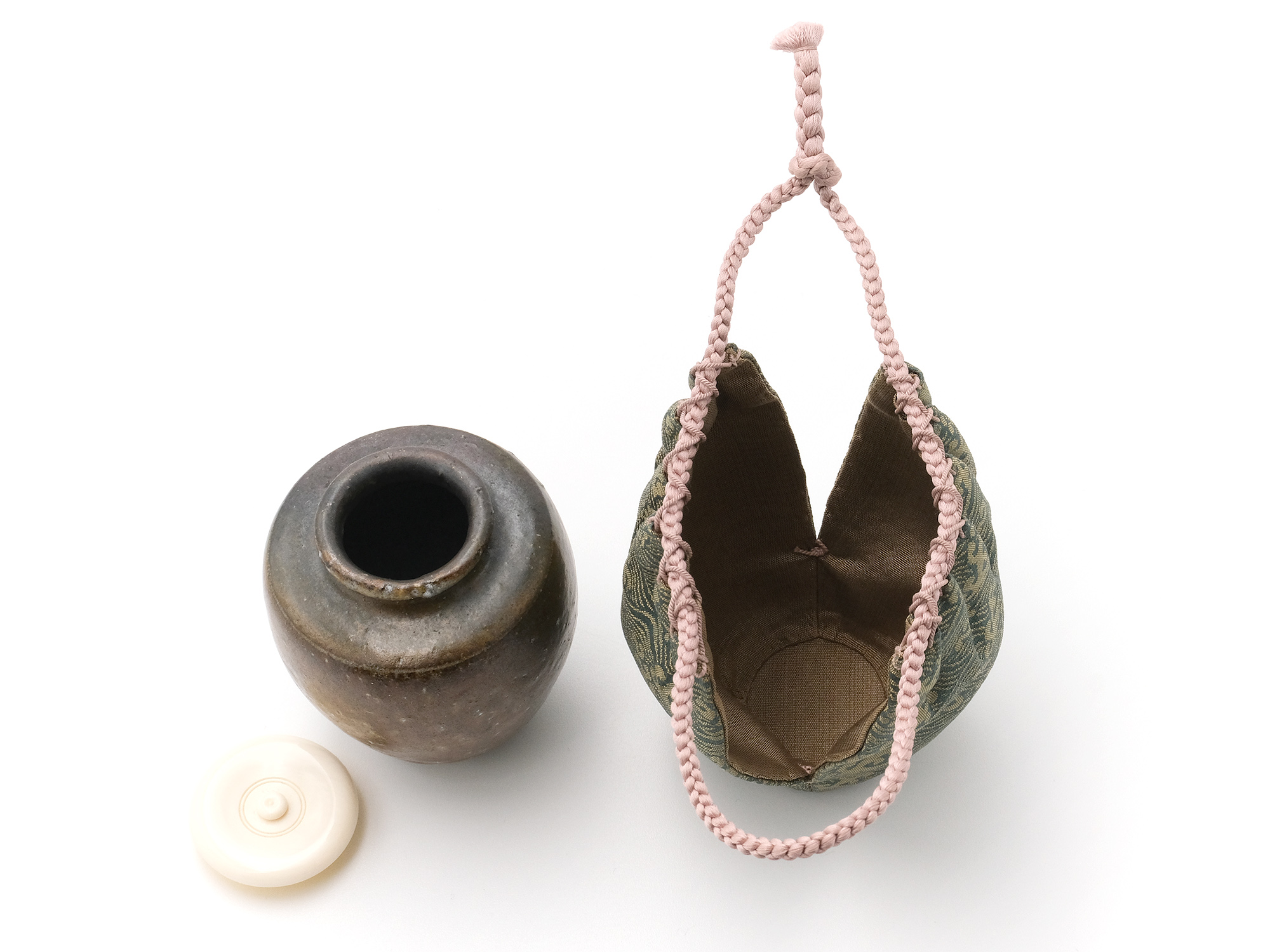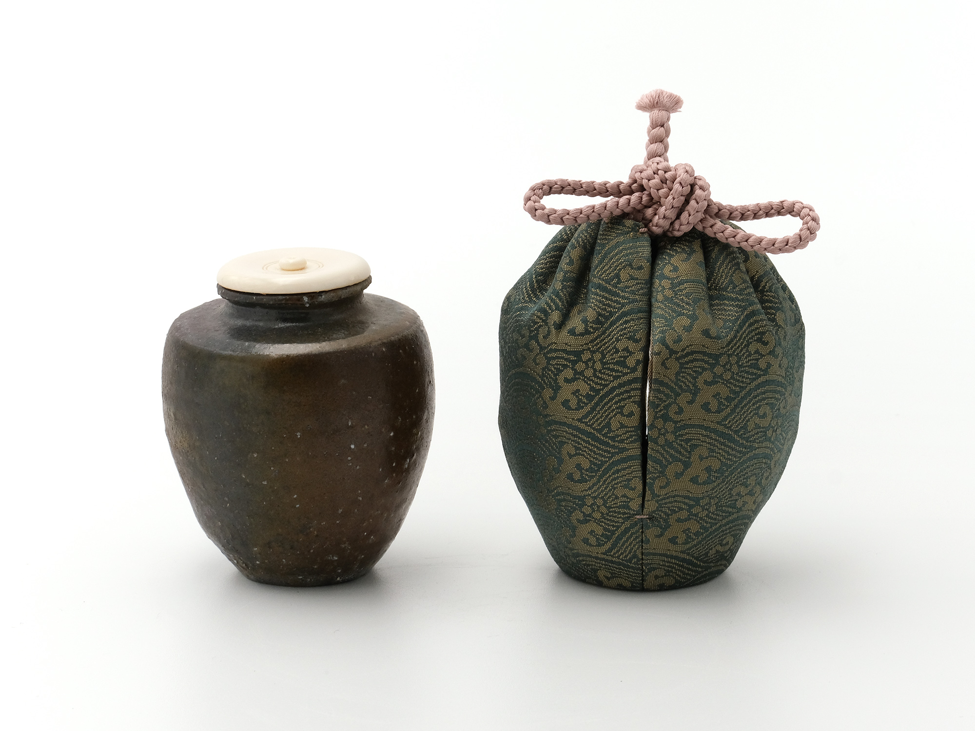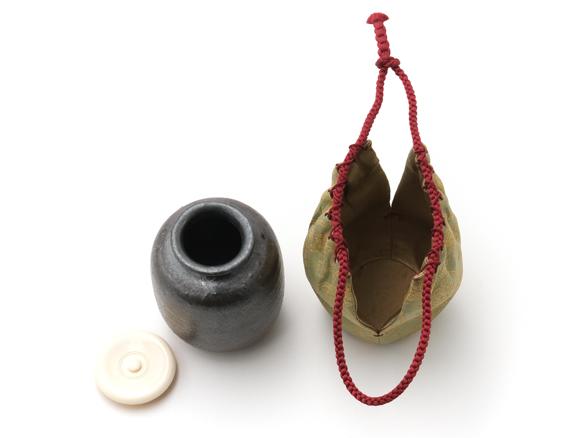 | 作品名 | 仕服仕立 万代屋緞子 鉄釉肩衝茶入 |
