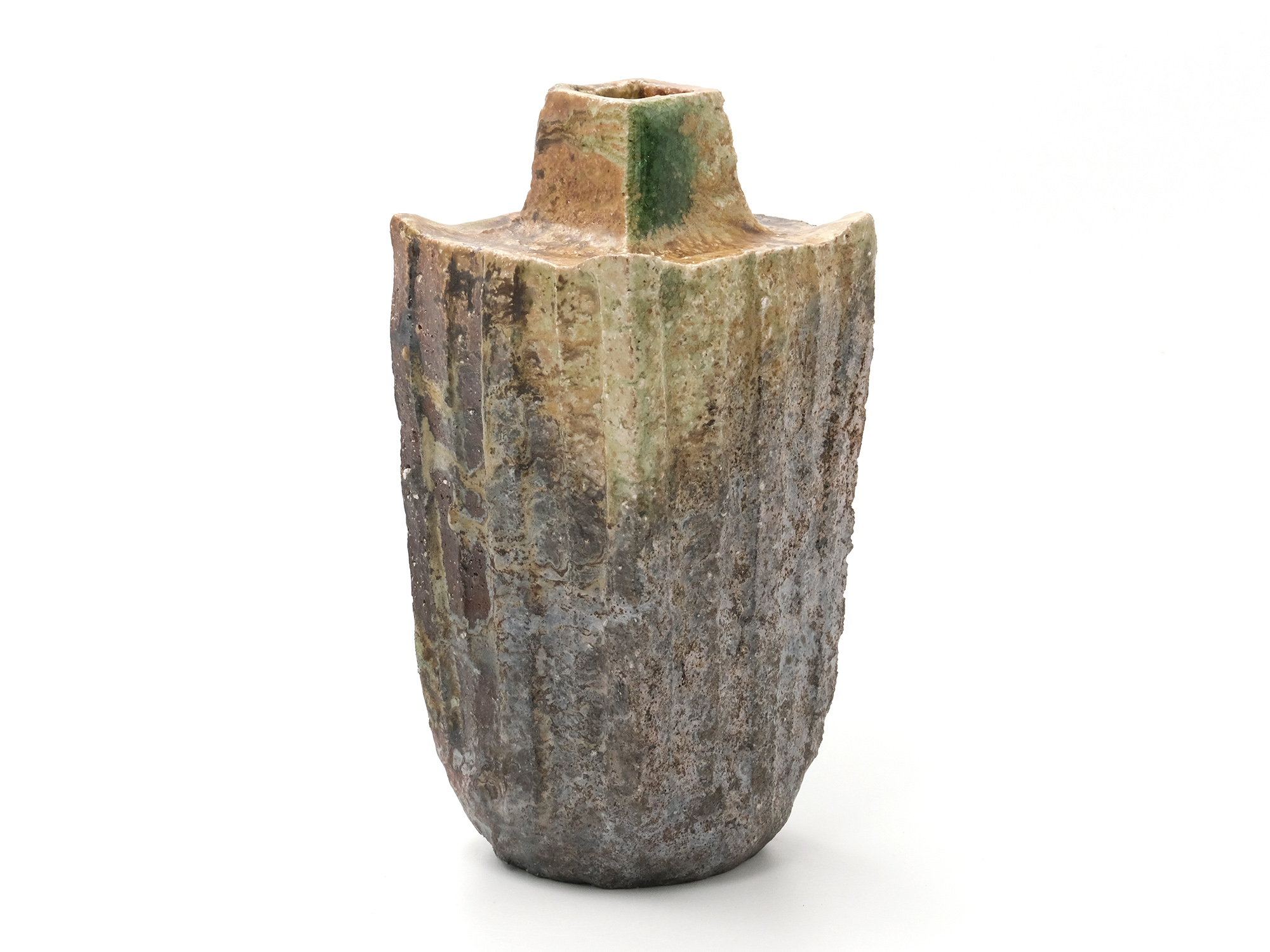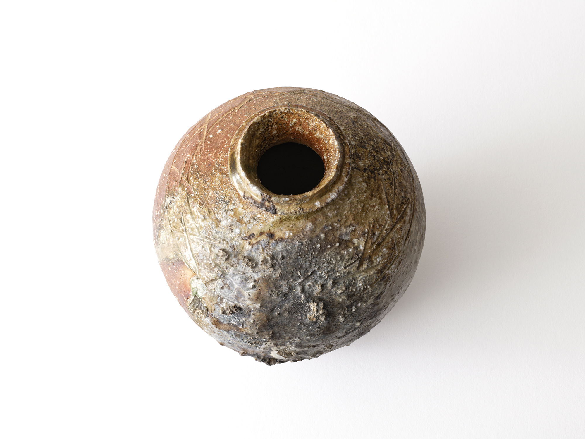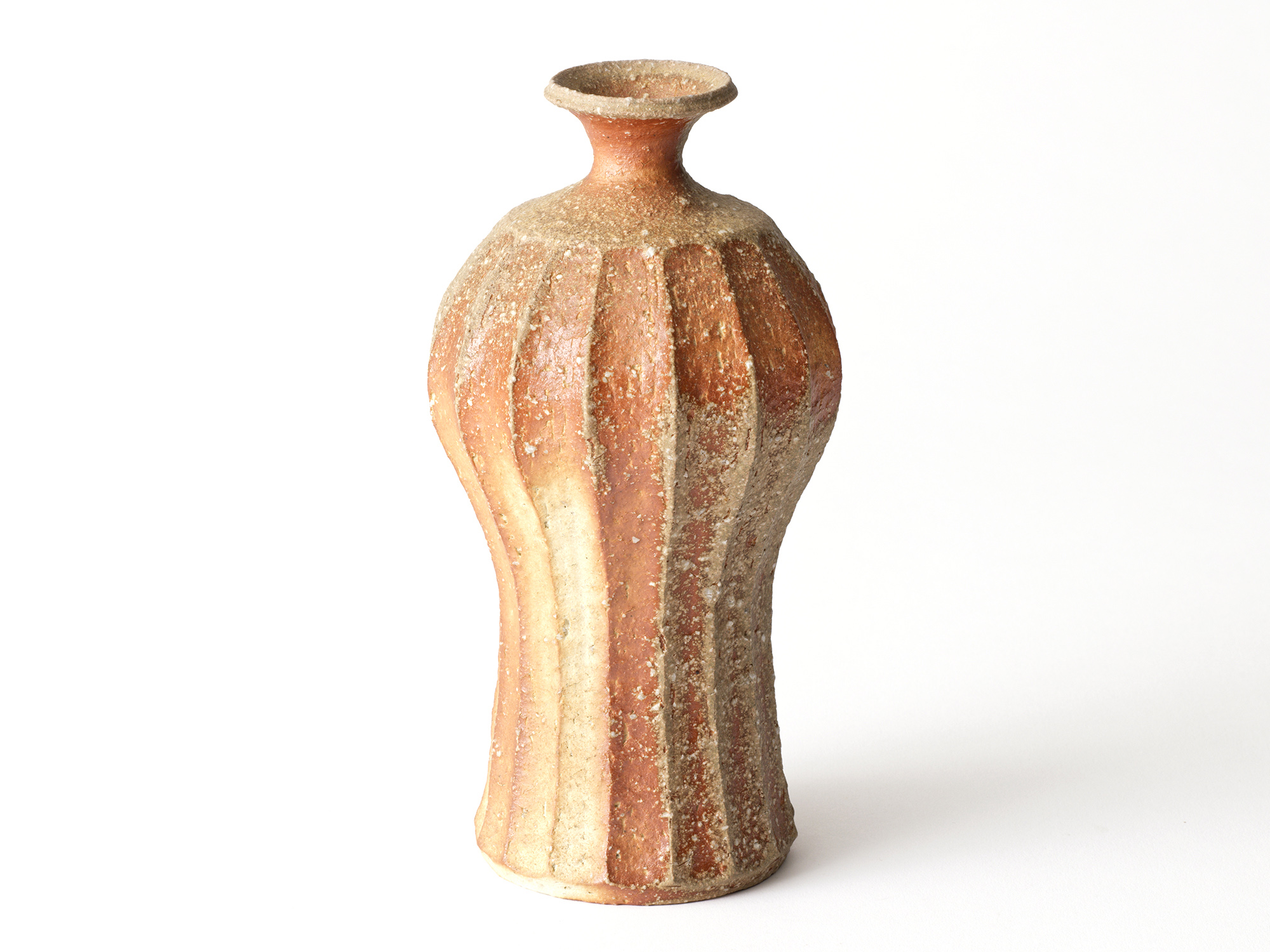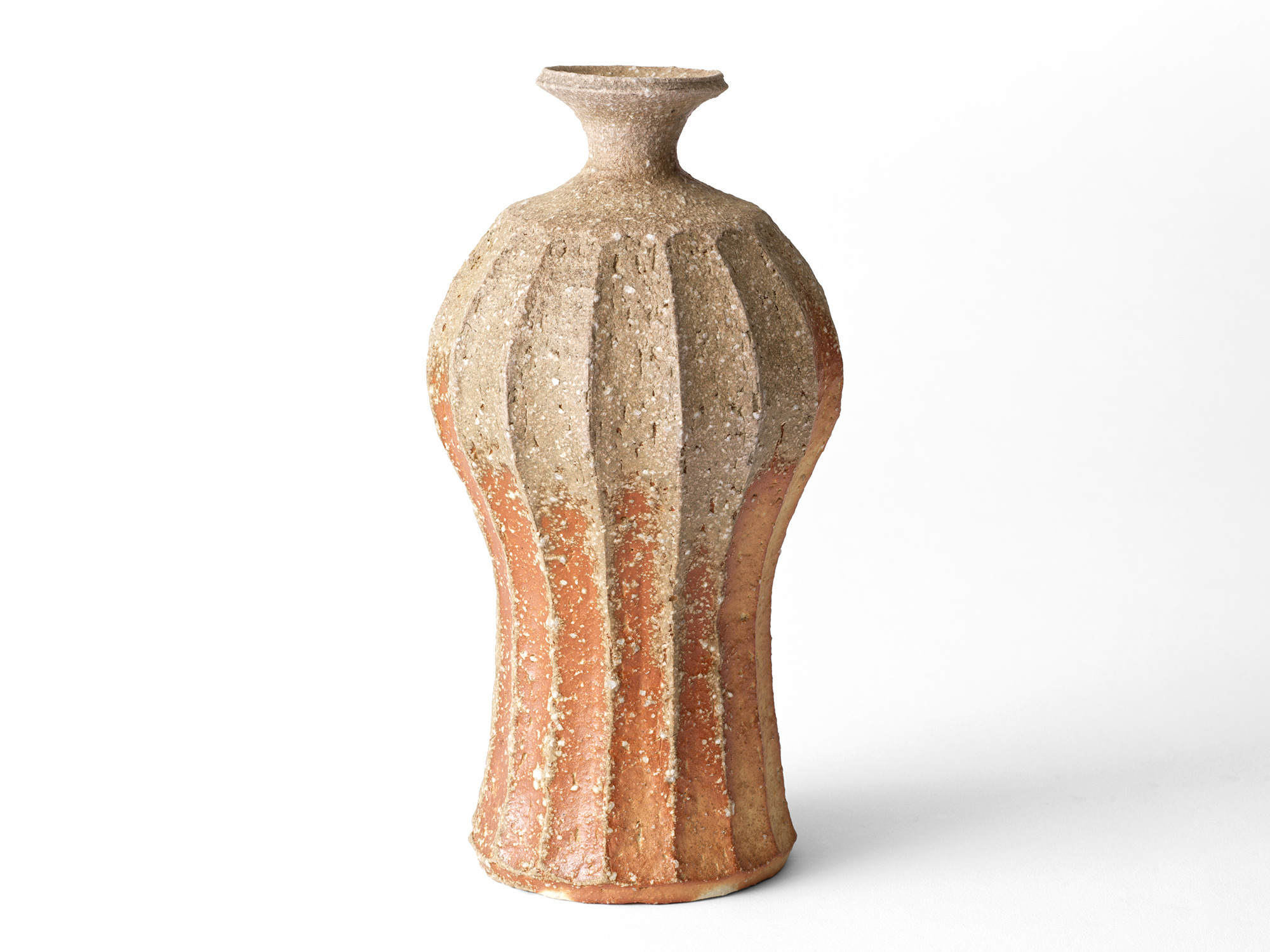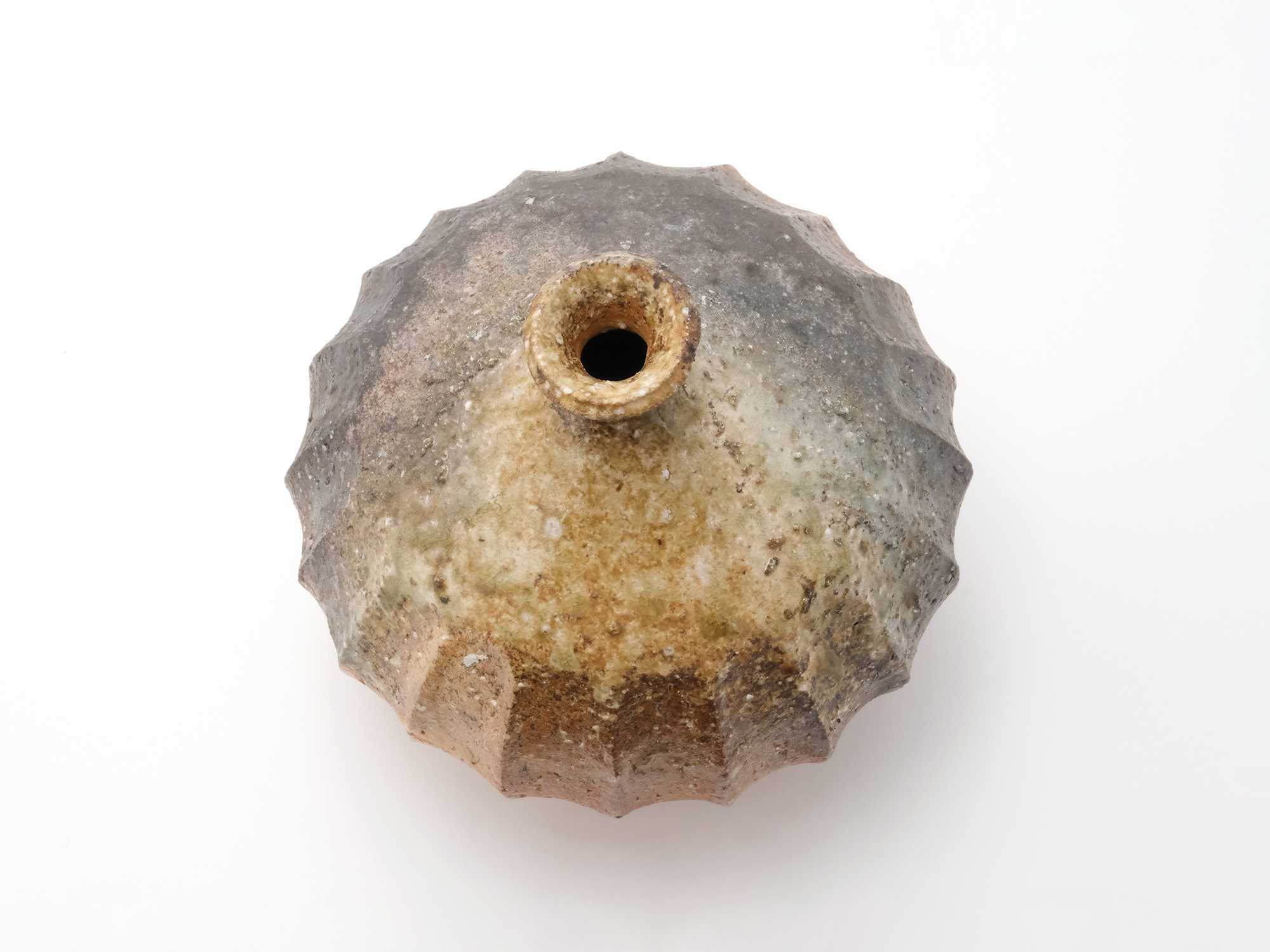 次女 美子の《茶碗》は灰被りと焦げが見られ、ふっくらとして温かい。《しのぎ花入》は上品な女性を眺めるようで、肩から裾にかけての美しい曲線が魅力的である。