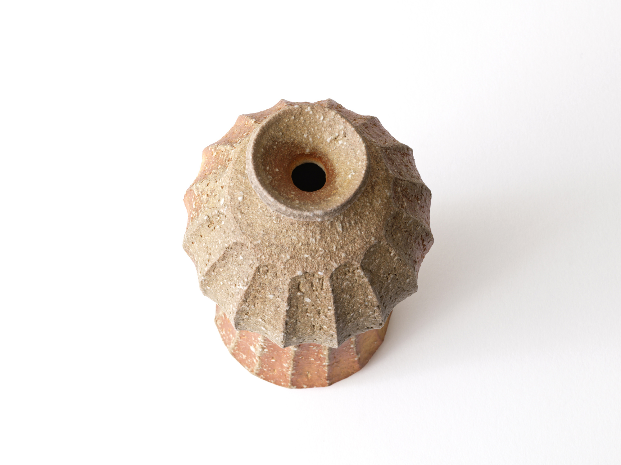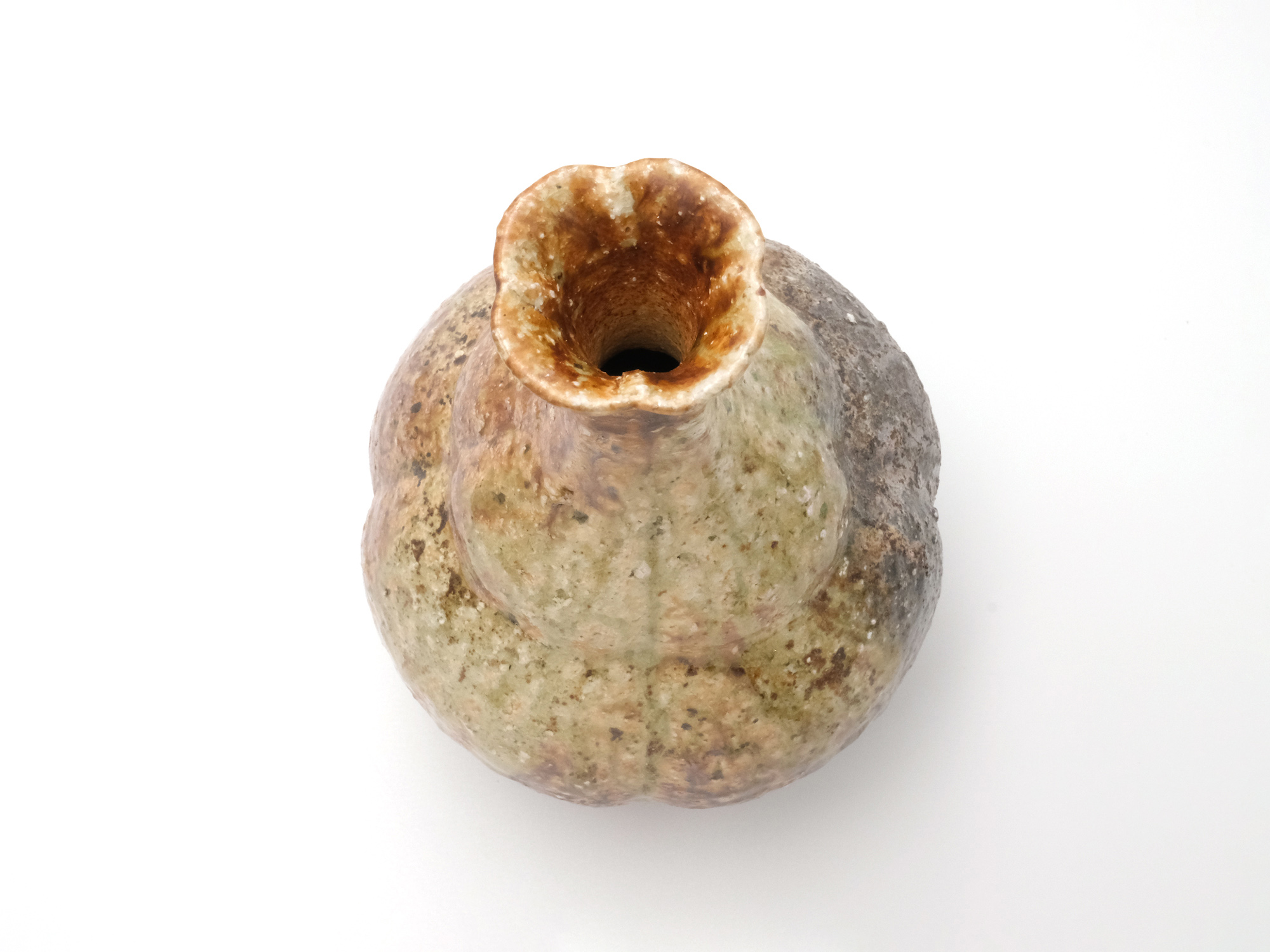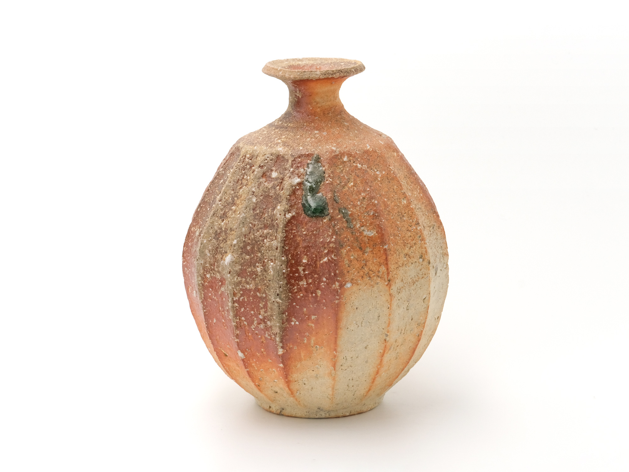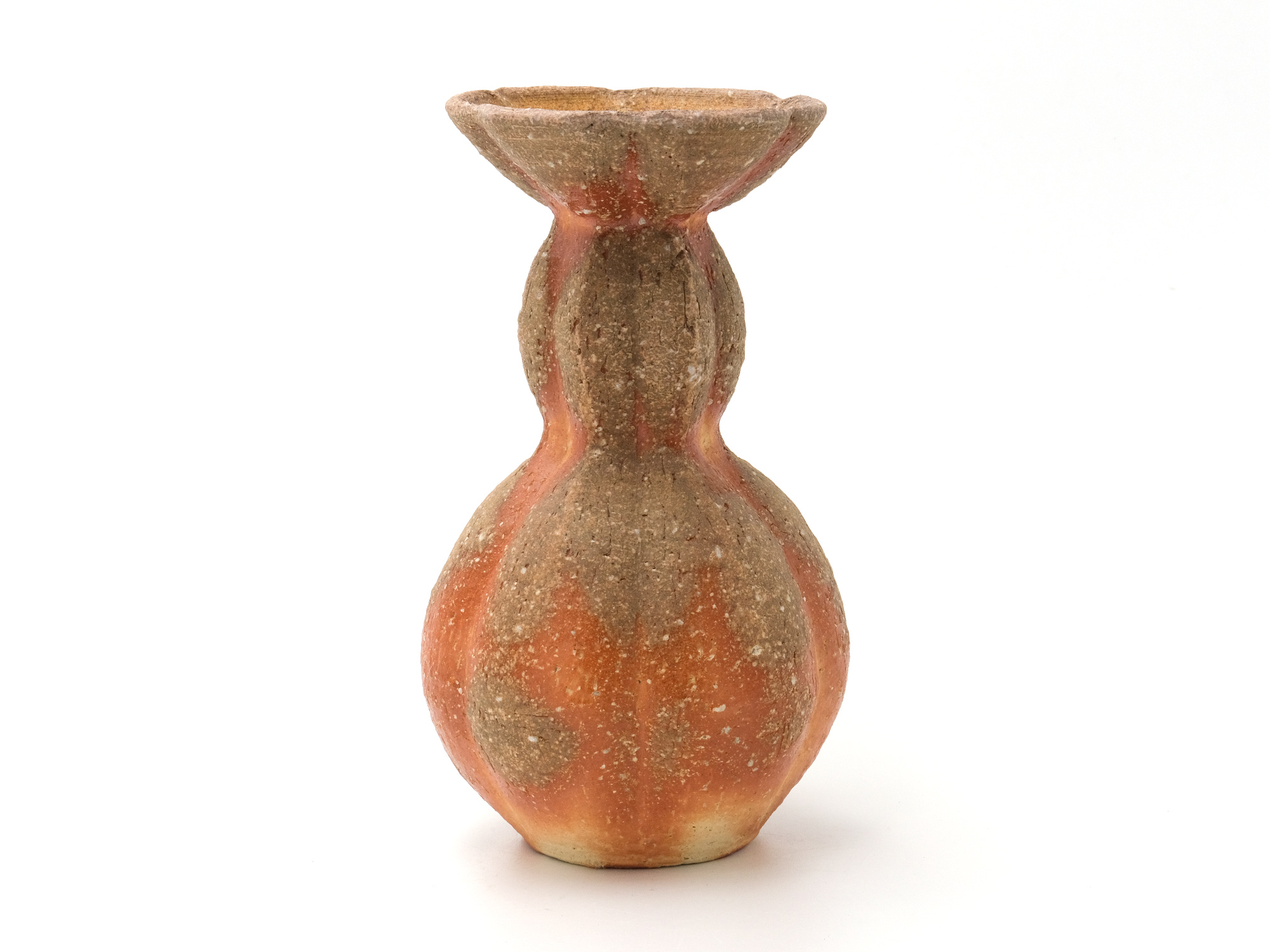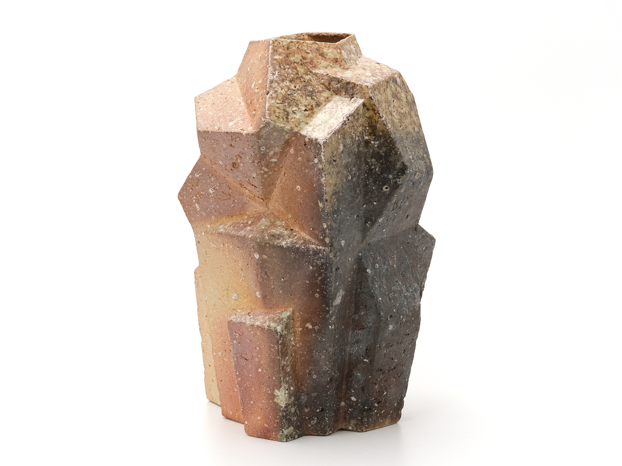 次女 美子の《茶碗》は灰被りと焦げが見られ、ふっくらとして温かい。《しのぎ花入》は上品な女性を眺めるようで、肩から裾にかけての美しい曲線が魅力的である。