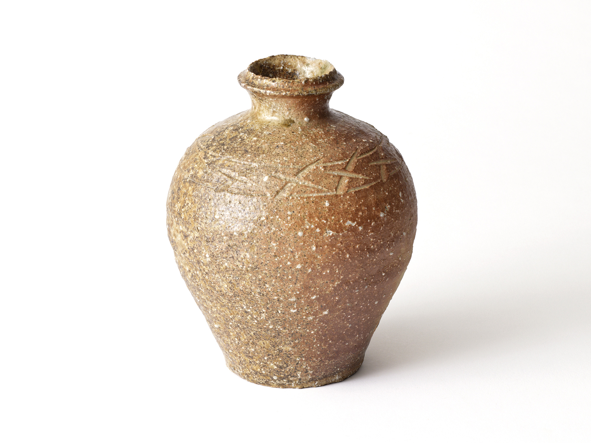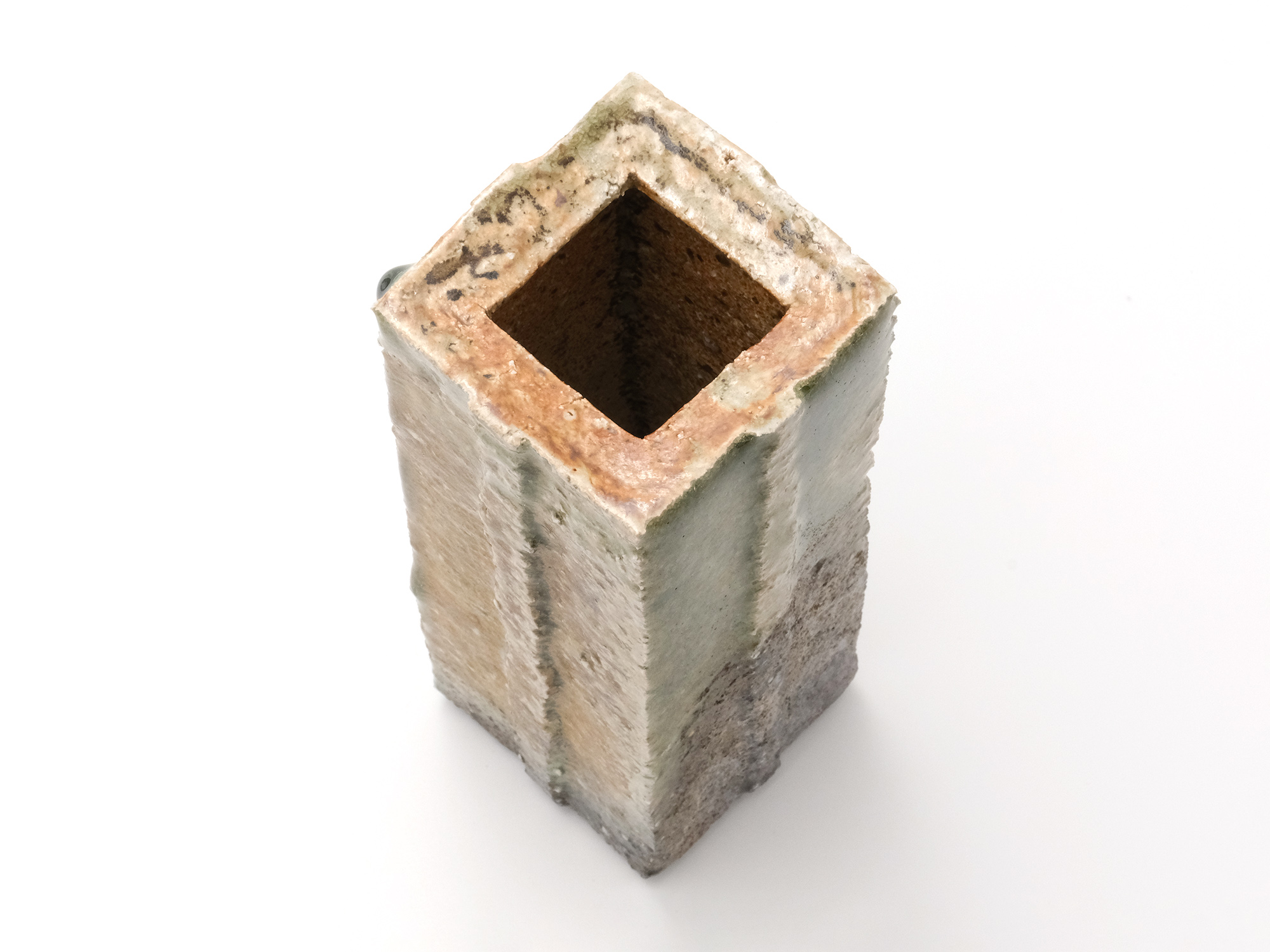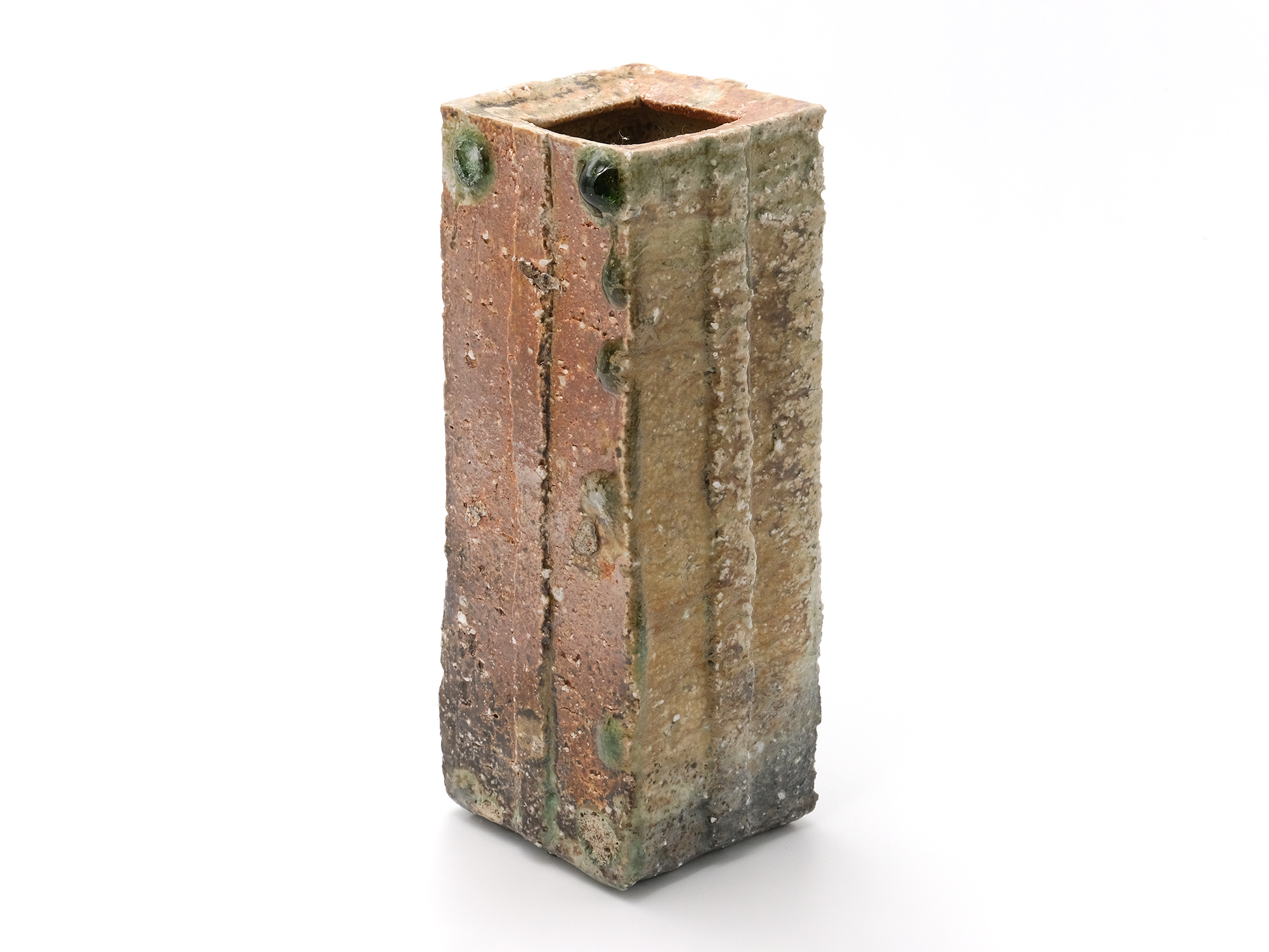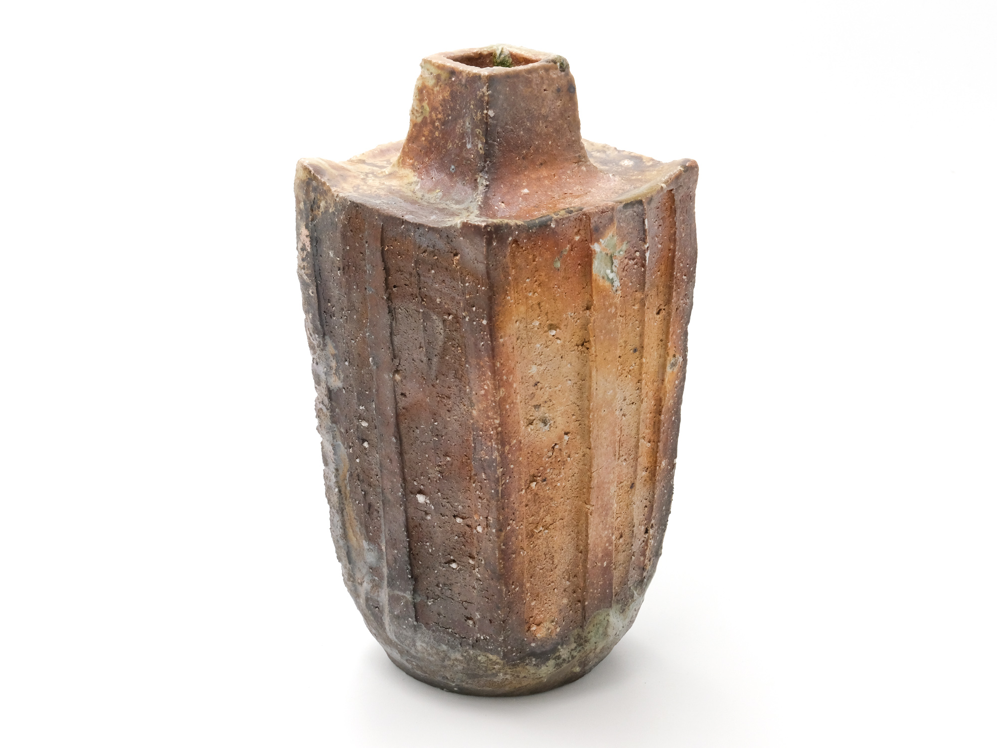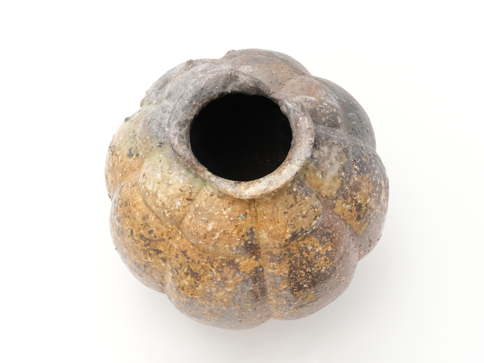 次女 美子の《茶碗》は灰被りと焦げが見られ、ふっくらとして温かい。《しのぎ花入》は上品な女性を眺めるようで、肩から裾にかけての美しい曲線が魅力的である。