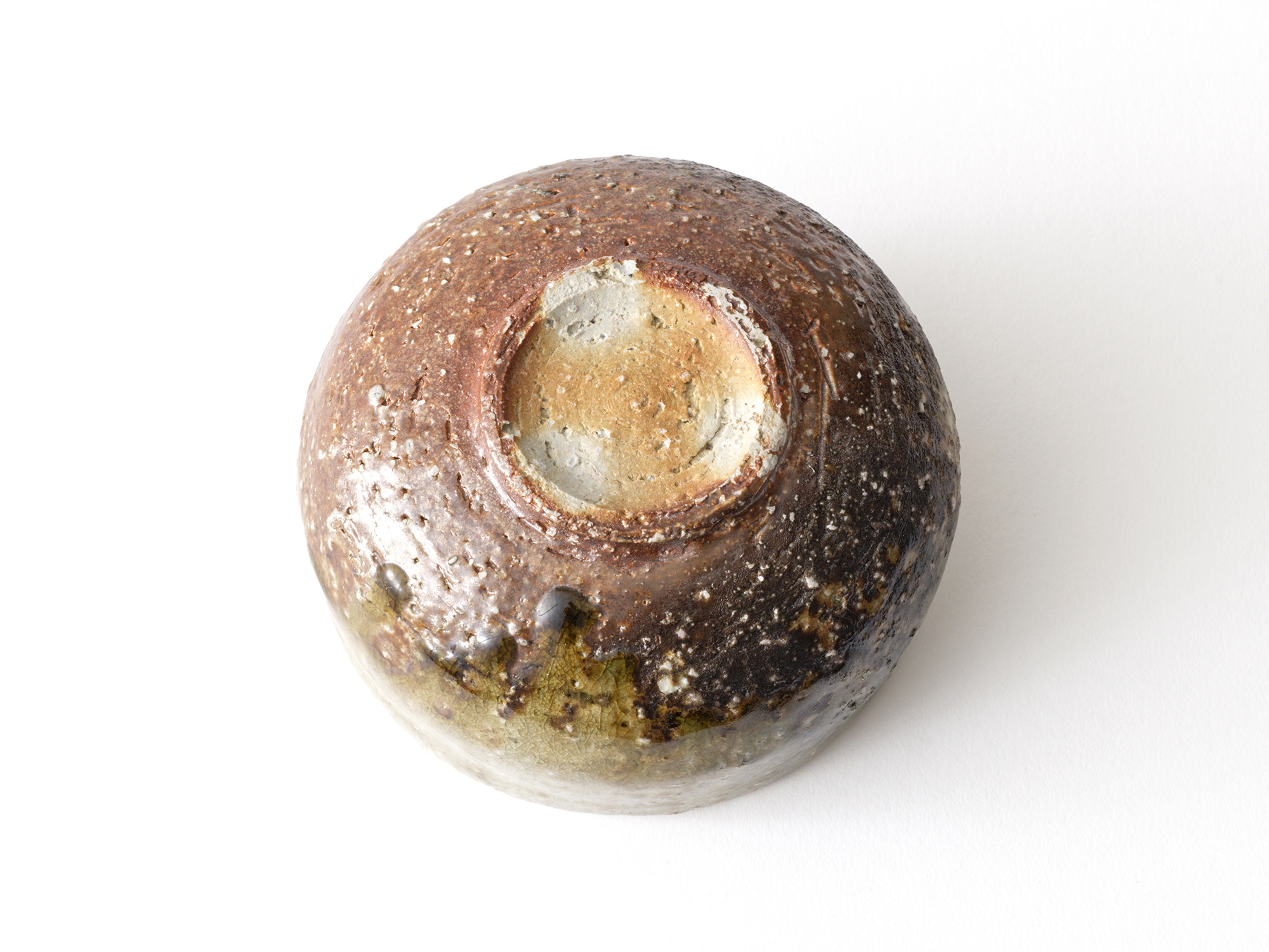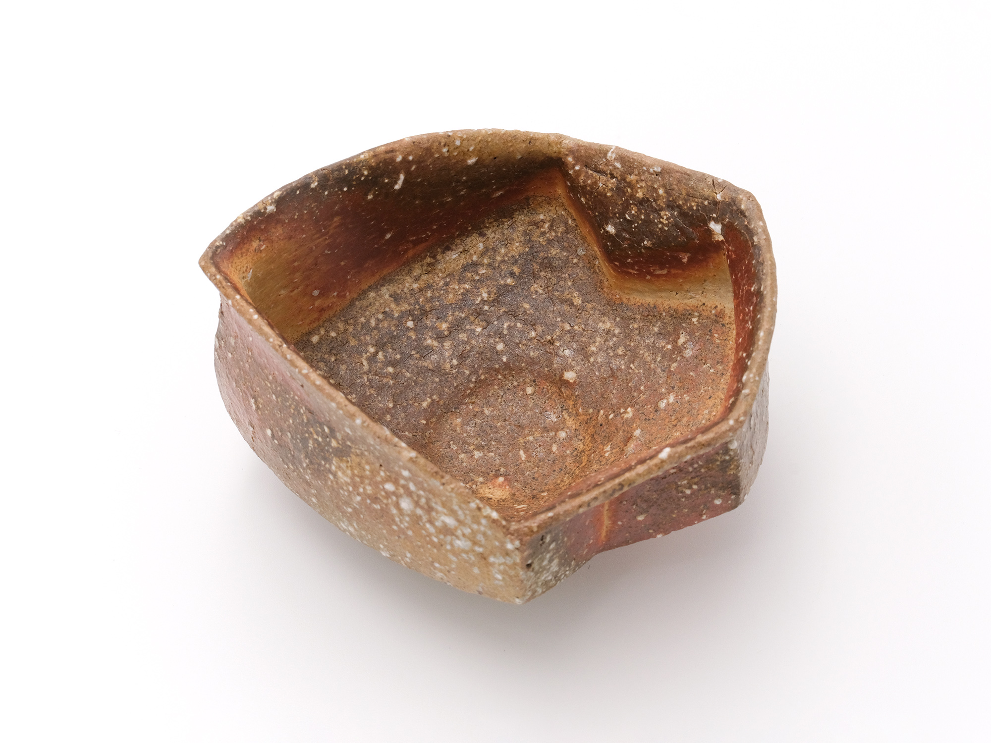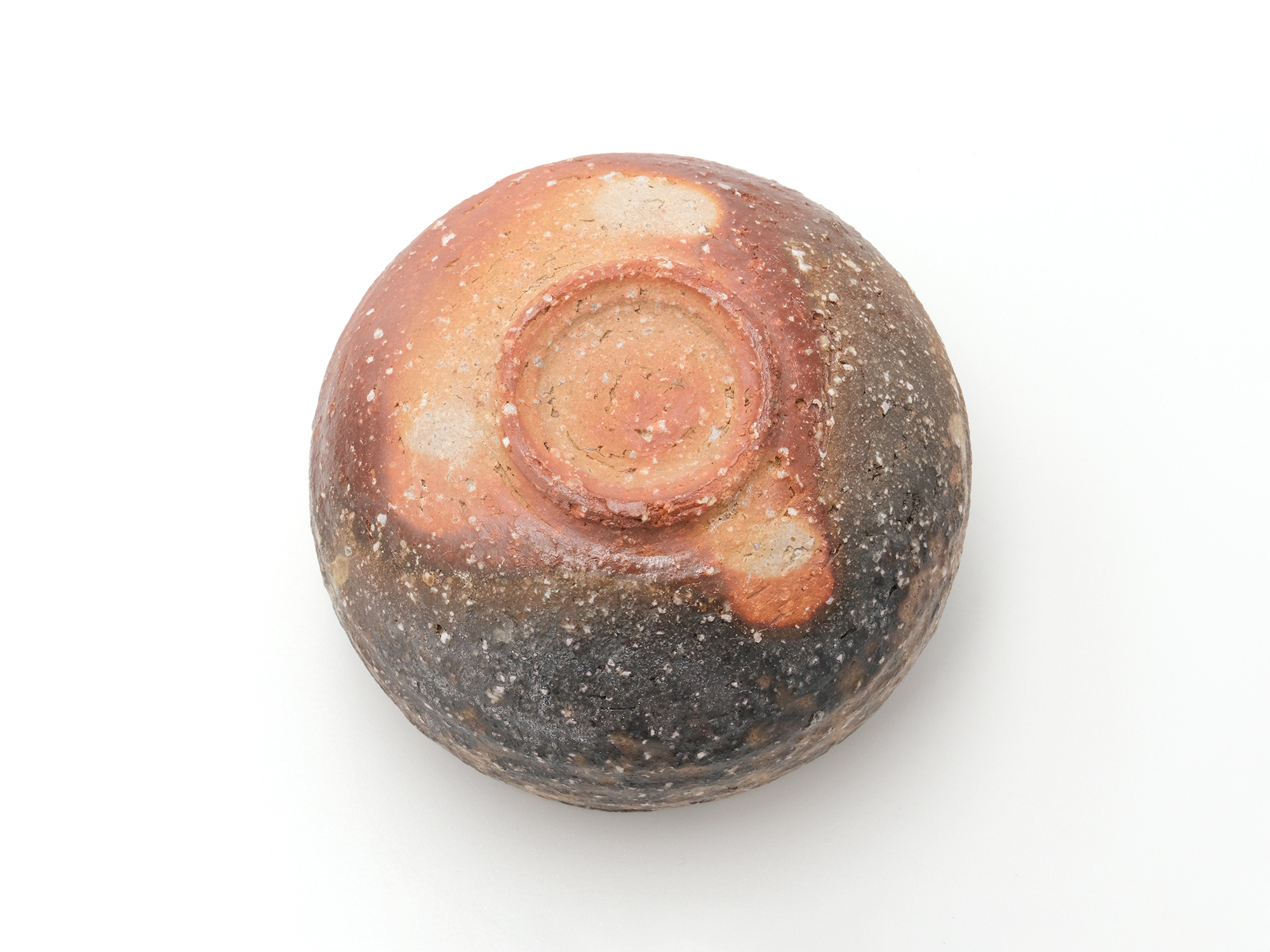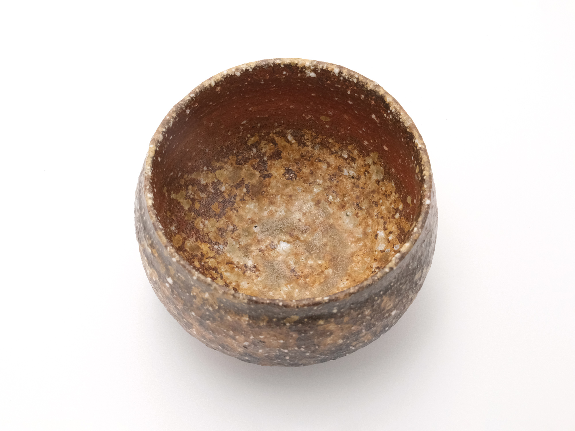 令和元年、五代 楽斎はアメリカのデンバー美術館で講演を行った。その時、俳人の加藤楸邨の「月下信楽」という文章を引用して、冴えかえる月明りを浴びた信楽の大壺の「何にも凭れず、何にも媚びず、それ自身で極めて自然に据わっているという在り方」が自身の作品の理想であると語った。そして、生まれたのが《ウズクマル》である。すっと立ち上がった壺型の蹲で、肩から胴下部にかけて激しい焦げやくっつきが見られる。また肩には桧垣文が施され、二筋の玉垂れがいい景色を表わしている。《茶碗》は側面の箆削りが特徴的で、なんとも気持ちがいい。