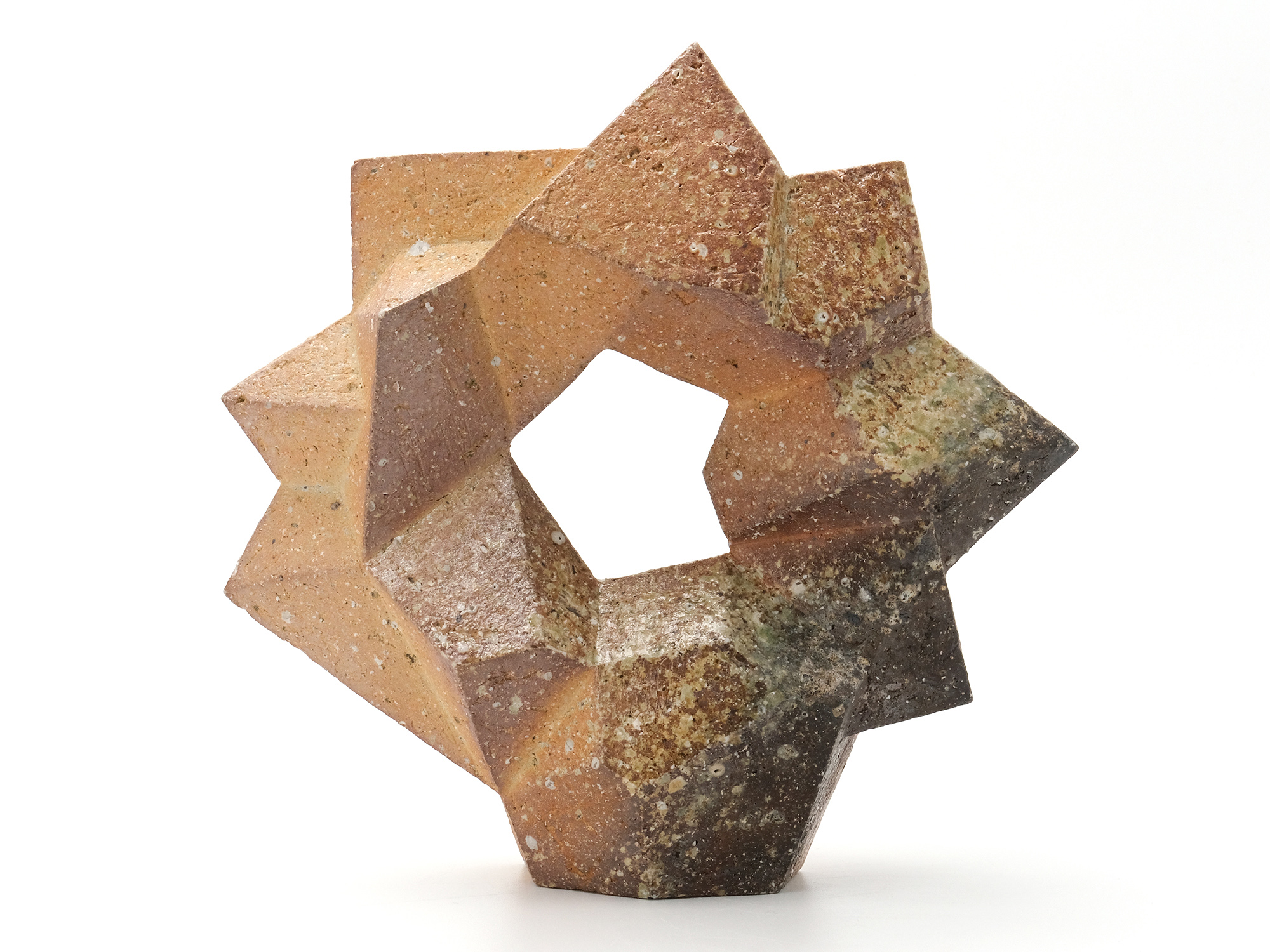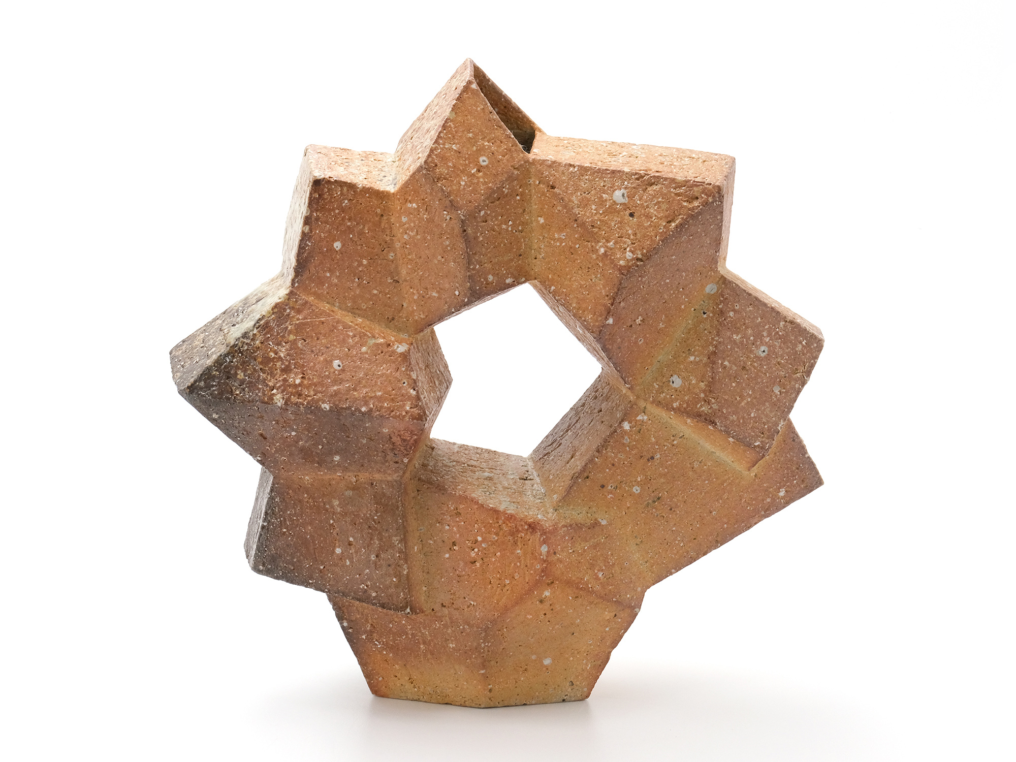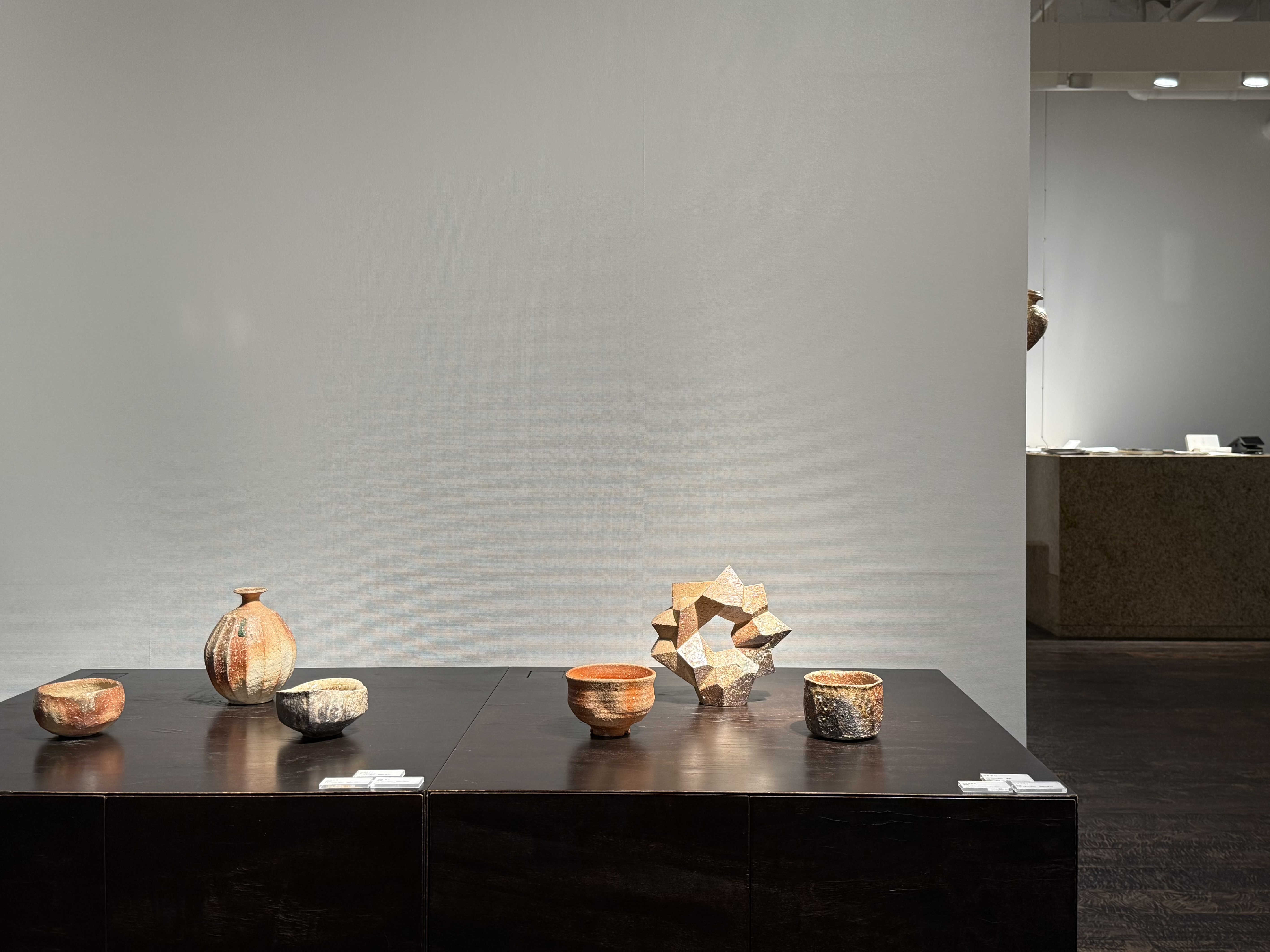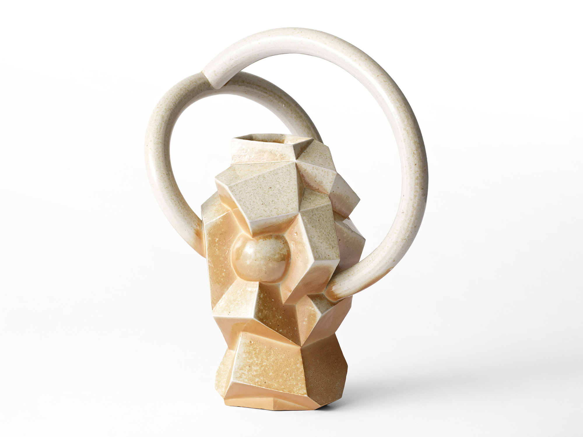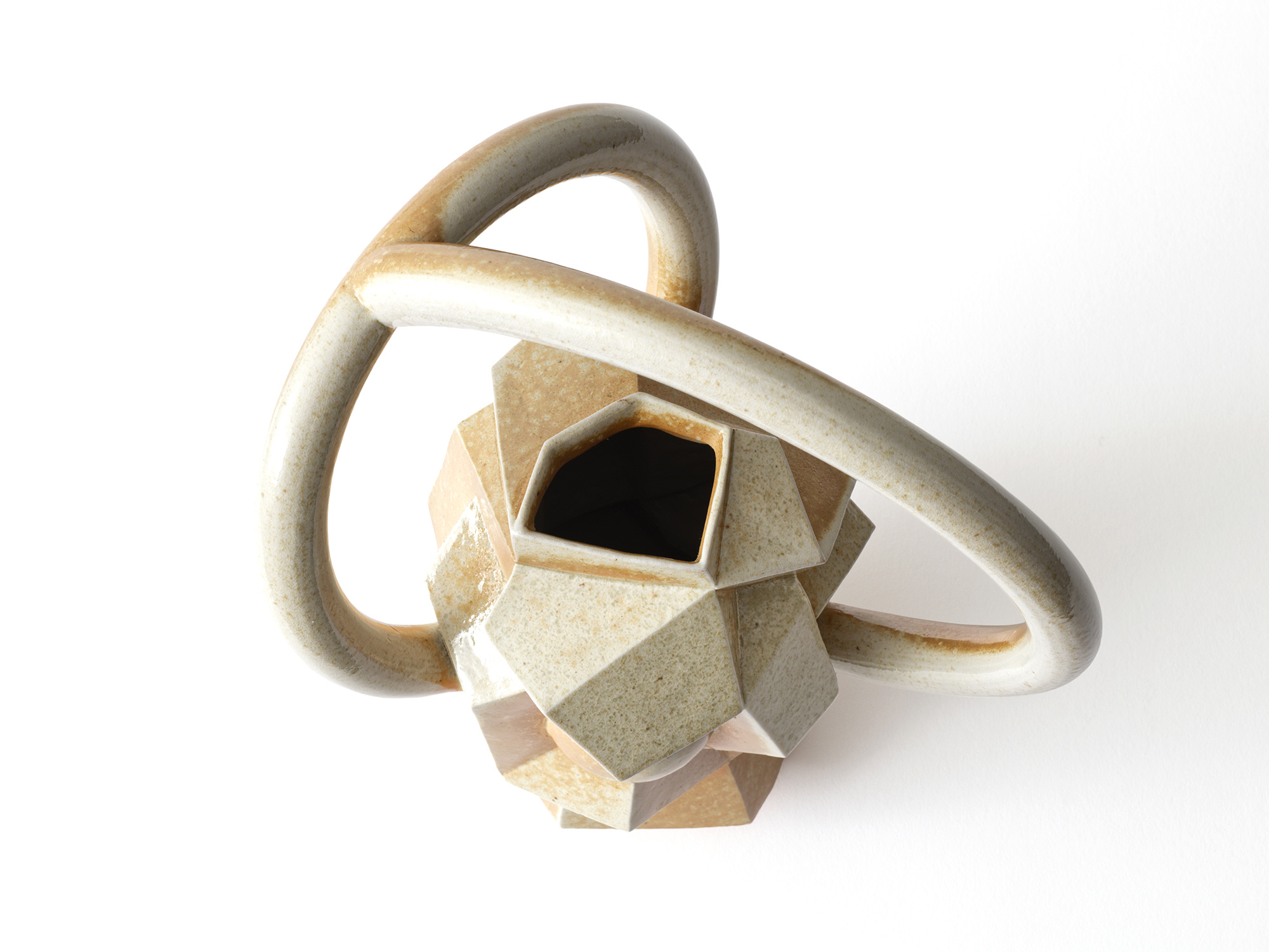 田尾晃の《Orbit Vase》は角柱の集合体に2本の曲線が組み合わさり独特な空気感を醸し出している。《茶碗》は多面体で構成されており、二人とは対照的な思考する茶碗である。