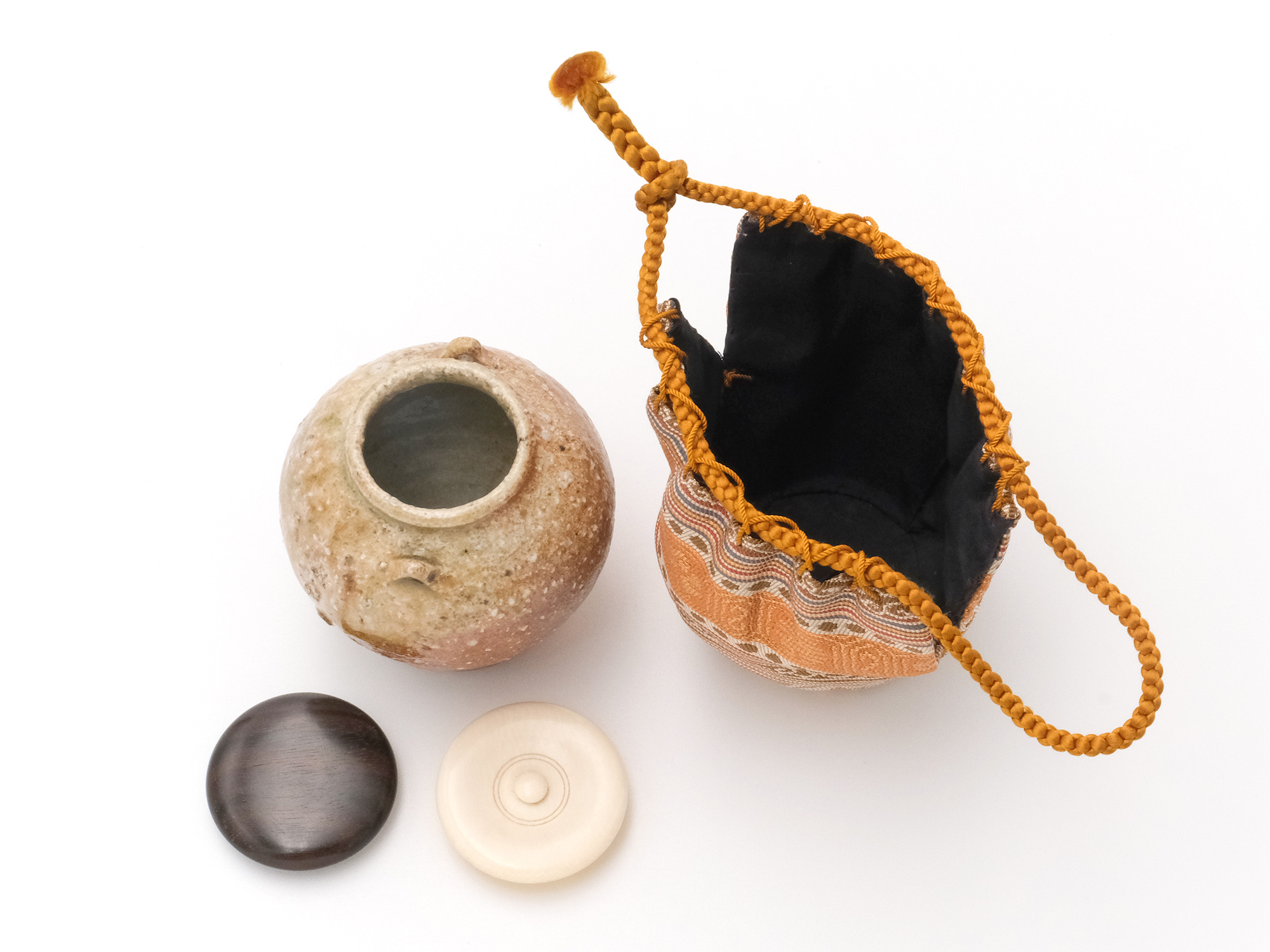 | 作品名 | 耳付茶入[仕服・牙蓋・木蓋付] 仕服 雲頭段文錦 |