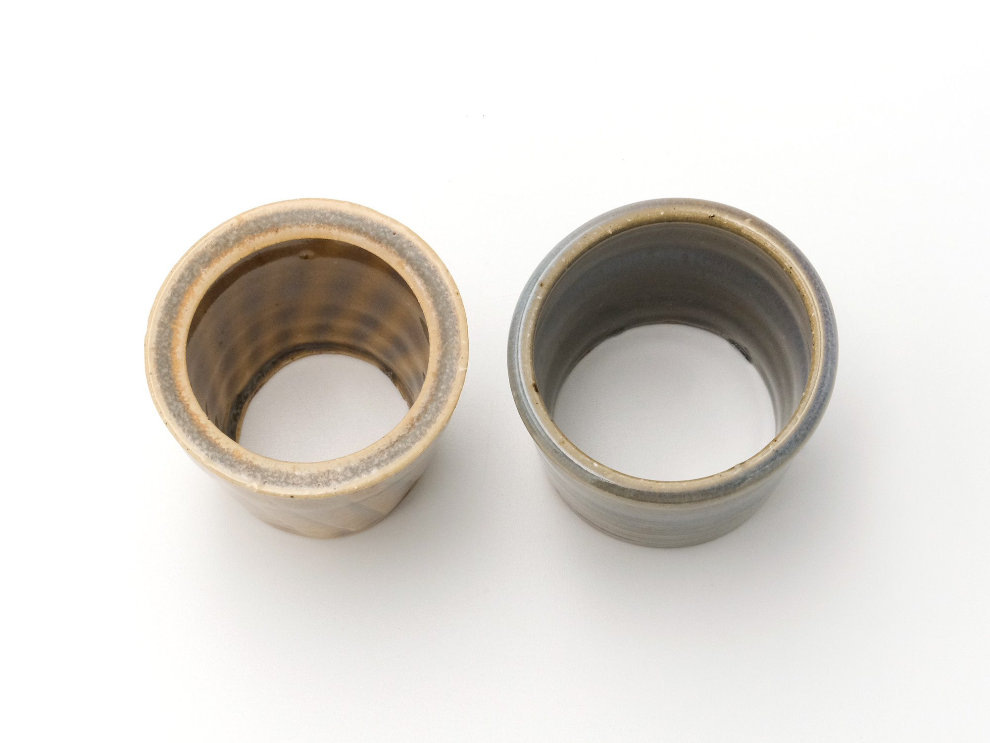 | 作品名 | [左] 黄唐津そぎめ蓋置 [右] 青唐津筋目蓋置 |