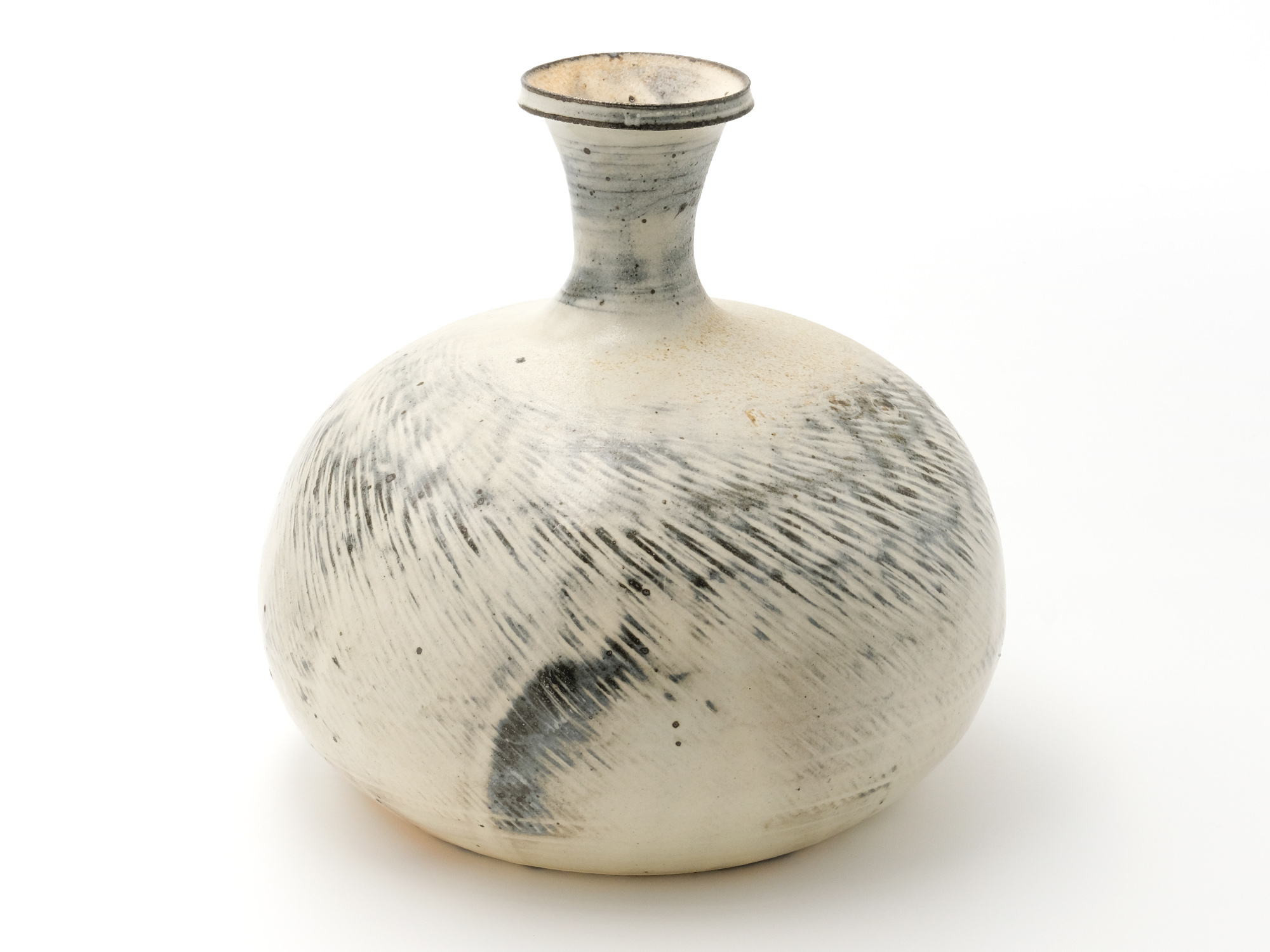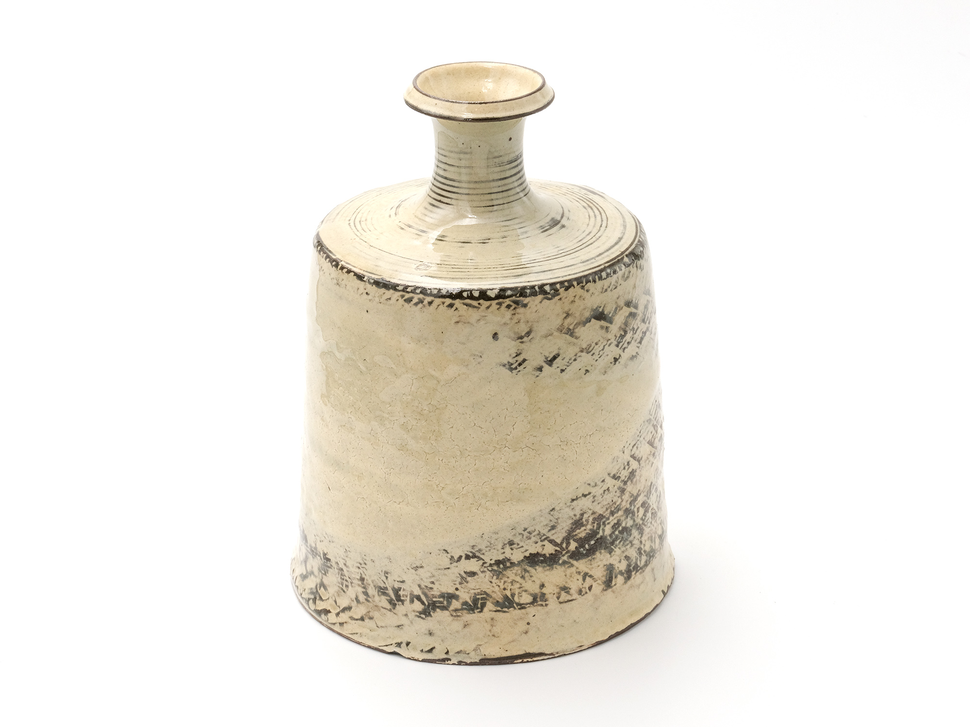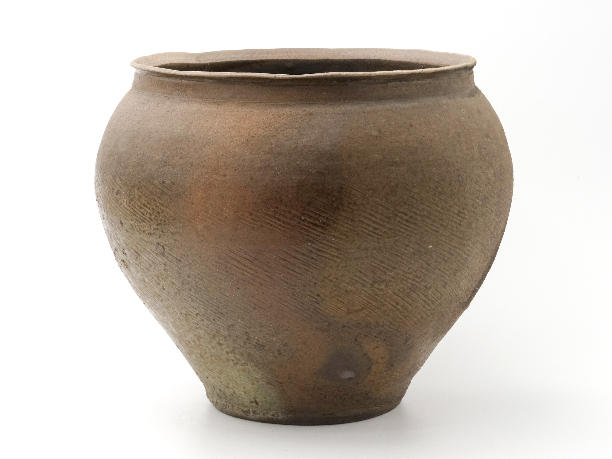 その姿勢は、茶の湯の器であっても変わらない。 ↑の《唐津南蛮叩き水指》は、還暦を迎えた太亀さんの心境がよく現れた作品である。 薪窯のなかで程よく変化し、灰被りといい、焦げといい、火色といい、何とも自然体で気持ちがよい。 歌舞伎で言えば、まさに名脇役である。