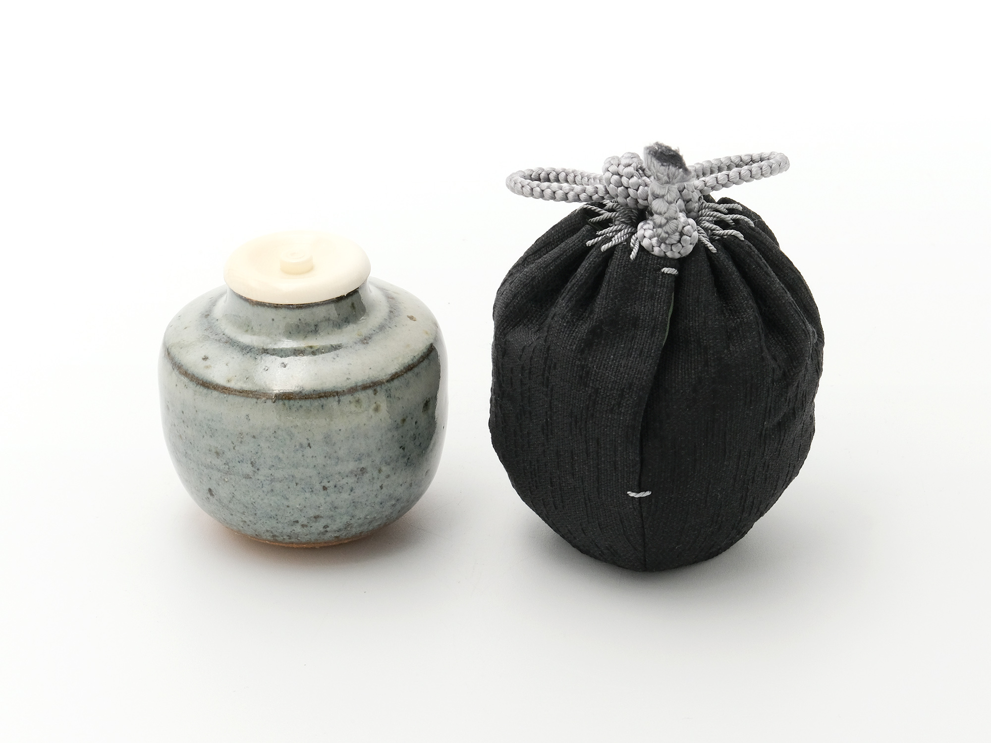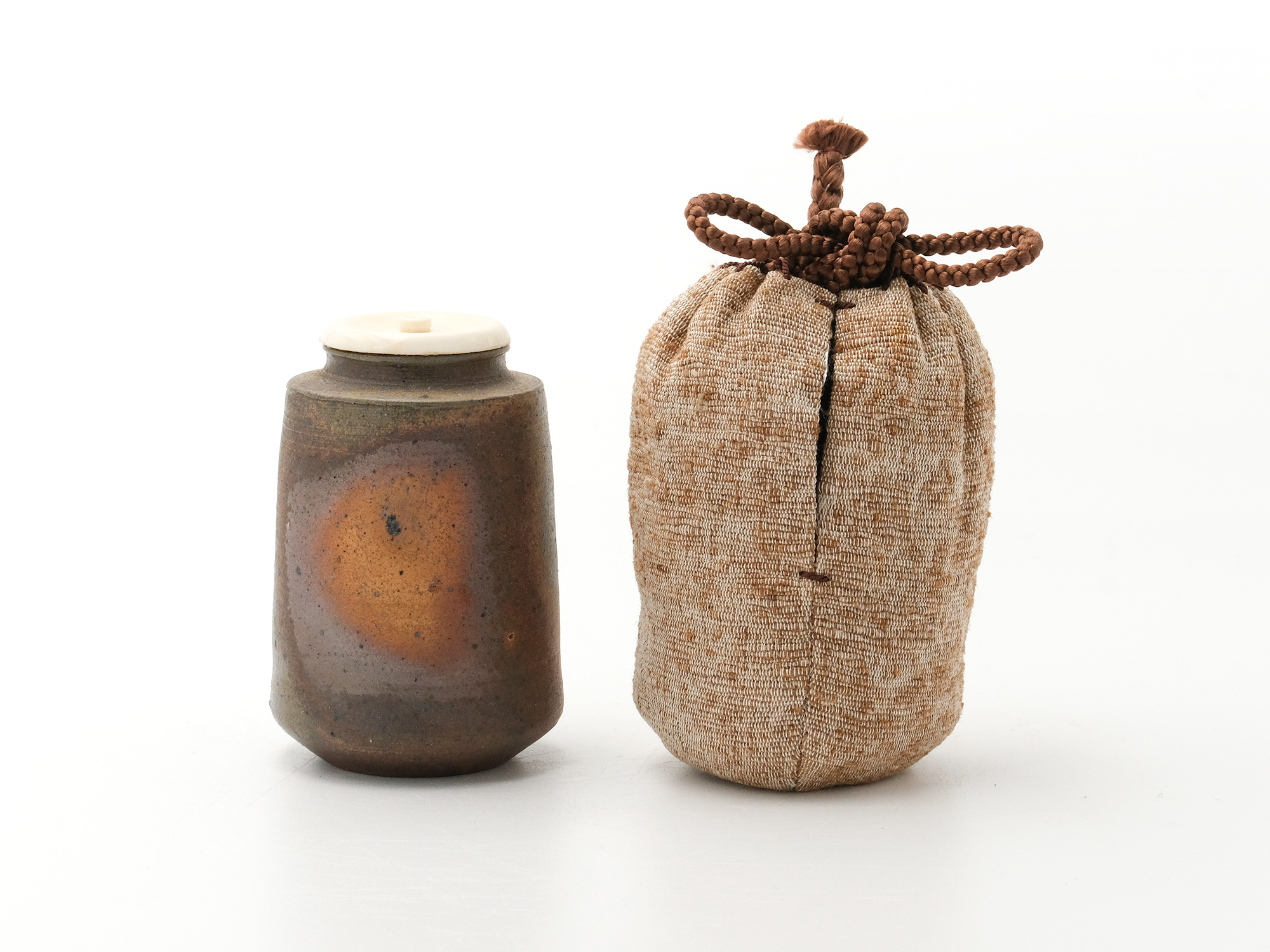 | 作品名 | 唐津南蛮茶入[仕覆・牙蓋・木蓋付] 仕覆 ぜんまい紬 |