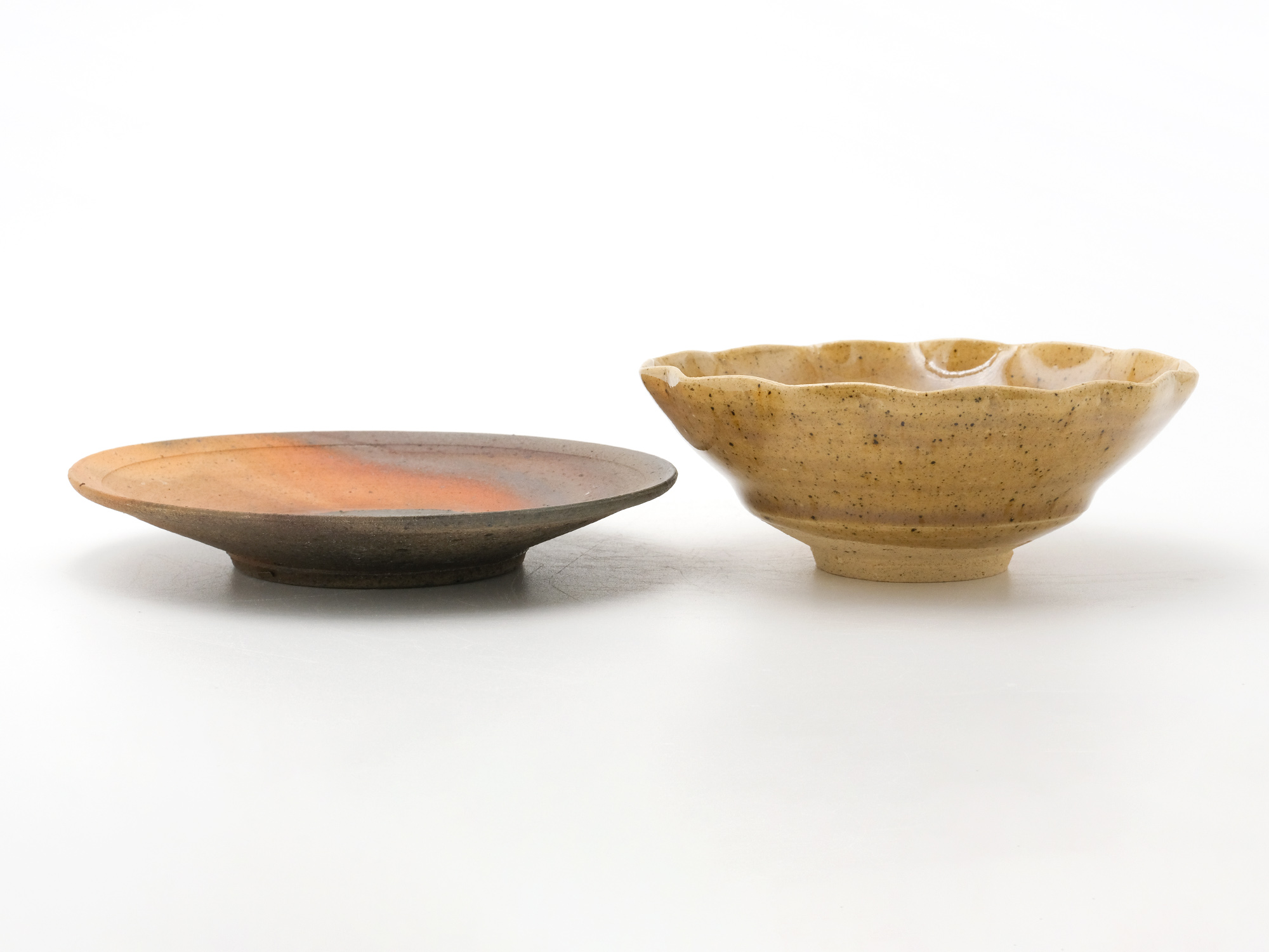 | 作品名 | [左] 唐津南蛮皿 [右] 黄唐津輪花向附 |