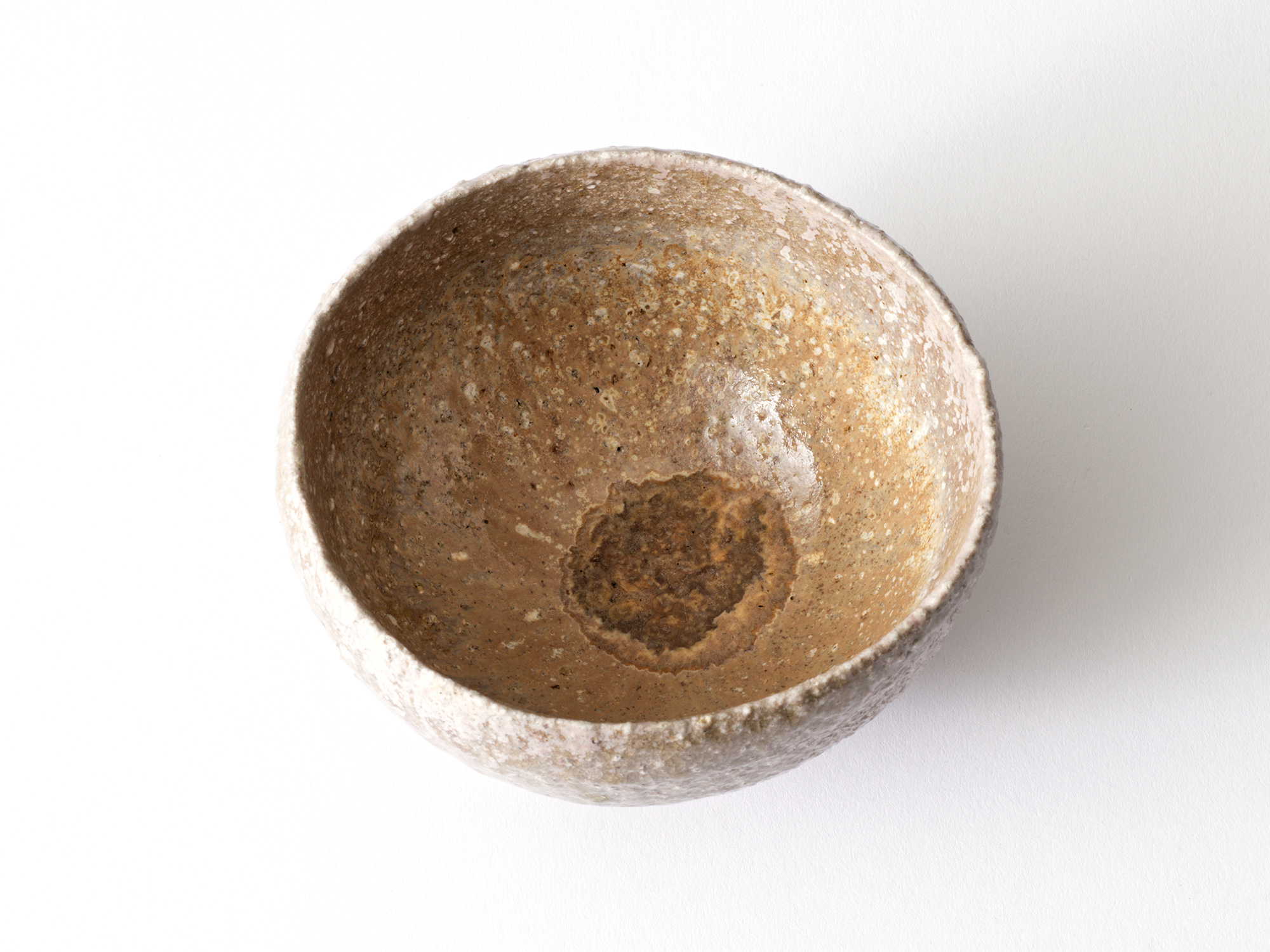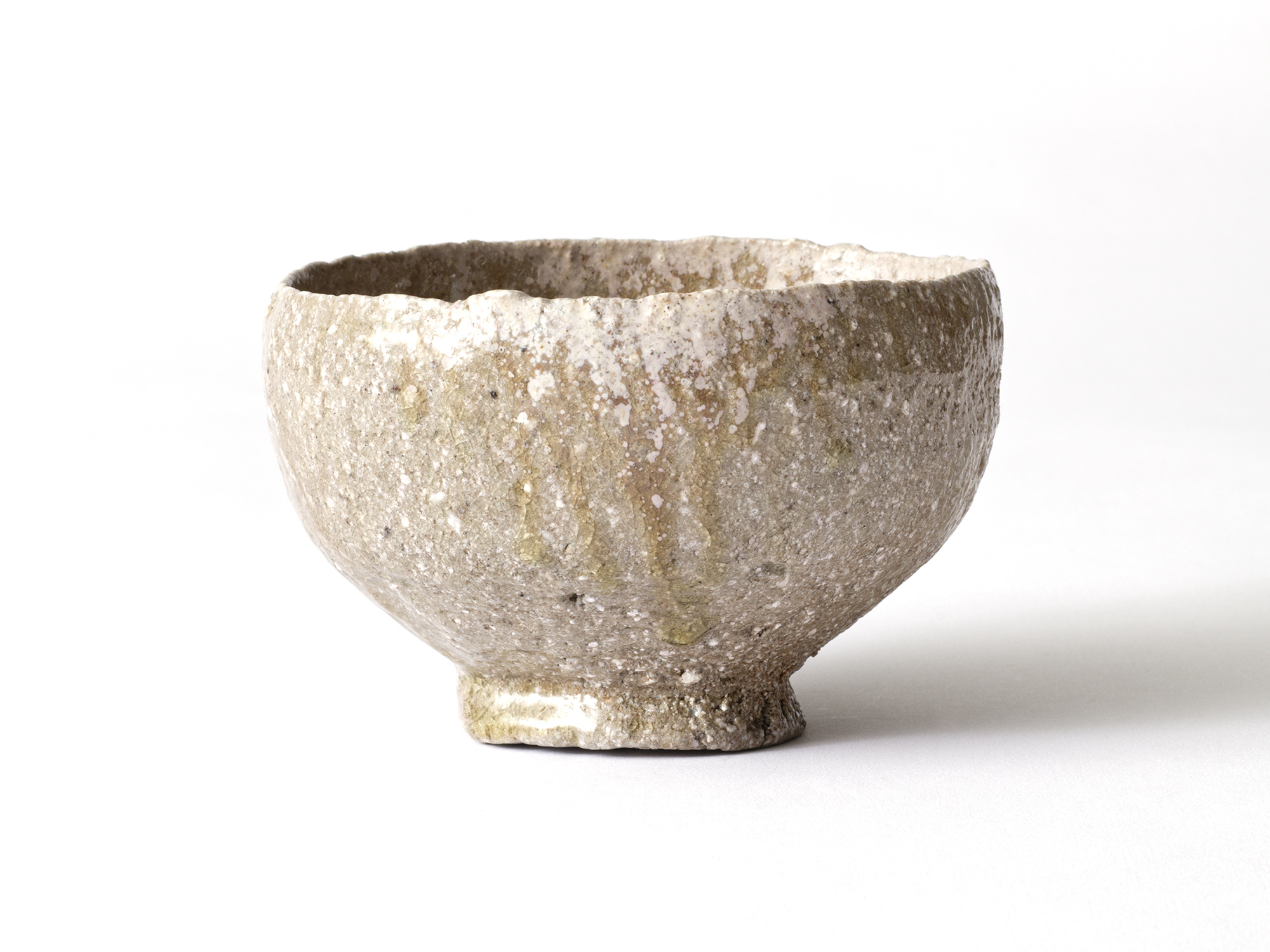 伊勢﨑晃一朗は、これまで茶盌を作るに当たって手捻りで制作していましたが、数年前に白土と出合って、はじめて轆轤で挽くようになりました。それは「土の個性がそうさせたのであって、僕は素材に救われたと思っている」と、《白茶盌》誕生の秘話を語っています。