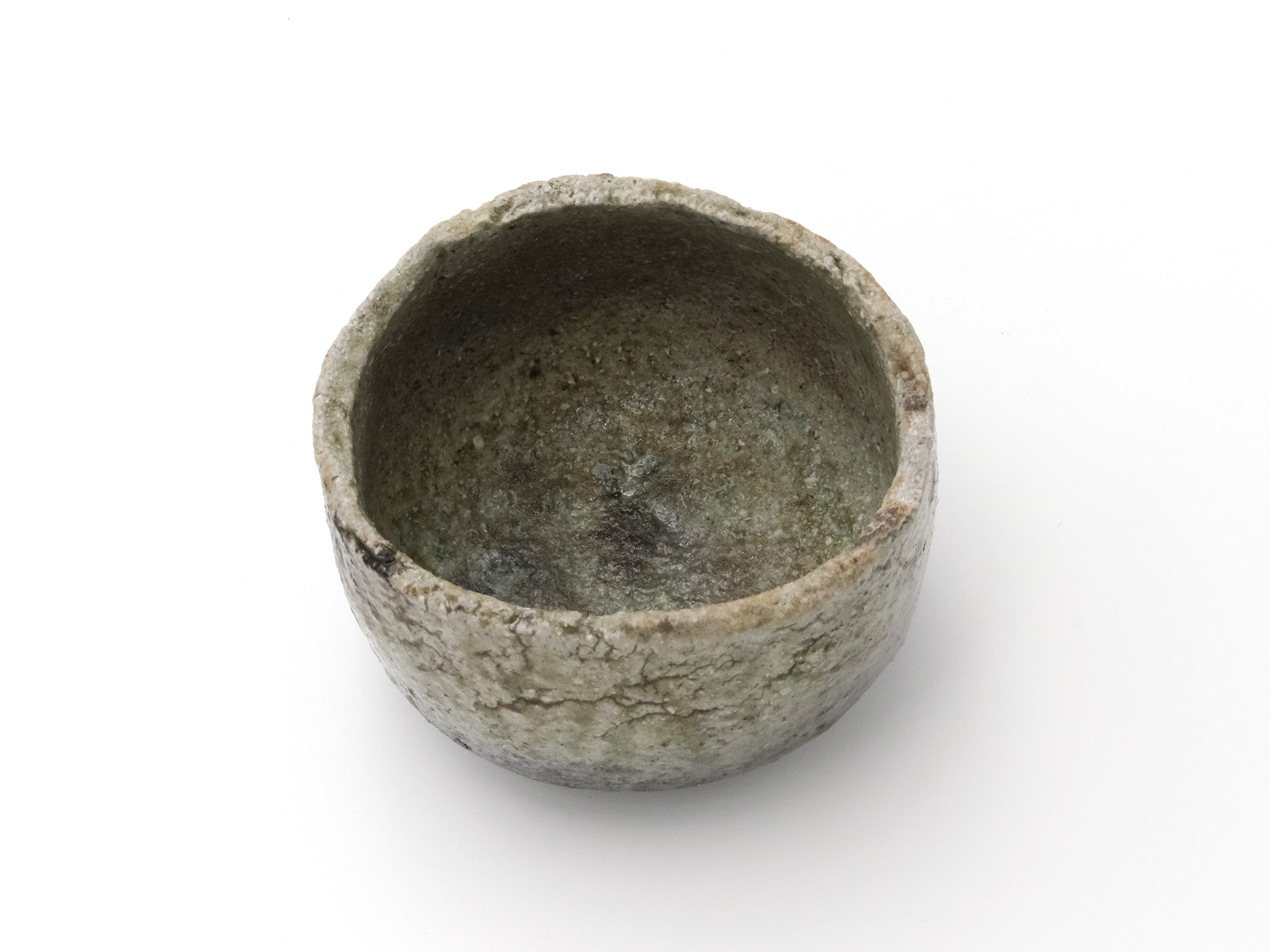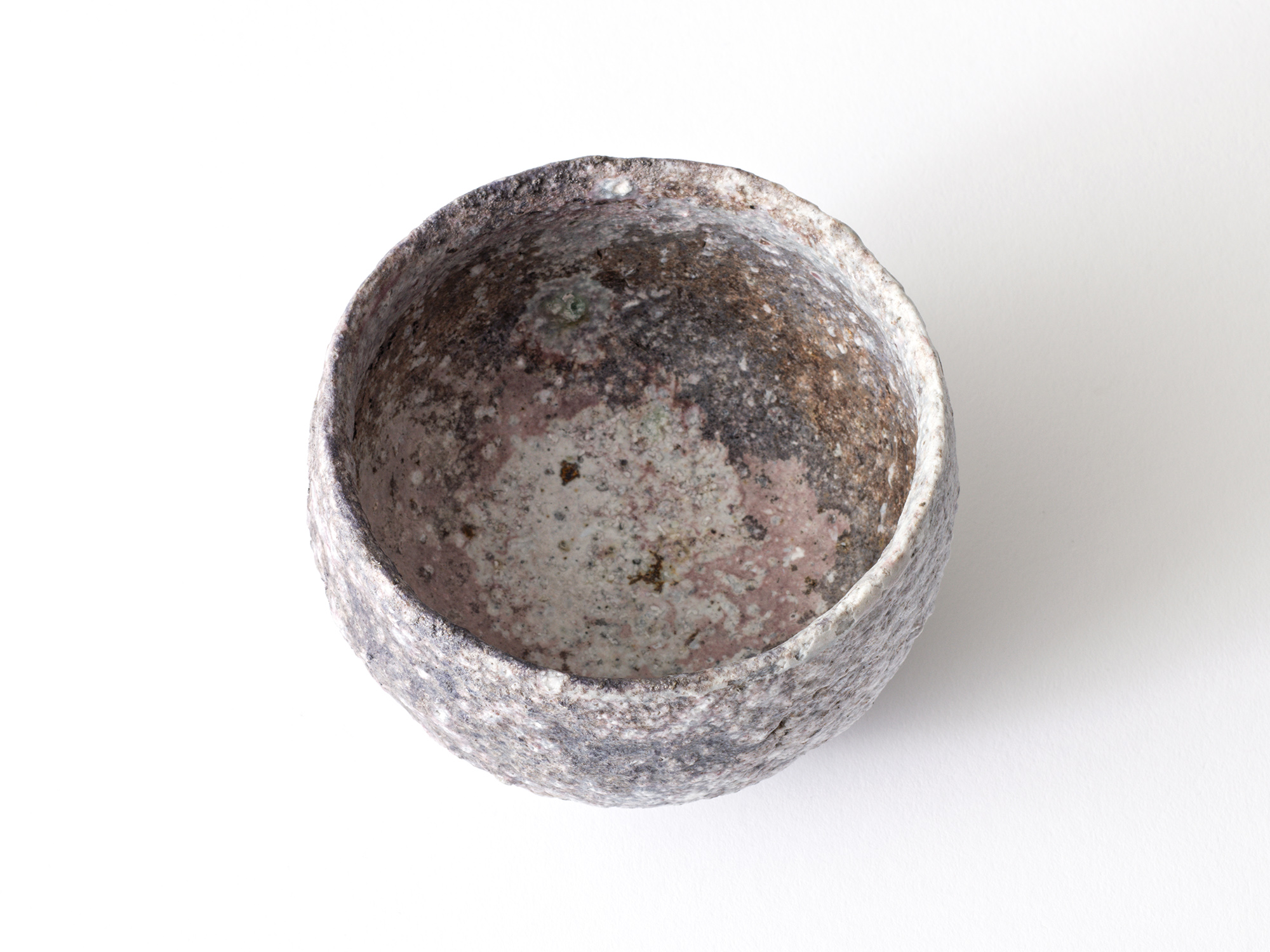 石田和也の《備前磁器茶盌》は、備前にある陶石の鉱山で自ら採掘した磁土で成形し、薪窯で焼成した窯変の茶盌です。 「この太古から備前の地に眠る素材で、自分なりの世界をどう作り上げられるか」をテーマとして、備前の磁器に挑戦しています。