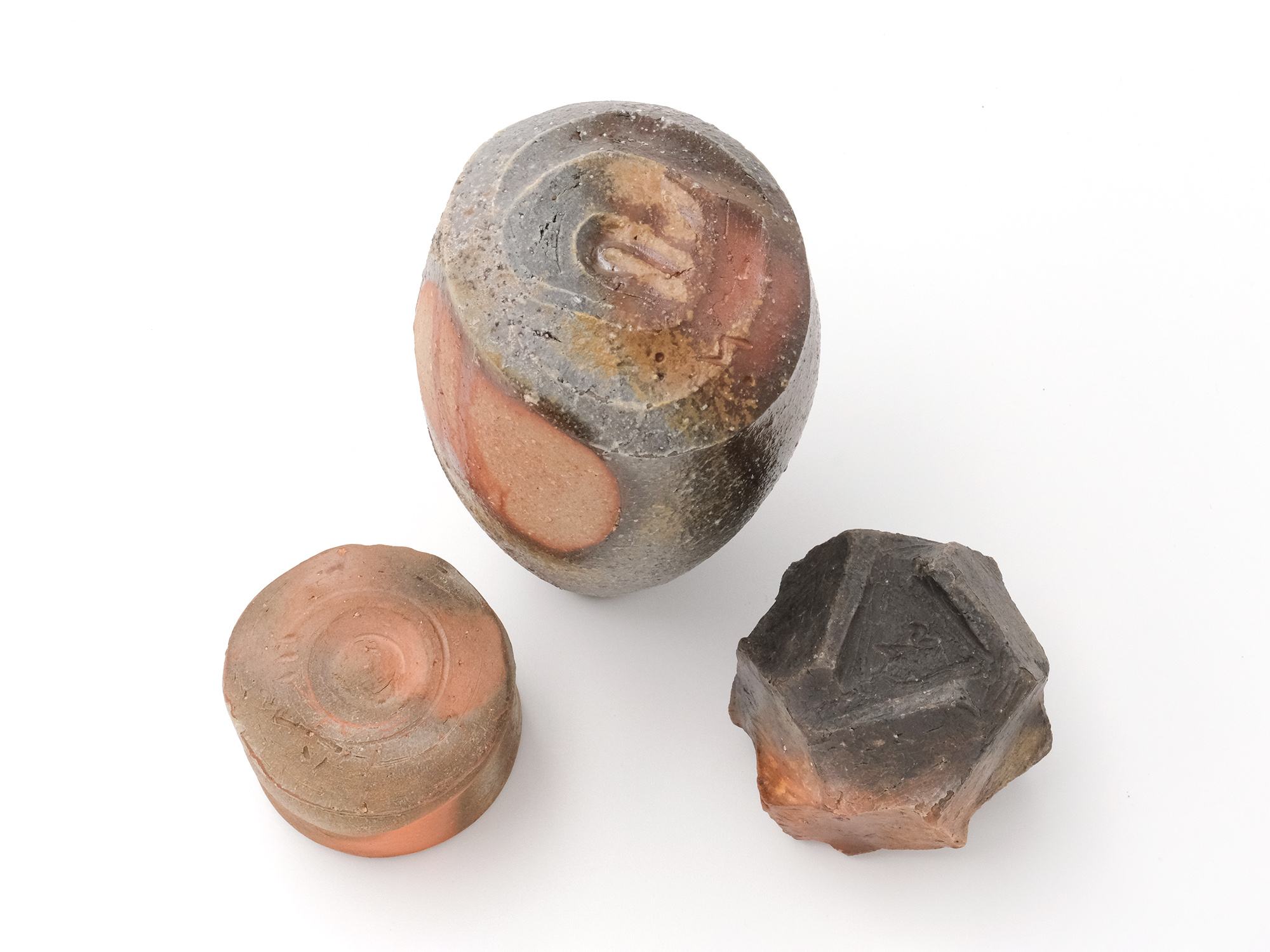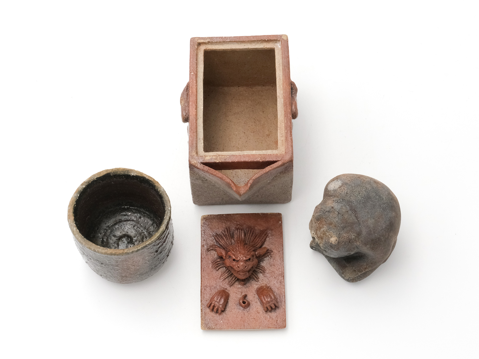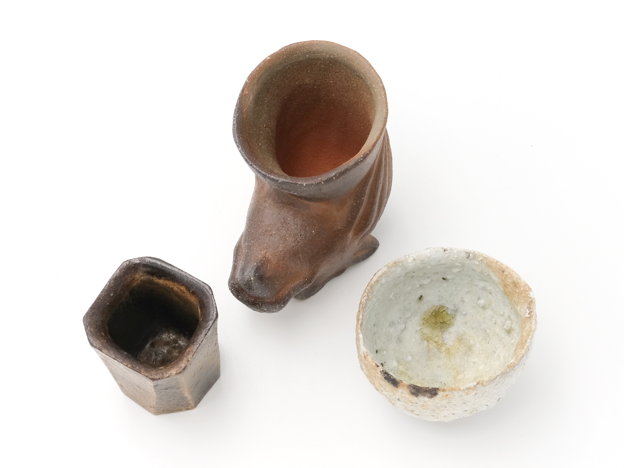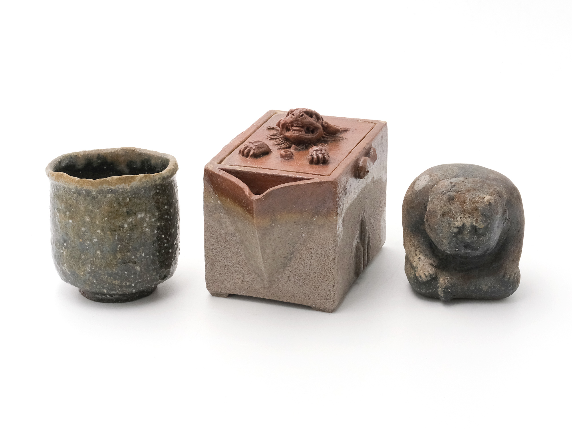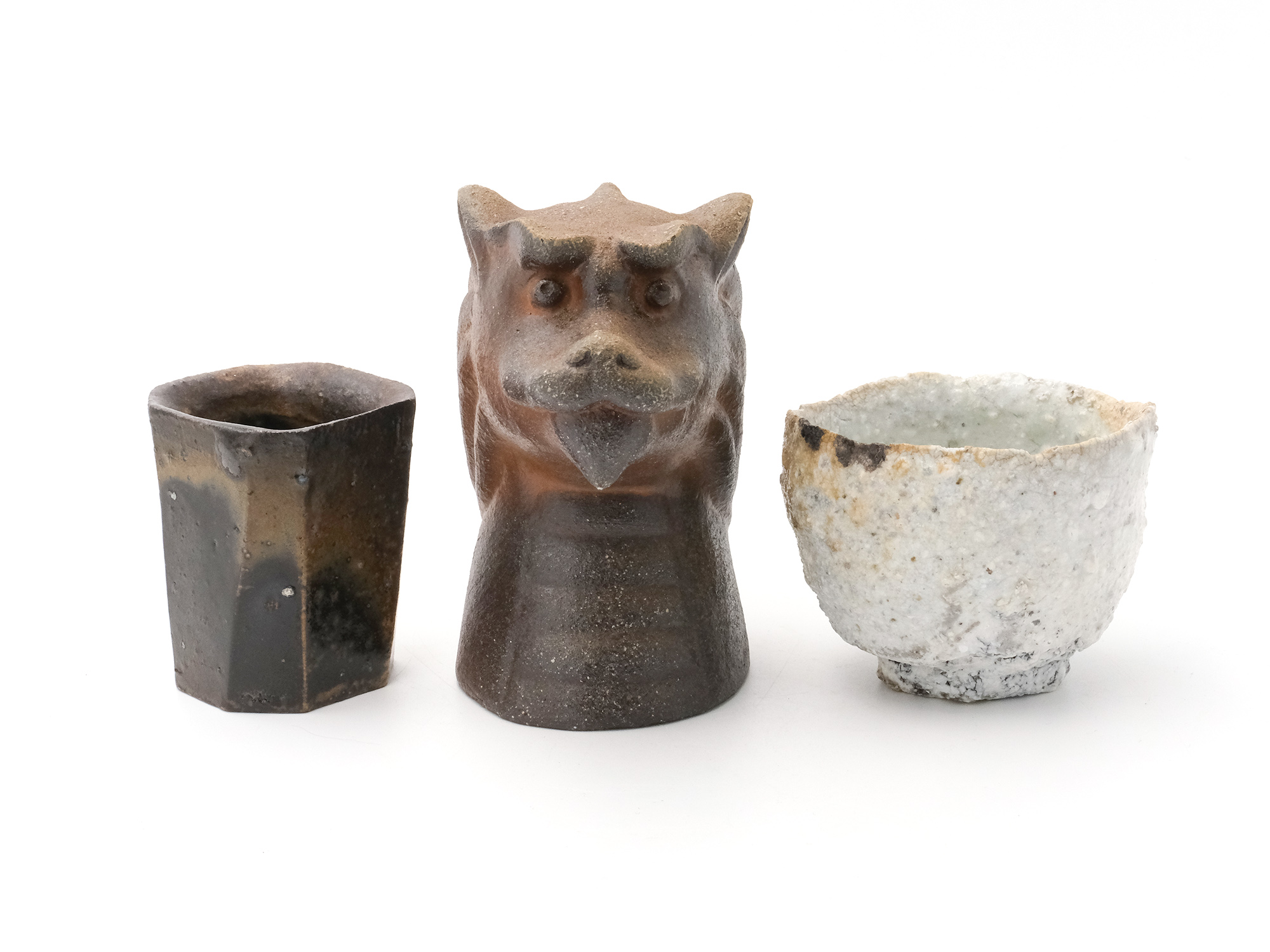 | 作品名 | [左] ぐい呑 [中] 備前 窯変 獅子酒注 [右] 鬼 |
