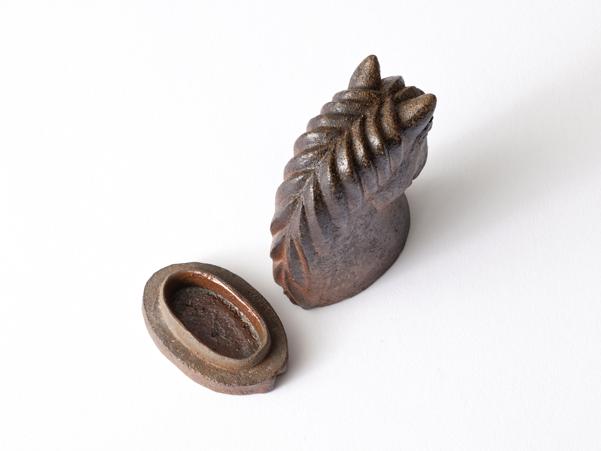 瀧川卓馬の《馬香合》は土で原型を作り、石膏で型を取り、それを基に制作したものです。 来年の干支は午(馬)ですが、昔から馬ほど人生に直接役立ち、直接多くの意義をもっているものはありません。 愛馬や名馬、龍馬、天馬、神馬という言葉が、それを物語っています。