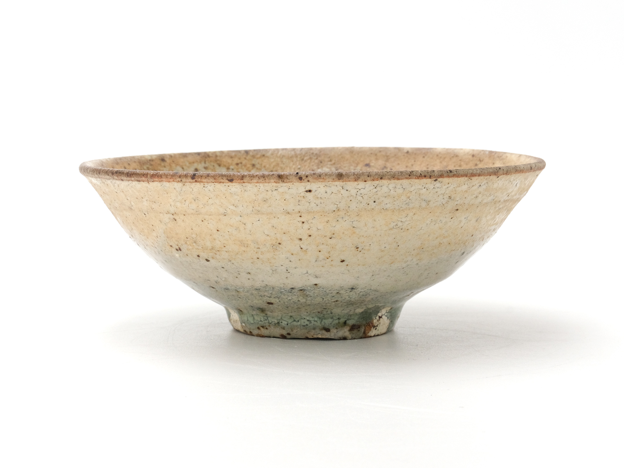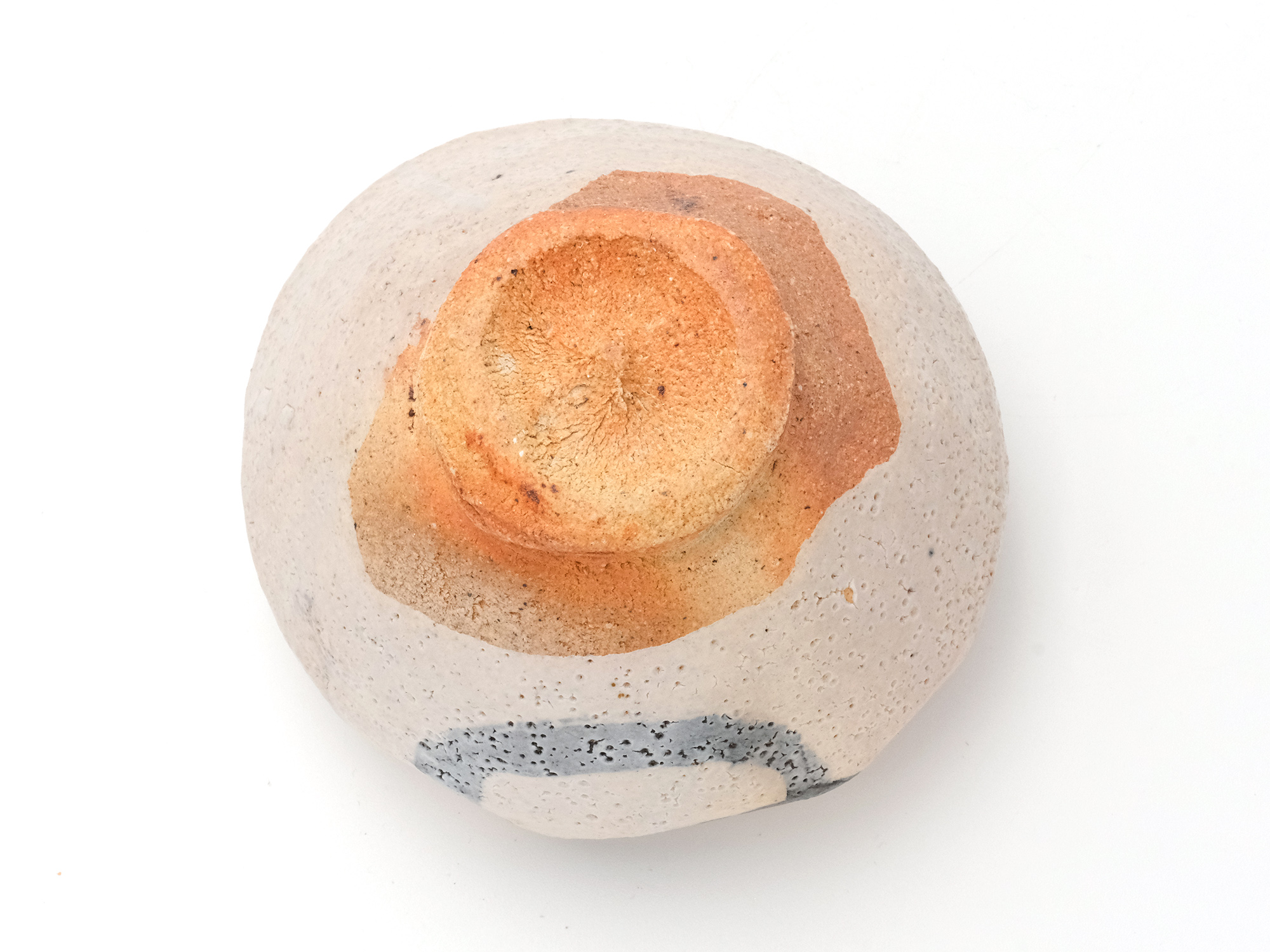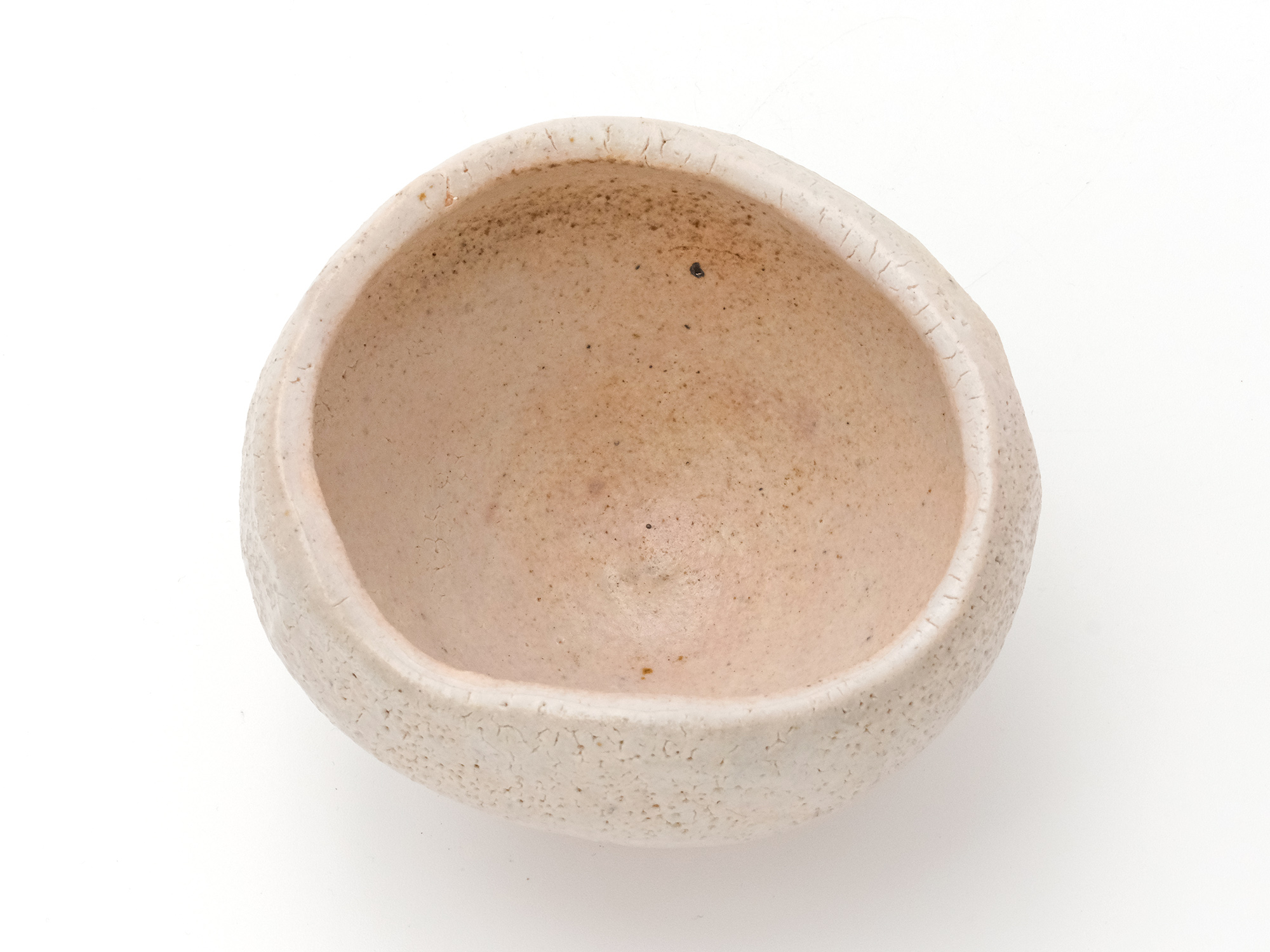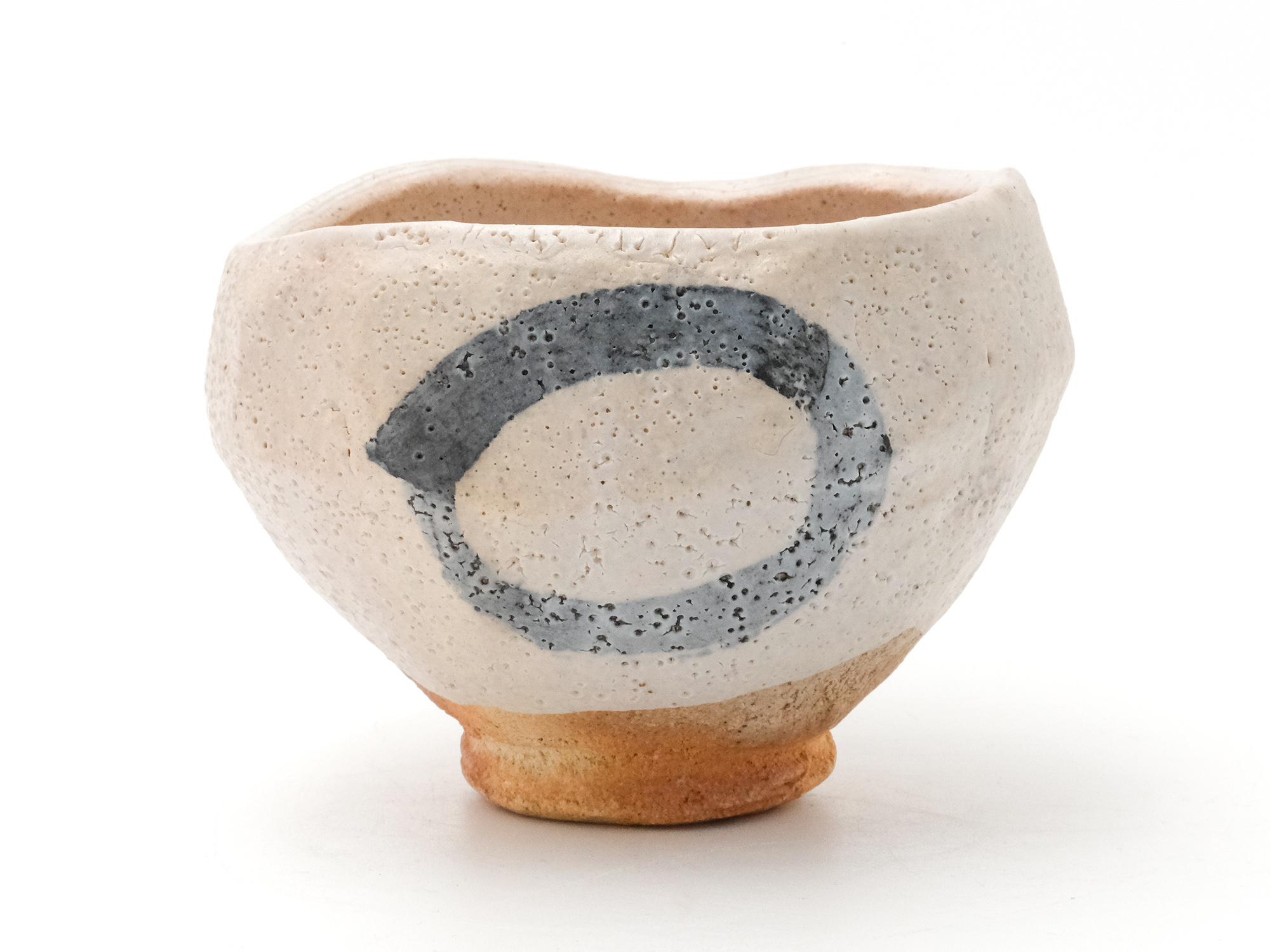 安永頼山の《唐津茶盌》は所謂碗なりの無地唐津茶盌である。 茶の湯の心を取り入れた、上品な仕上がりとなっている。とくに、高台とその周囲の削りがいい。 褒め過ぎかも知れないが、茶碗を作らせたらうまい作家であり、唐津茶陶の将来を担う陶芸家である。