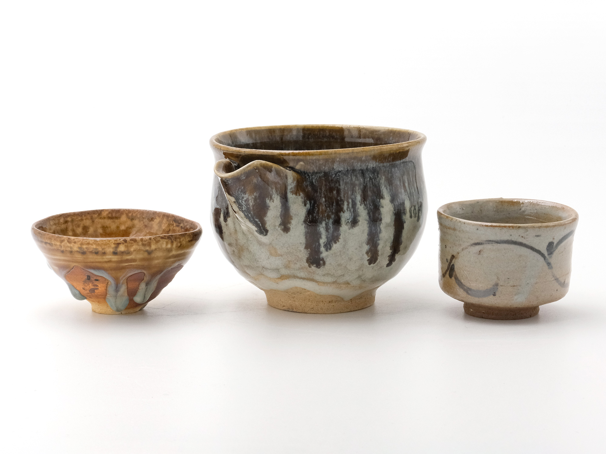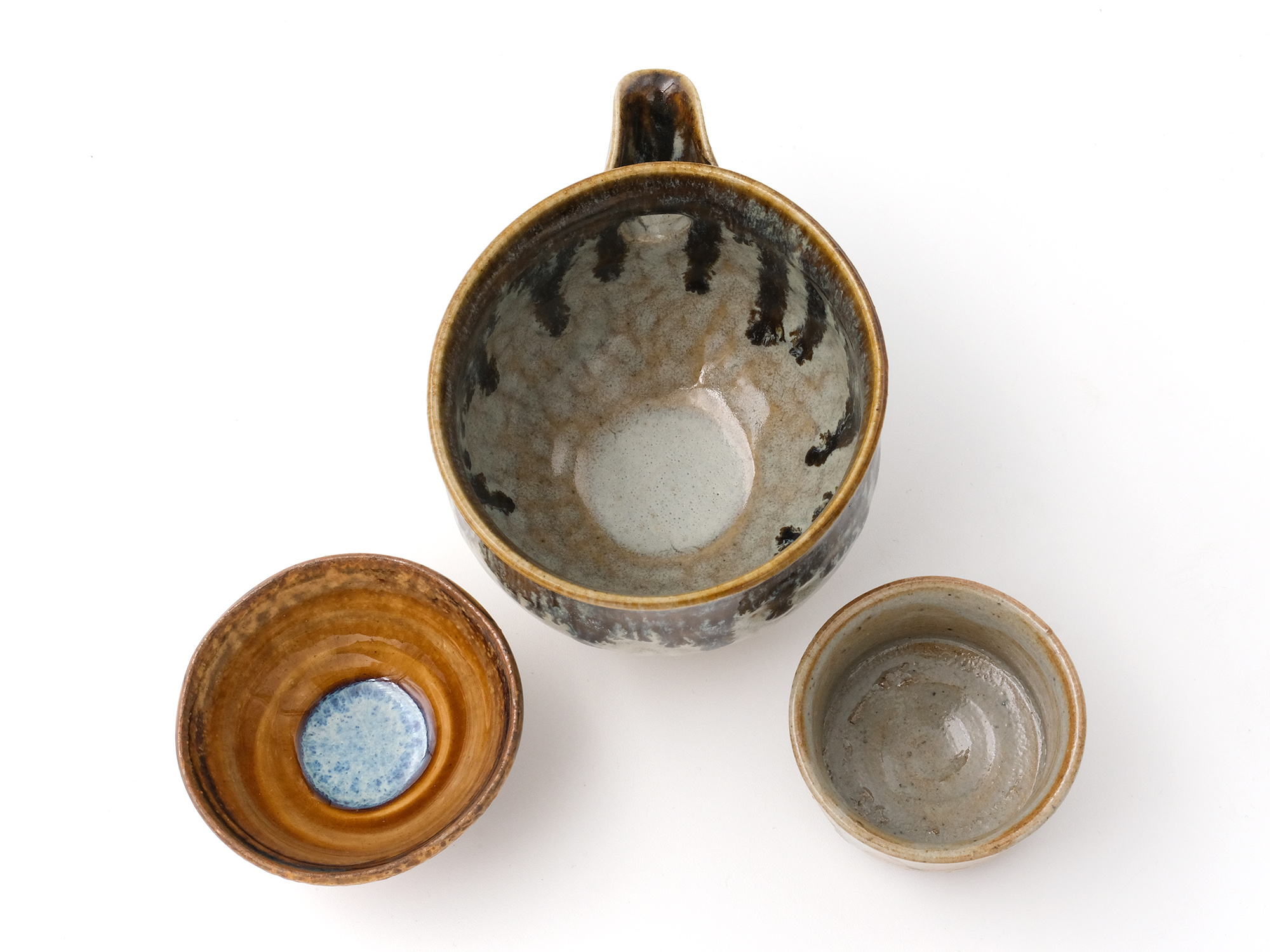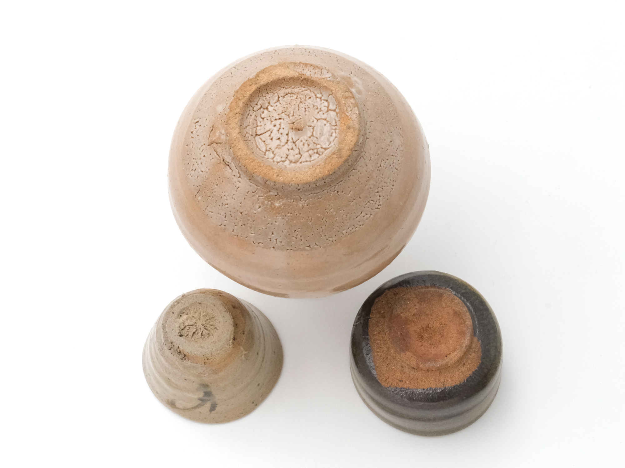 | 作品名 | [左] 黄唐津ぐい呑【ご売約済】 [中] 朝鮮唐津片口【ご売約済】 [右] 絵唐津ぐい呑 |