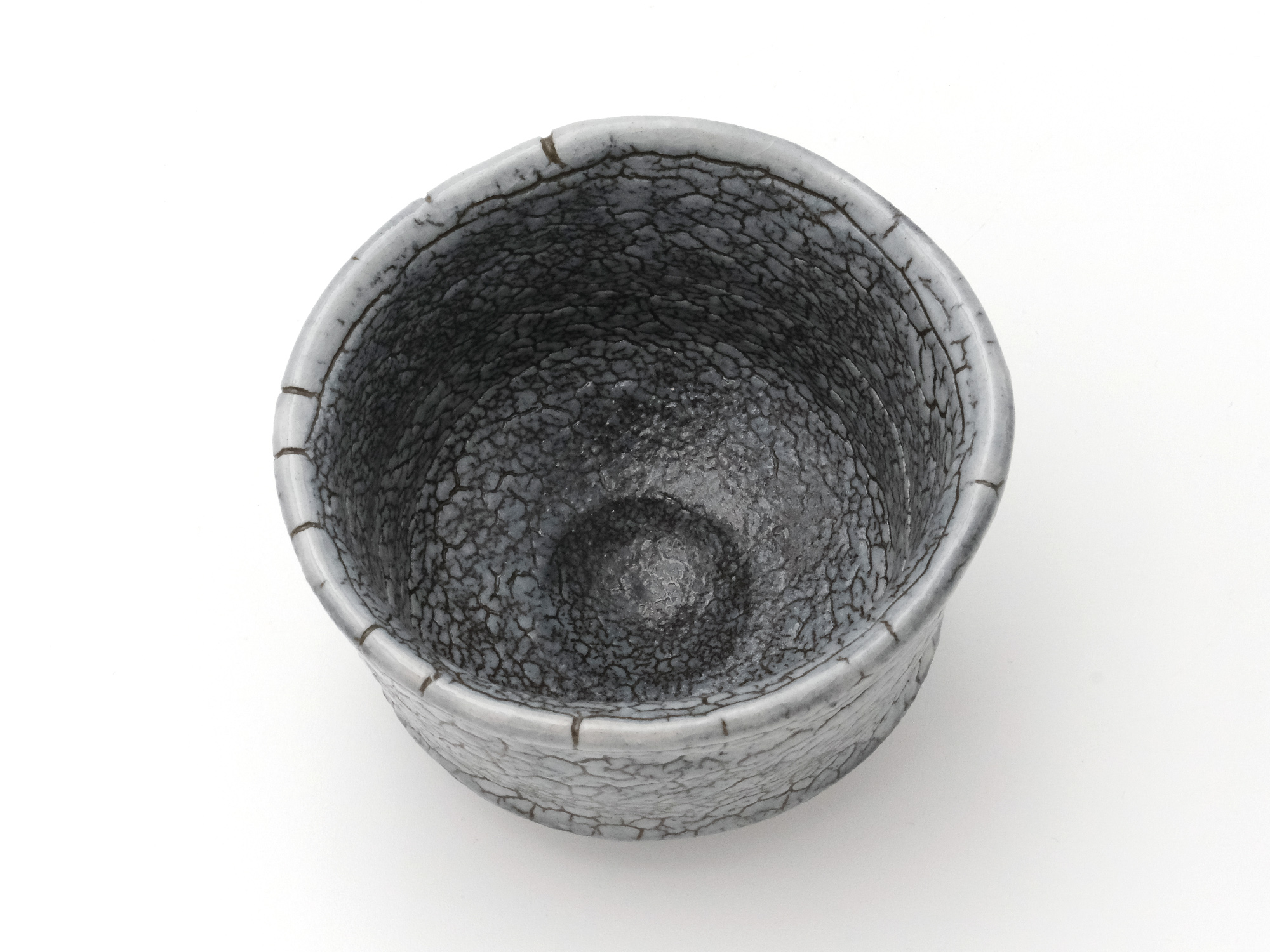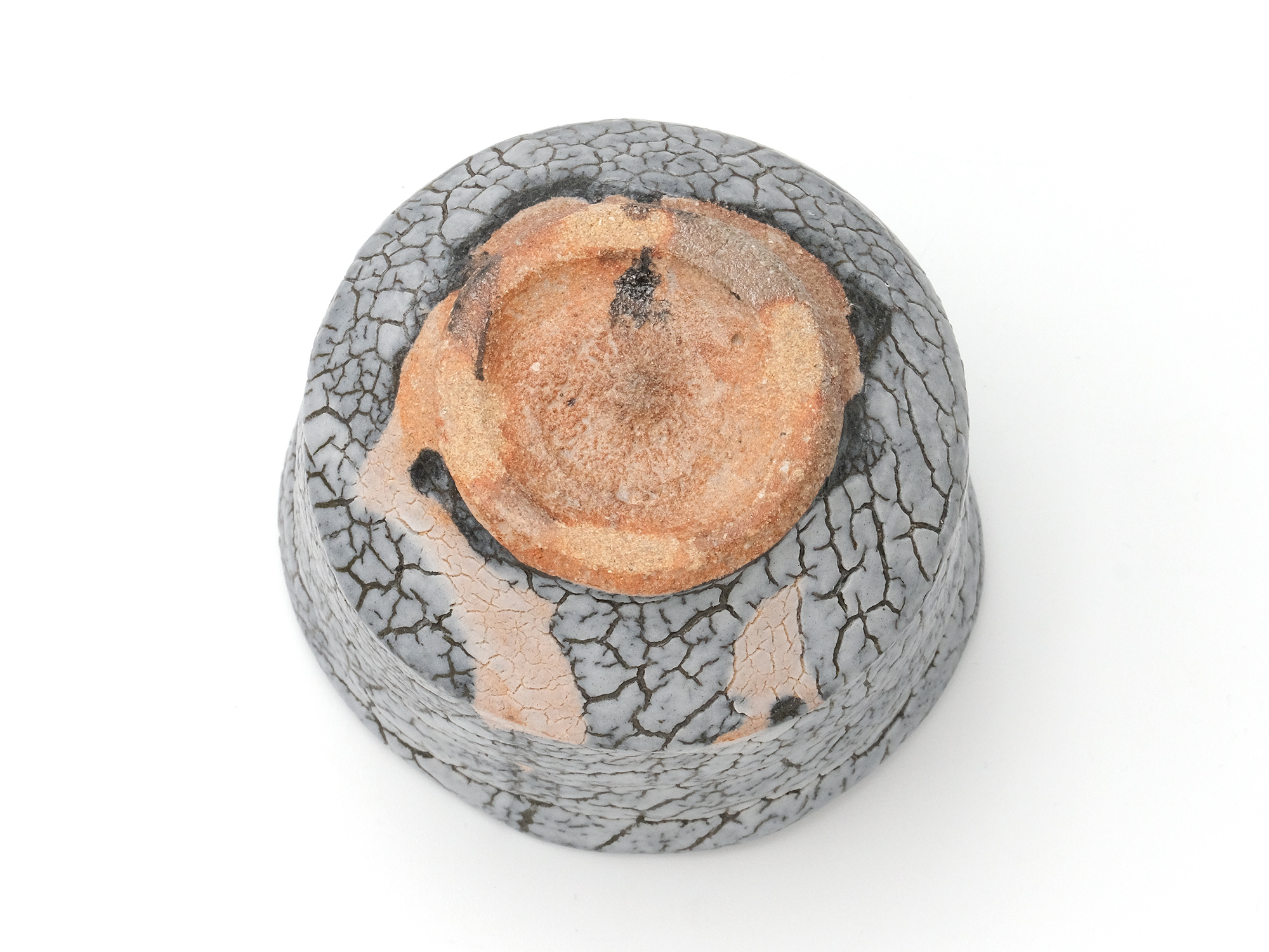 田中佐次郎の《唐津大盃 白鯨》はひび割れた白釉の豪快な酒盃である。 白鯨とは、海の悪魔と呼ばれる白いマッコウクジラのことだが、メルヴィルの小説に登場する主人公のことをふっと思い出した。年輪を重ねても挑戦の止まない、この作家ならではの一作である。